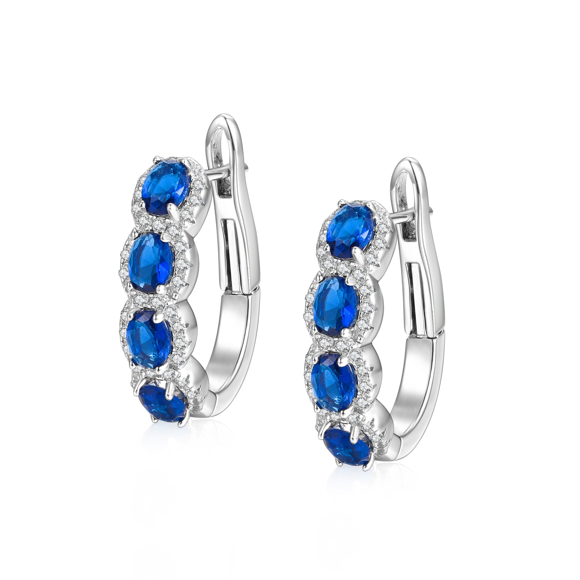Sterling Silver 14K Gold Plated Cubic Zirconia Oblong Hoop Leverback Earrings.