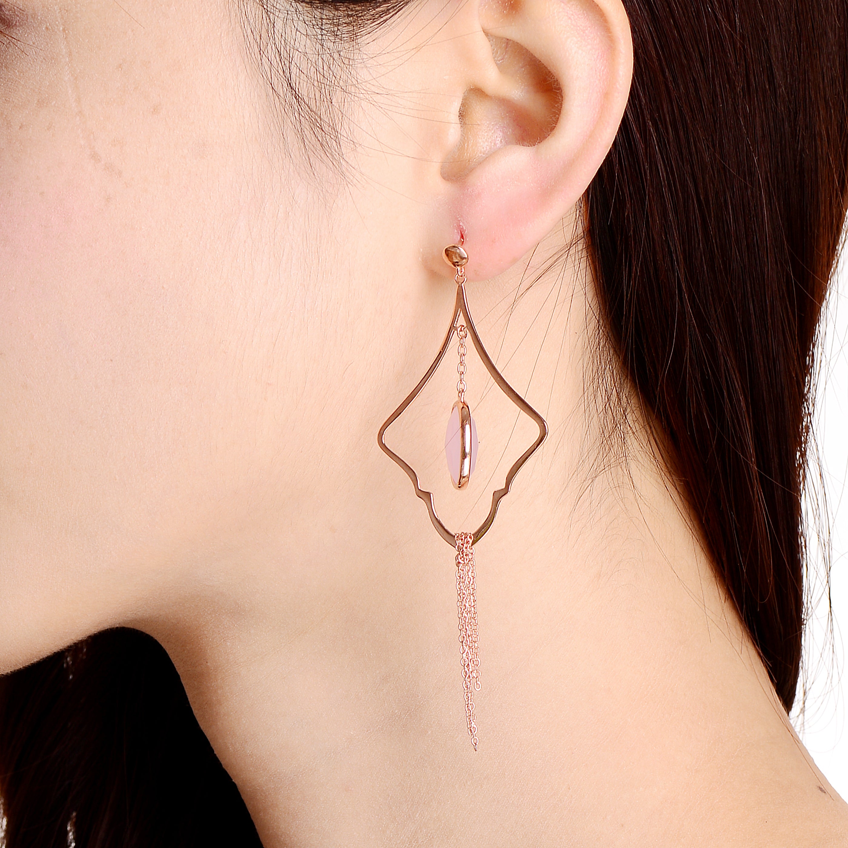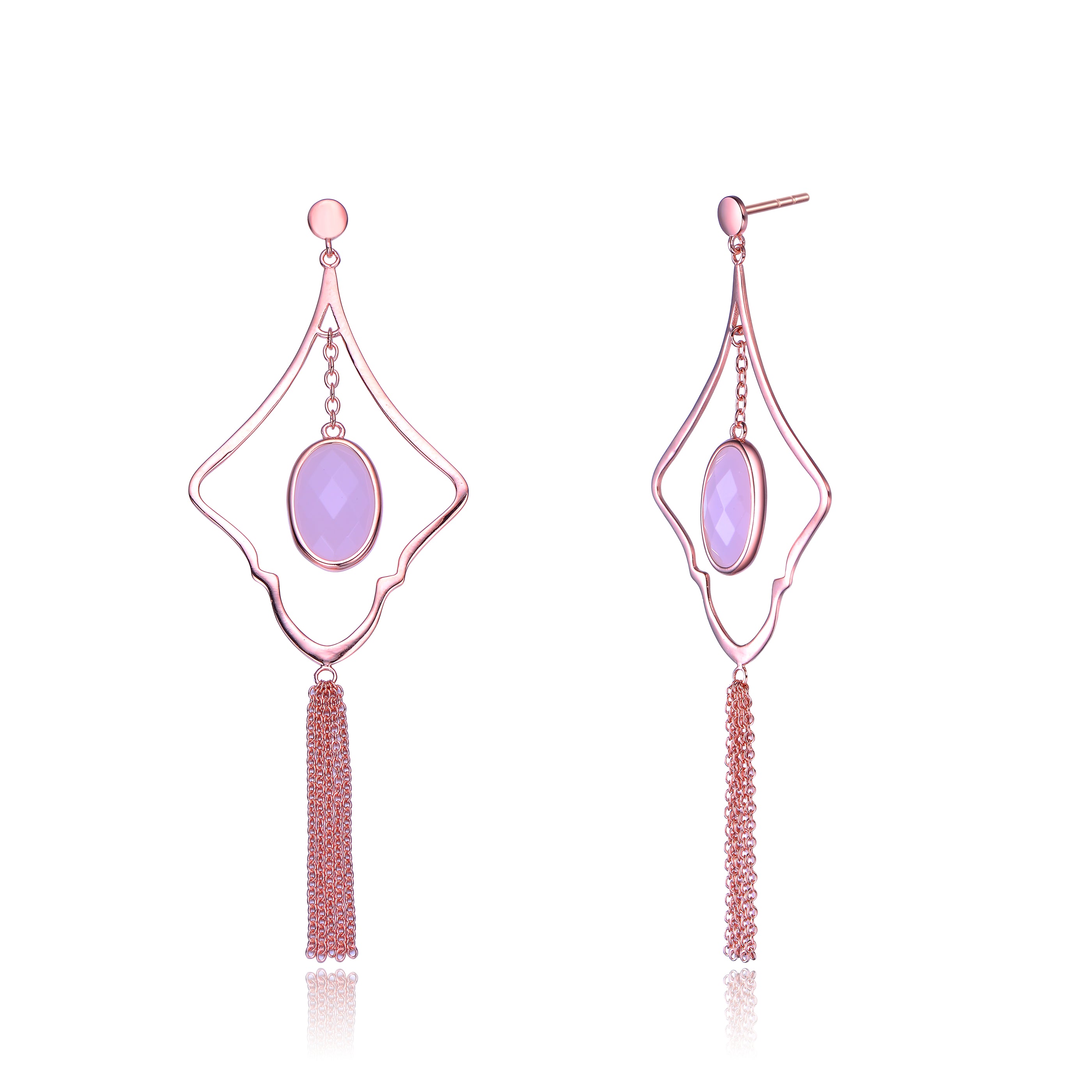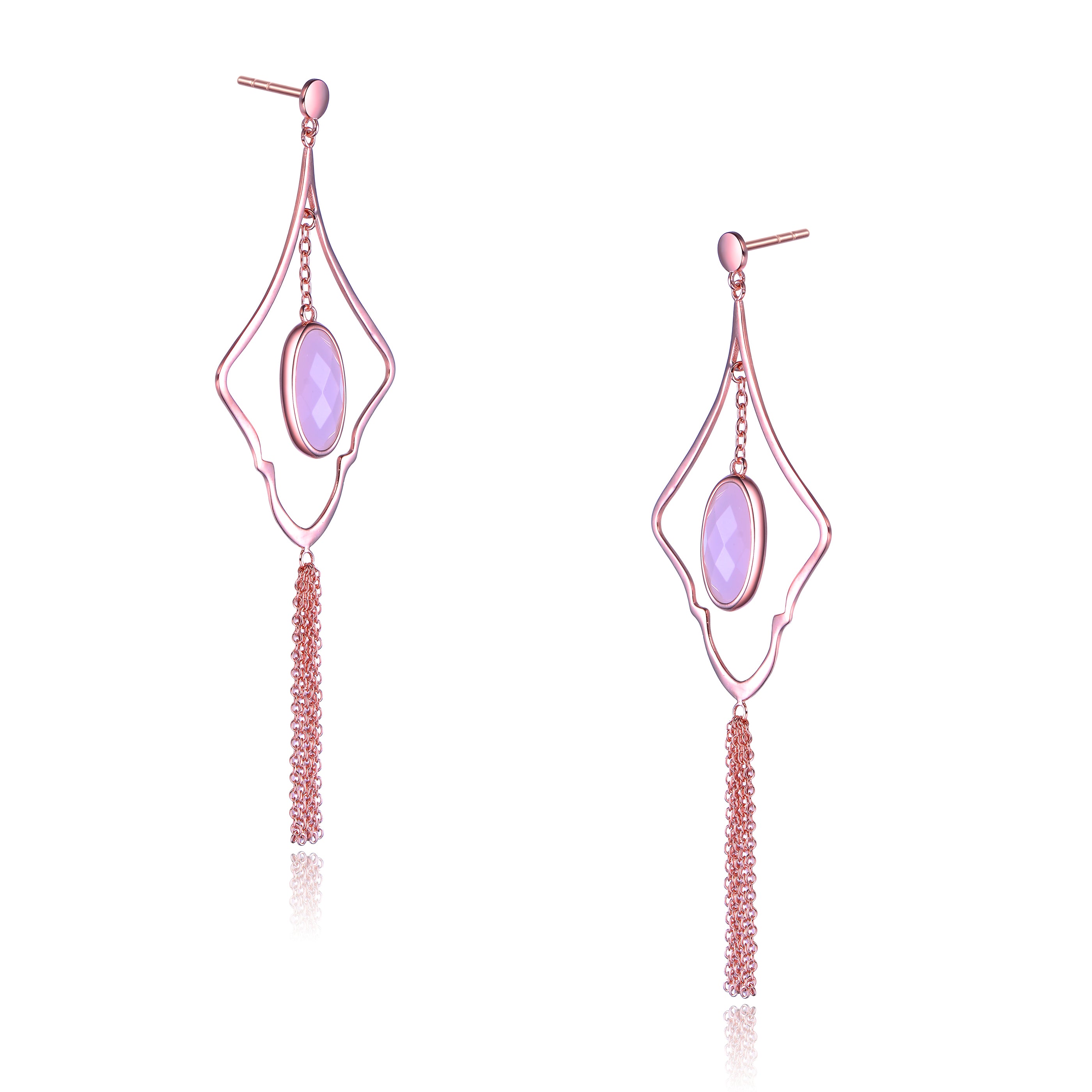 Sterling Silver 18K Rose Gold Plated Multi Colored Cubic Zirconia Accent Dangle Earrings