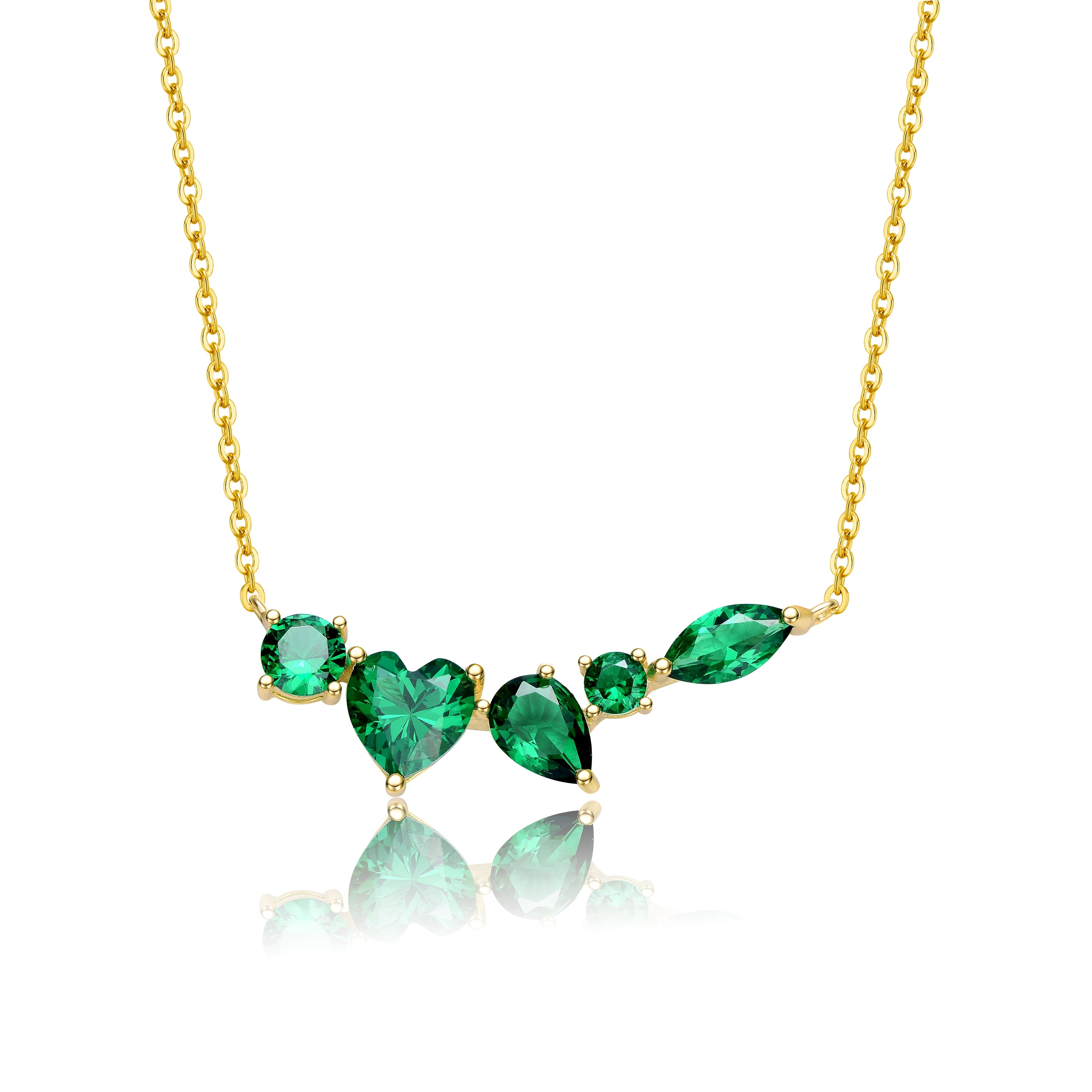 Sterling Silver 14k Yellow Gold Plated Mixed Cut Emerald Cubic Zirconia Cluster Necklace