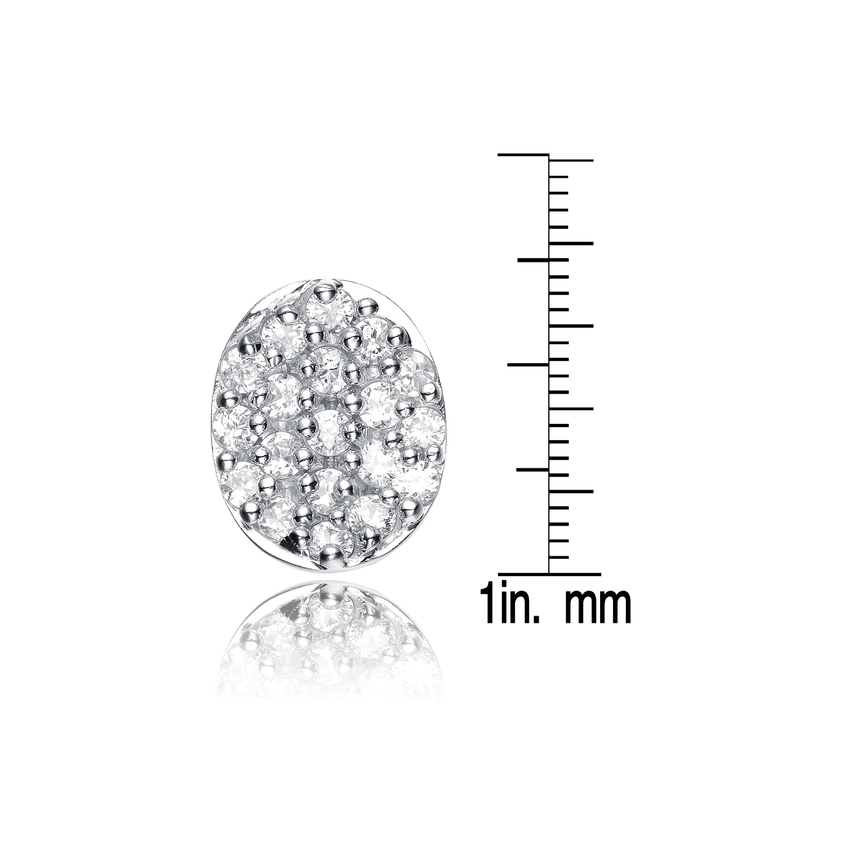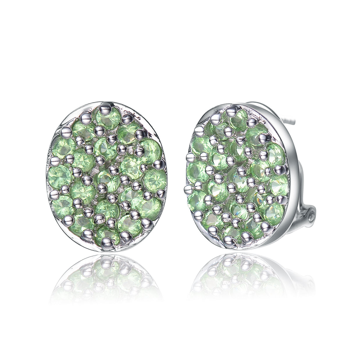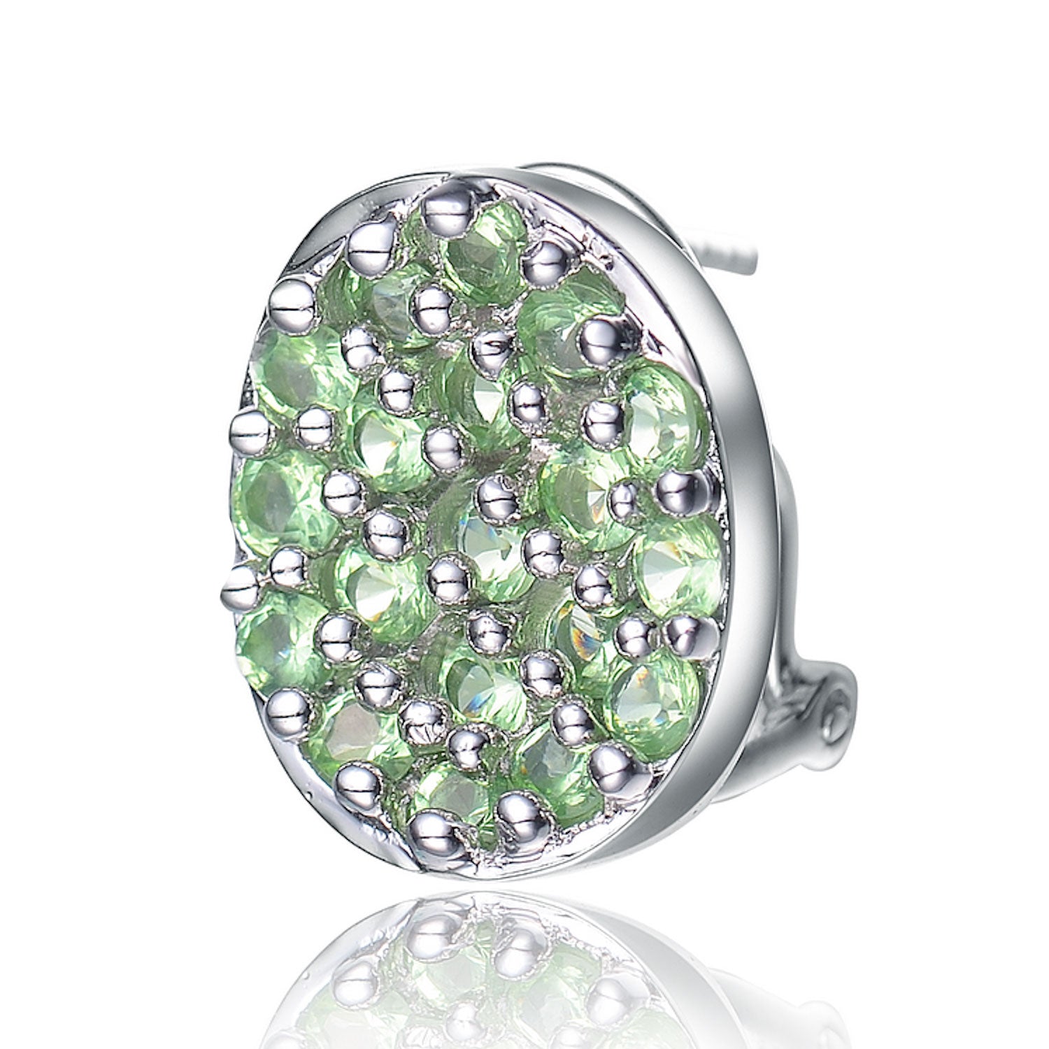 Sterling Silver Green Pave Cubic Zirconia Button Earrings