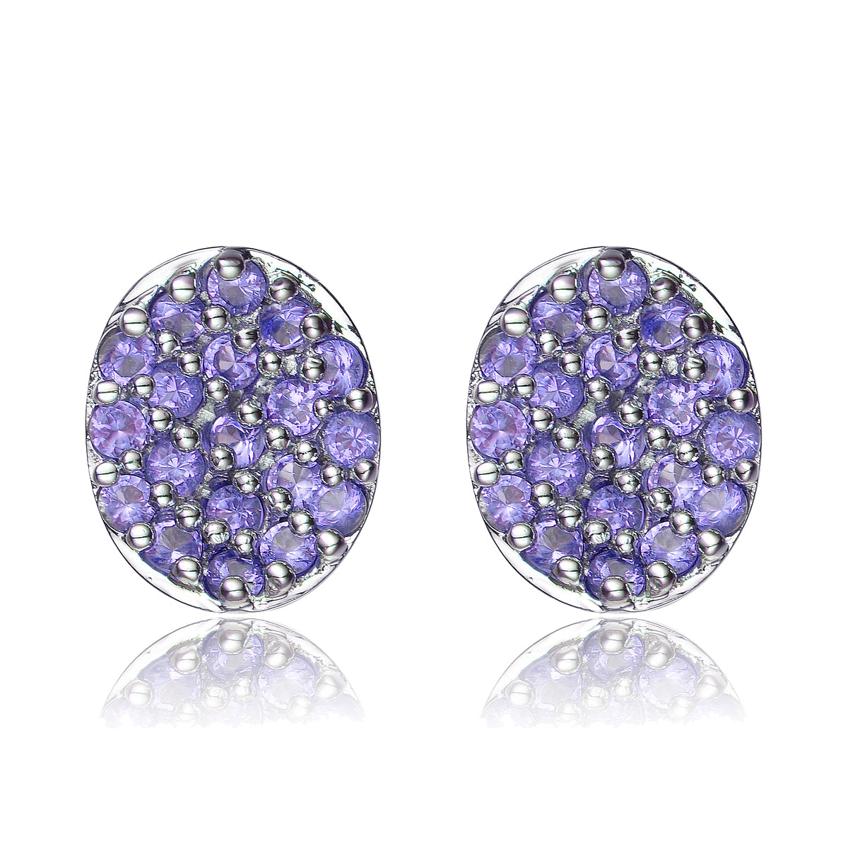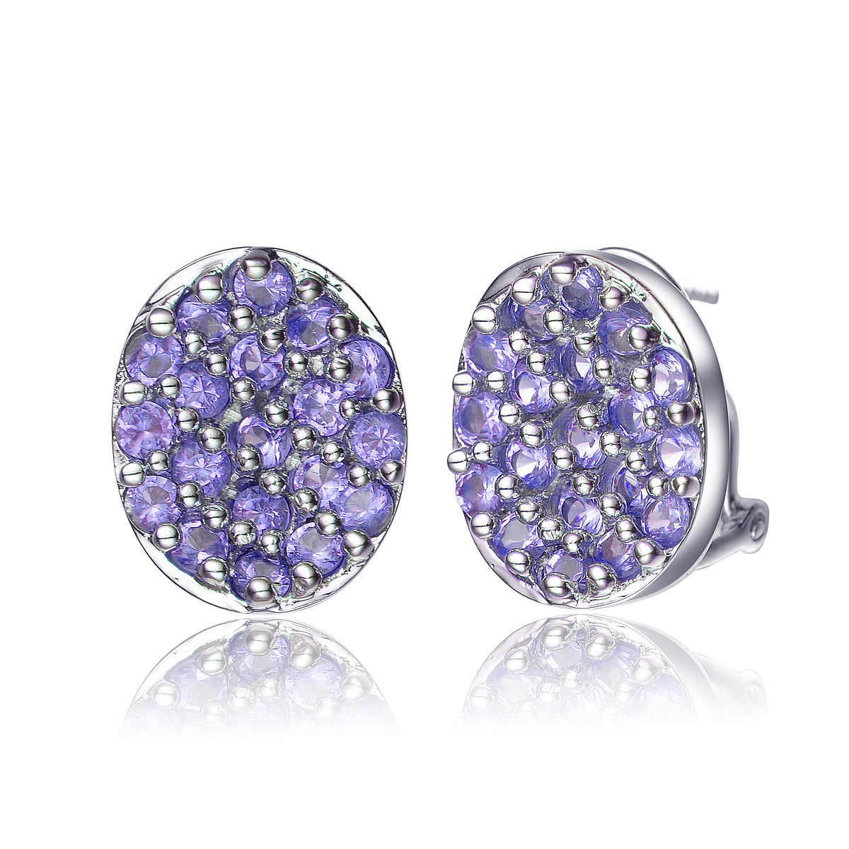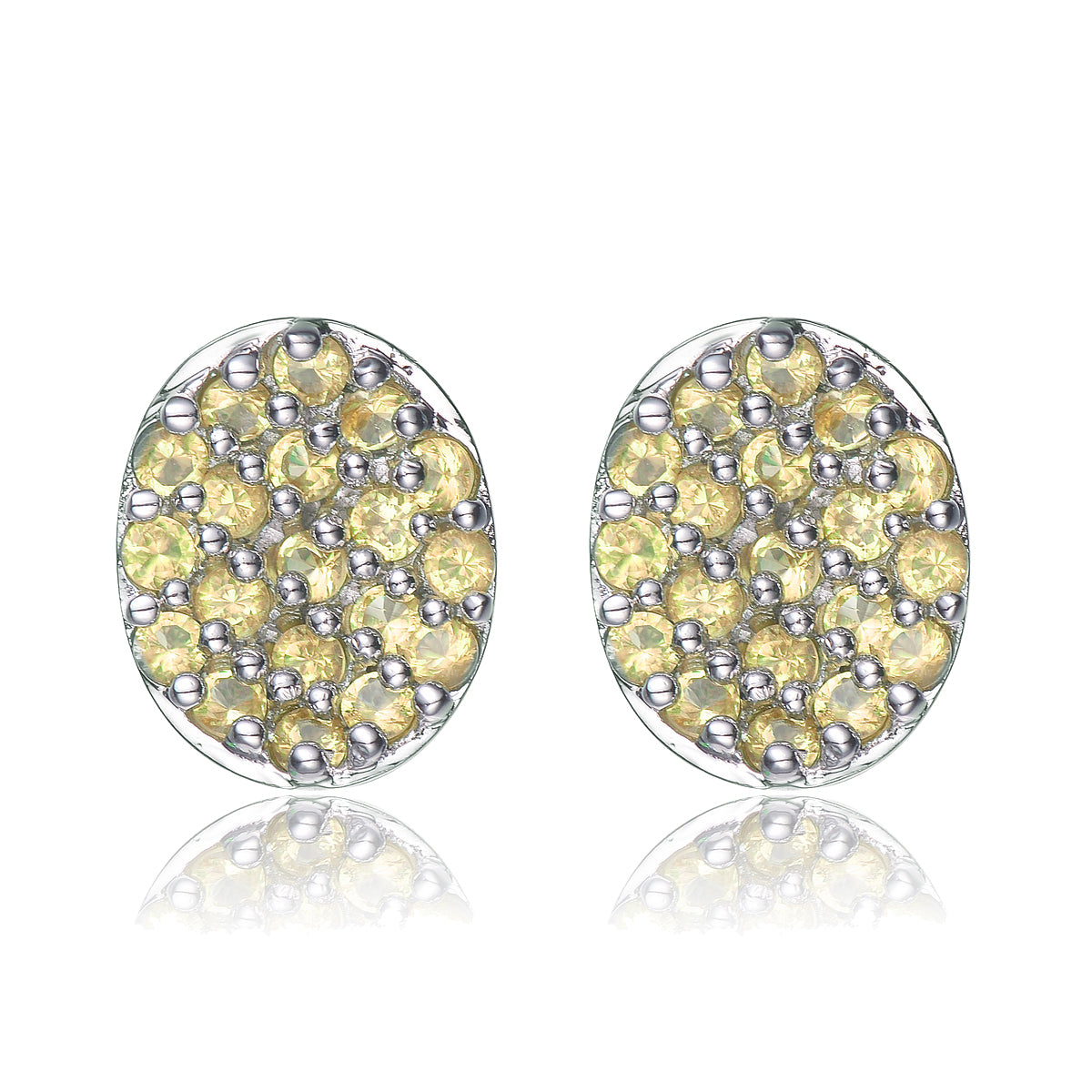 Sterling Silver Green Pave Cubic Zirconia Button Earrings