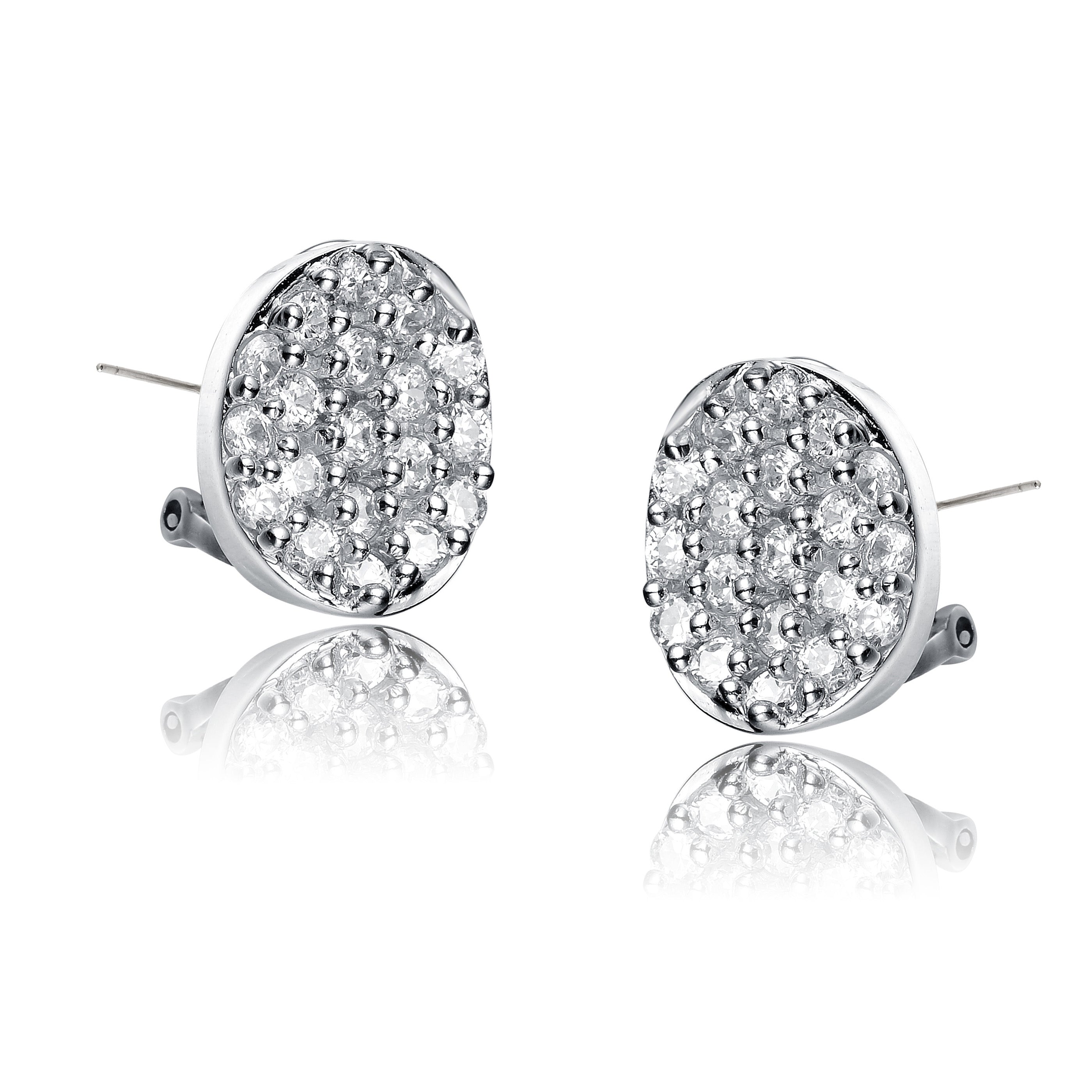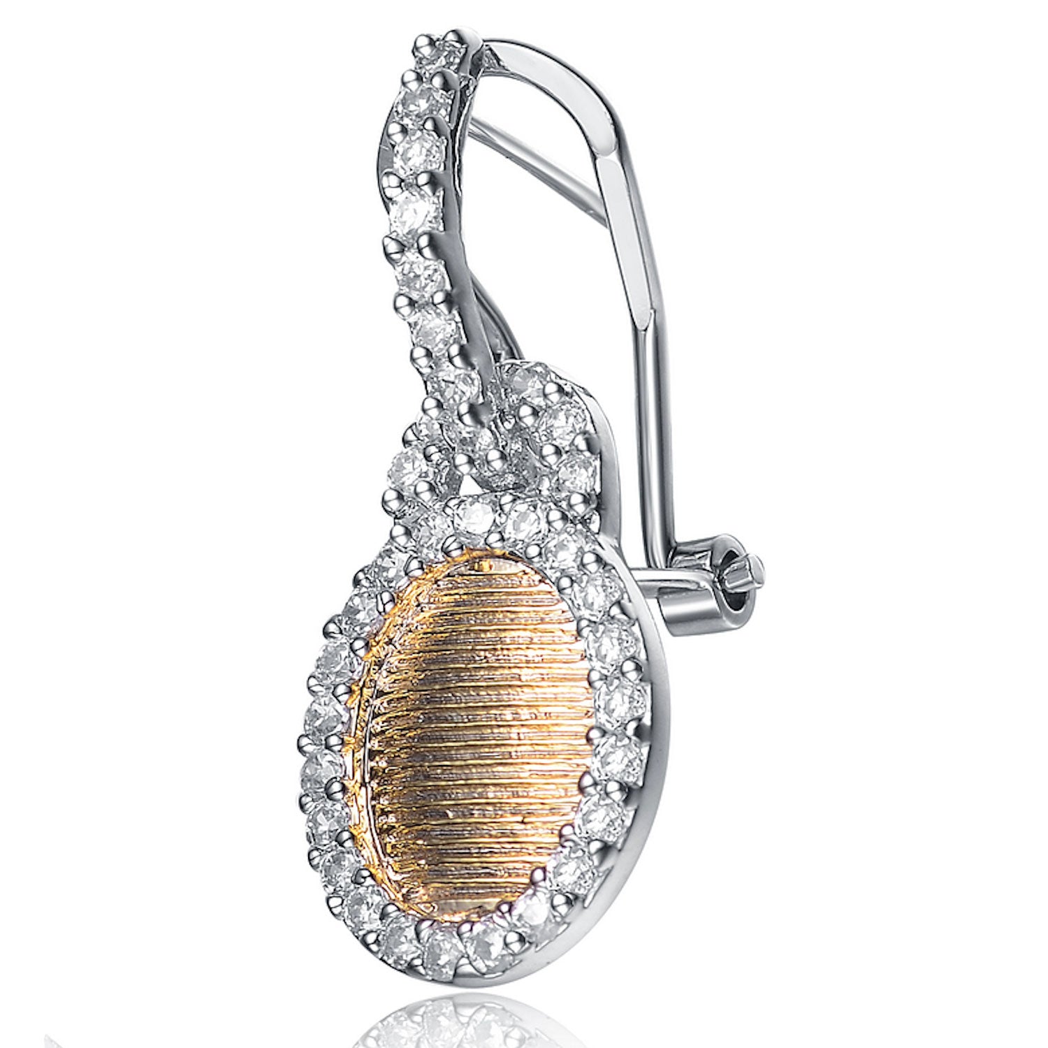 Sterling Silver Oval Gold Color Plating White Cubic Zirconia Earrings
