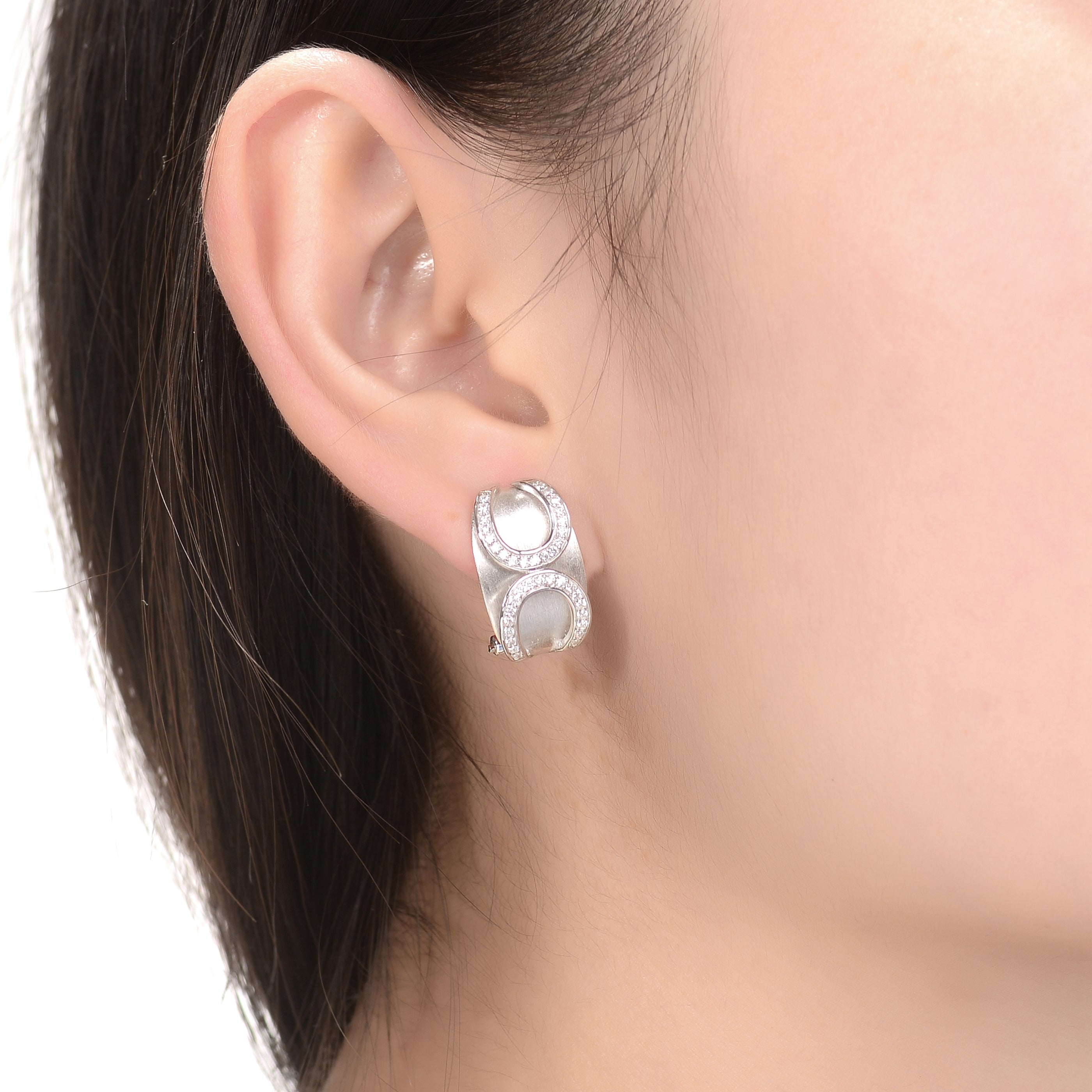 Sterling Silver Infinity-Inspired White Cubic Zirconia Accent Huggies Earrings