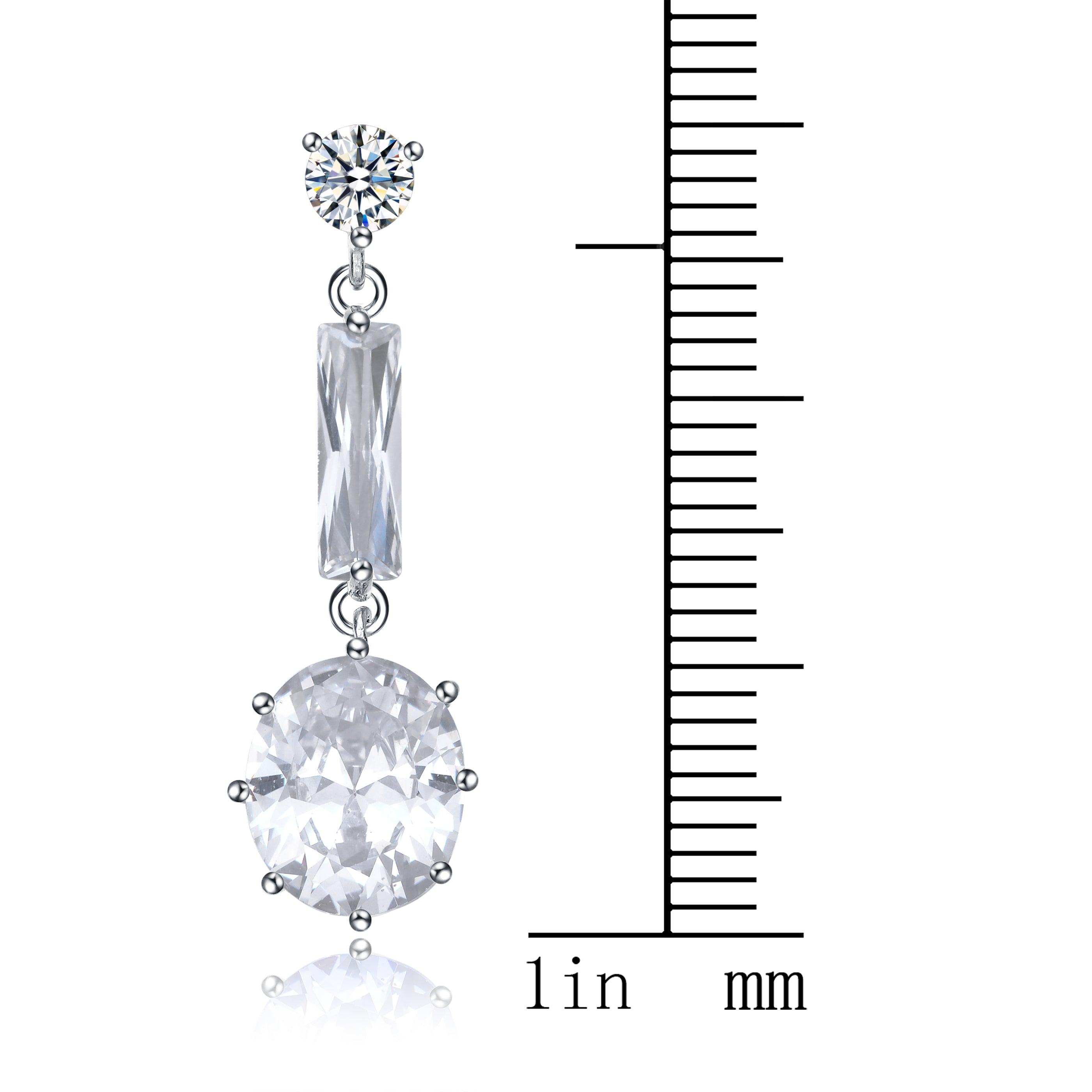 Sterling Silver Elongated Cubic Zirconia Oval Cut Dangle Earrings