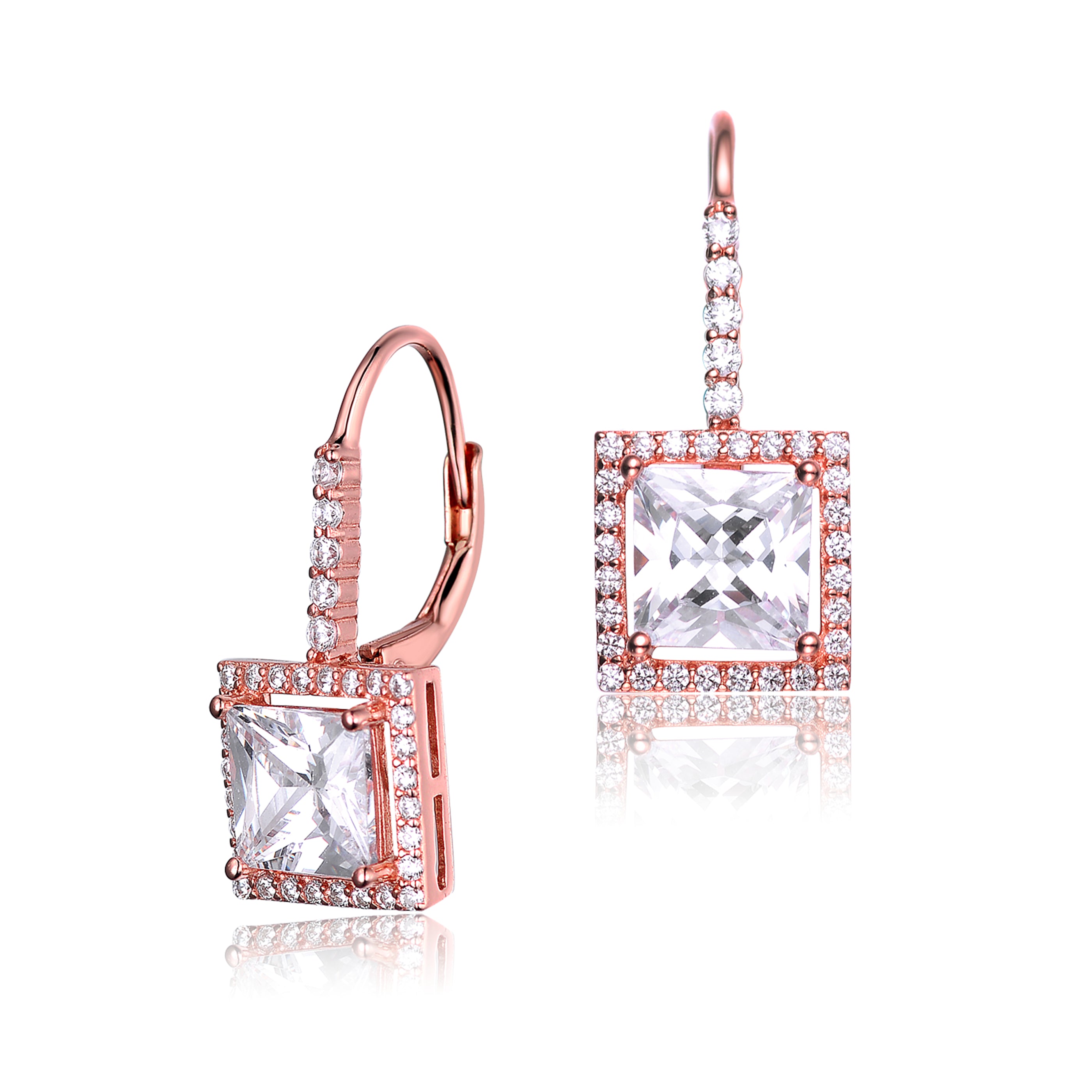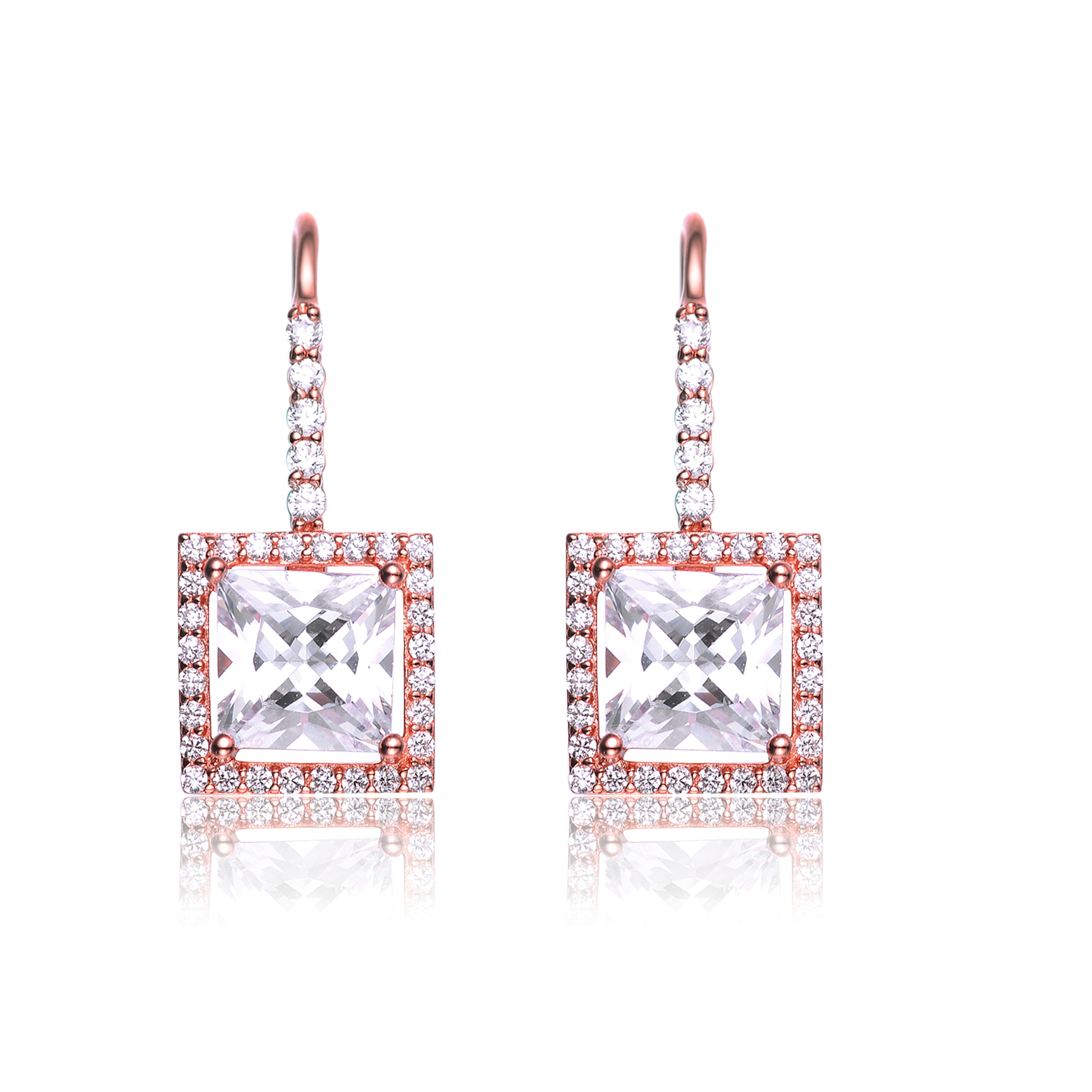 Sterling Silver Cubic Zirconia Princess Cut Dangle Earrings