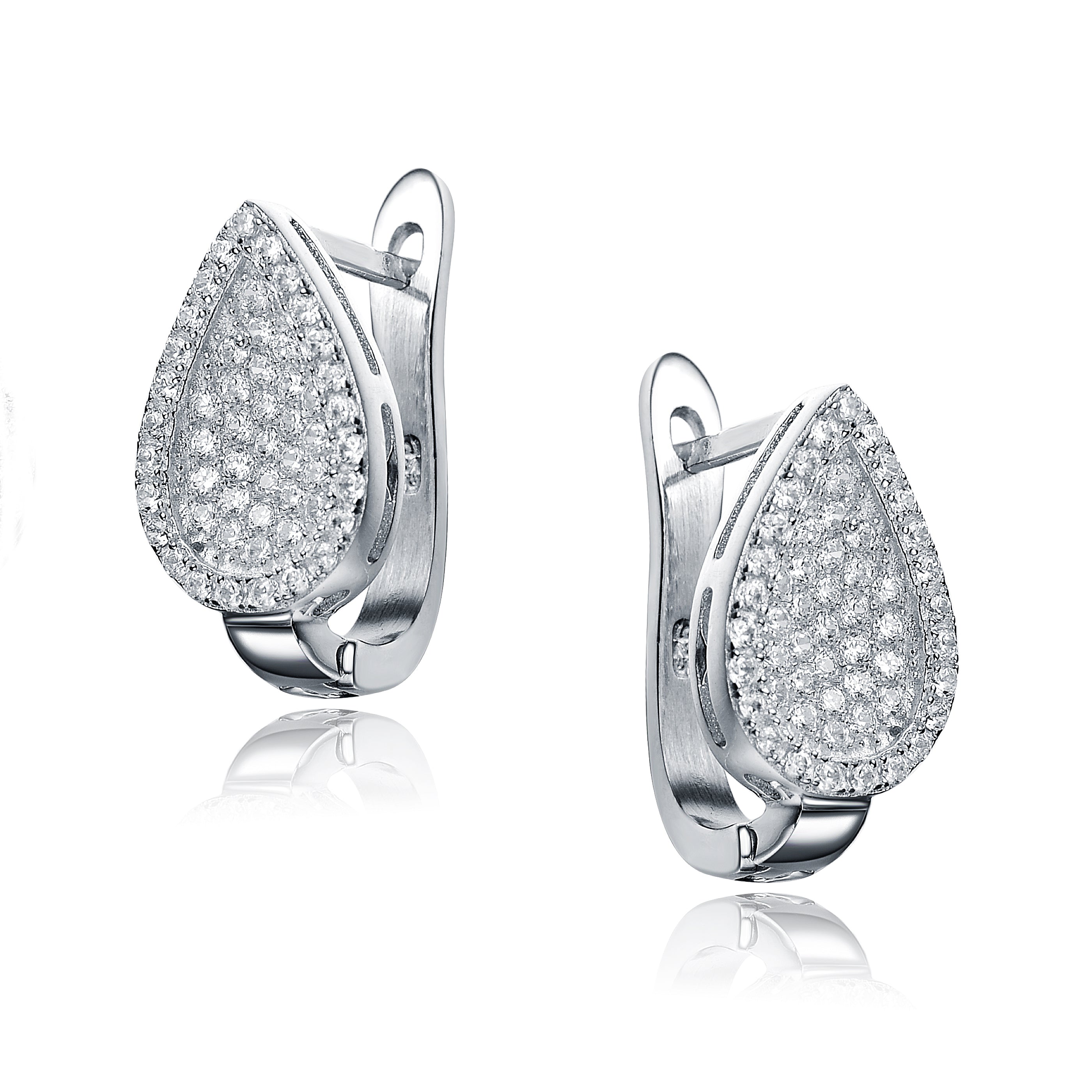 Sterling Silver Pave Cubic Zirconia Leaf Earrings