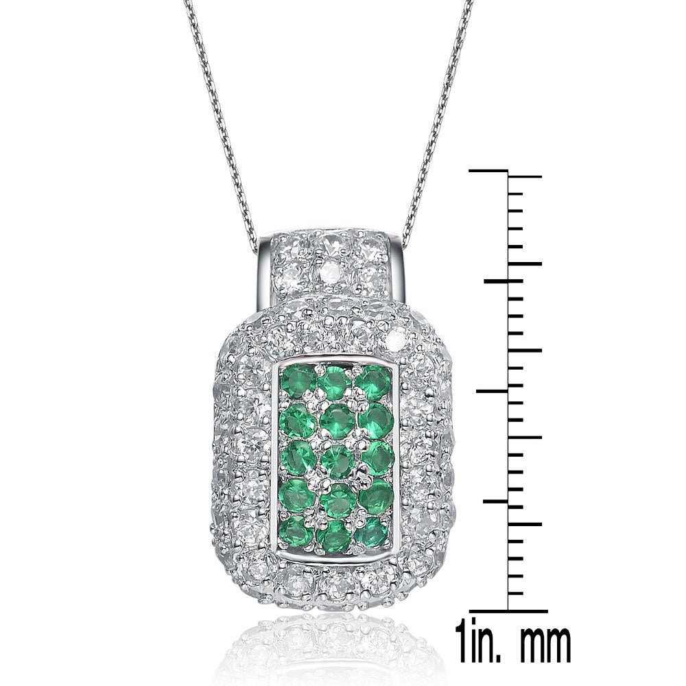 Sterling Silver Green Cubic Zirconia Square Pendant