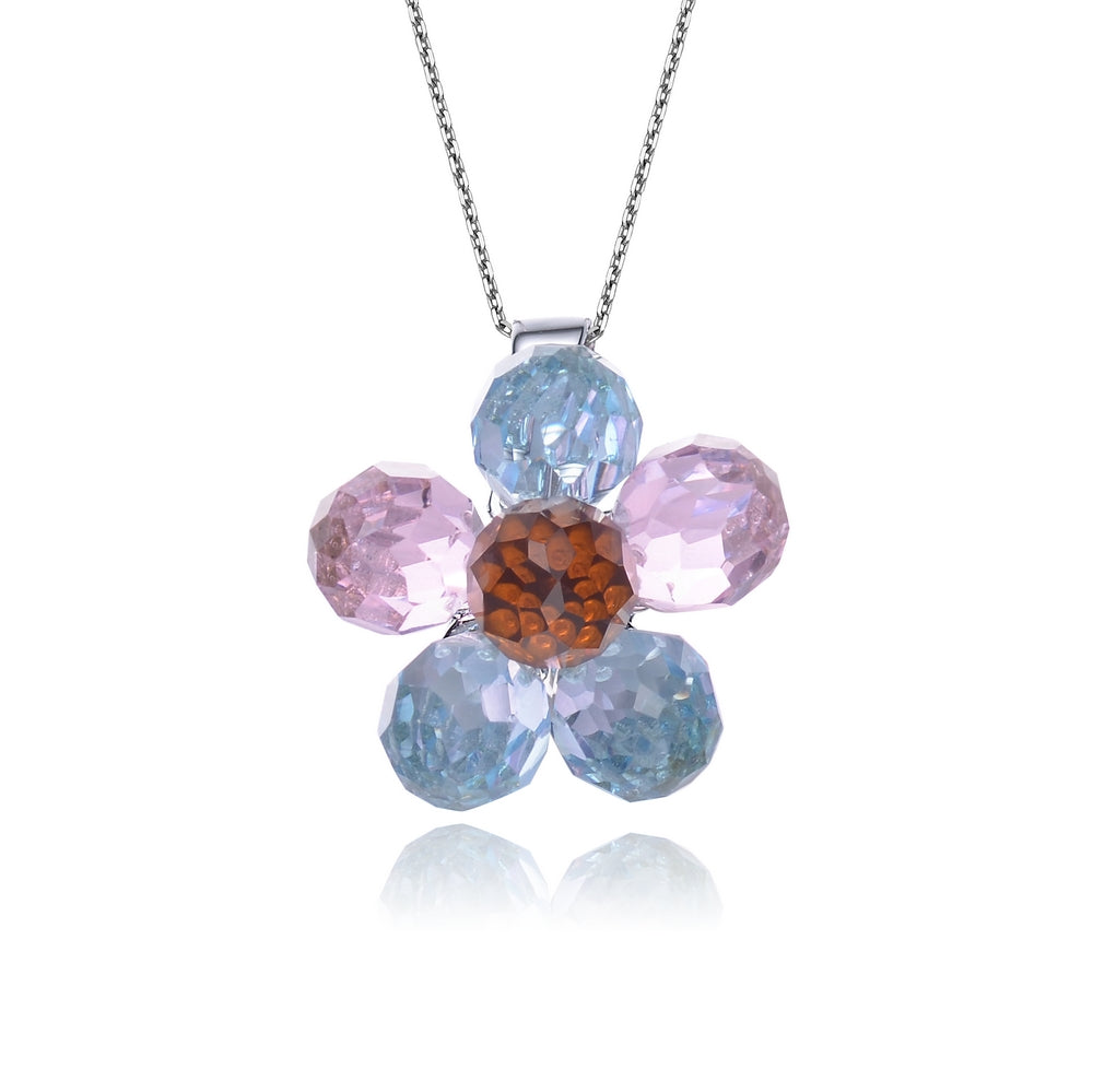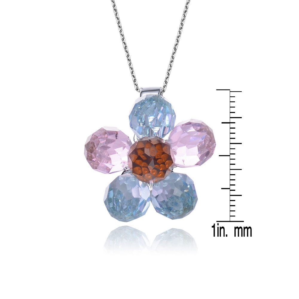 Sterling Silver Multicolor Cubic Zirconia Flower Necklace
