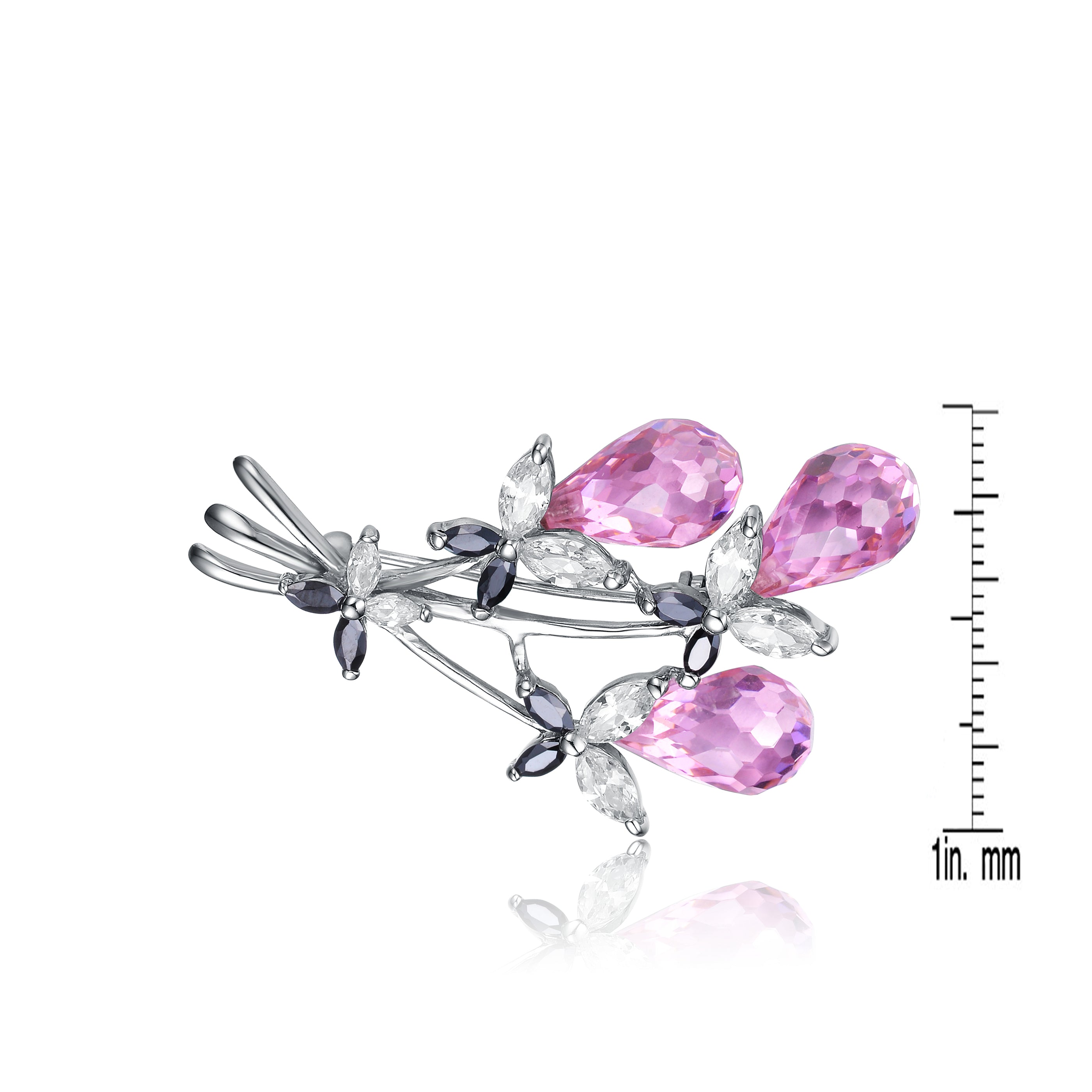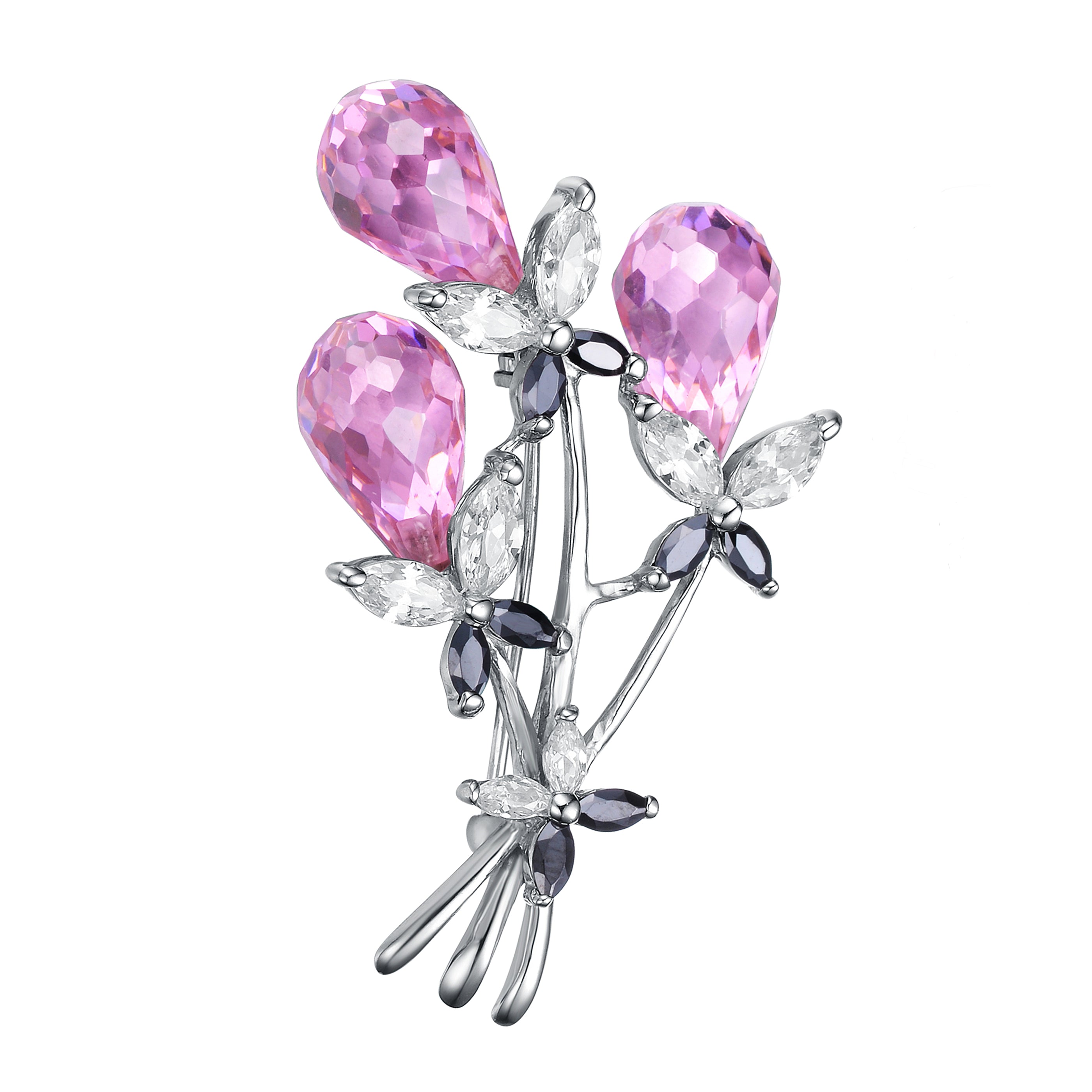Sterling Silver Purple and Clear Cubic Zirconia Bouquet Pin