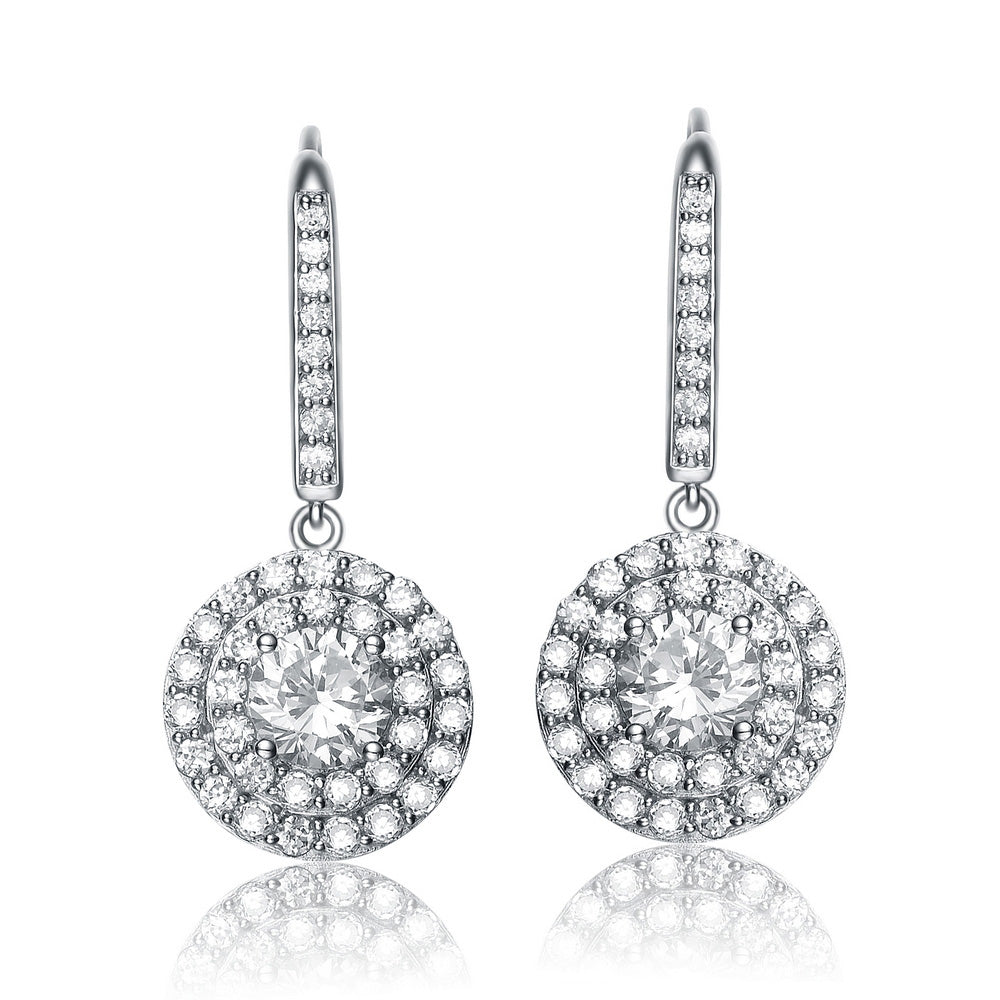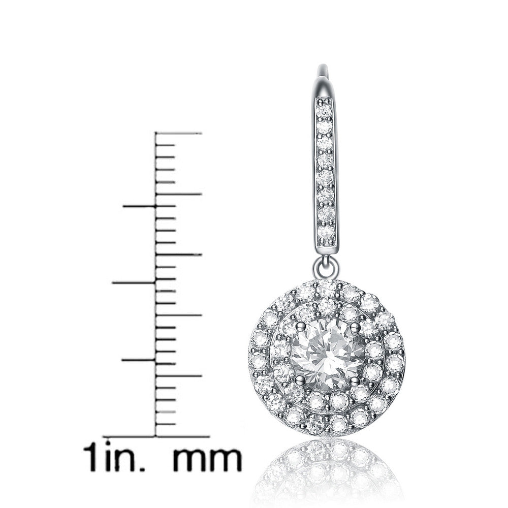 Sterling Silver Rhodium-Plated Double Halo Cubic Zirconia Drop Earrings