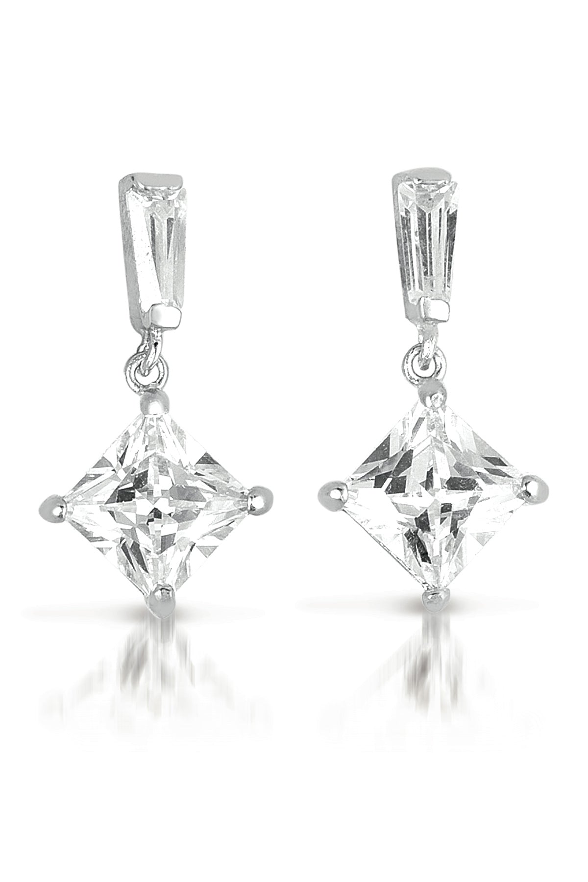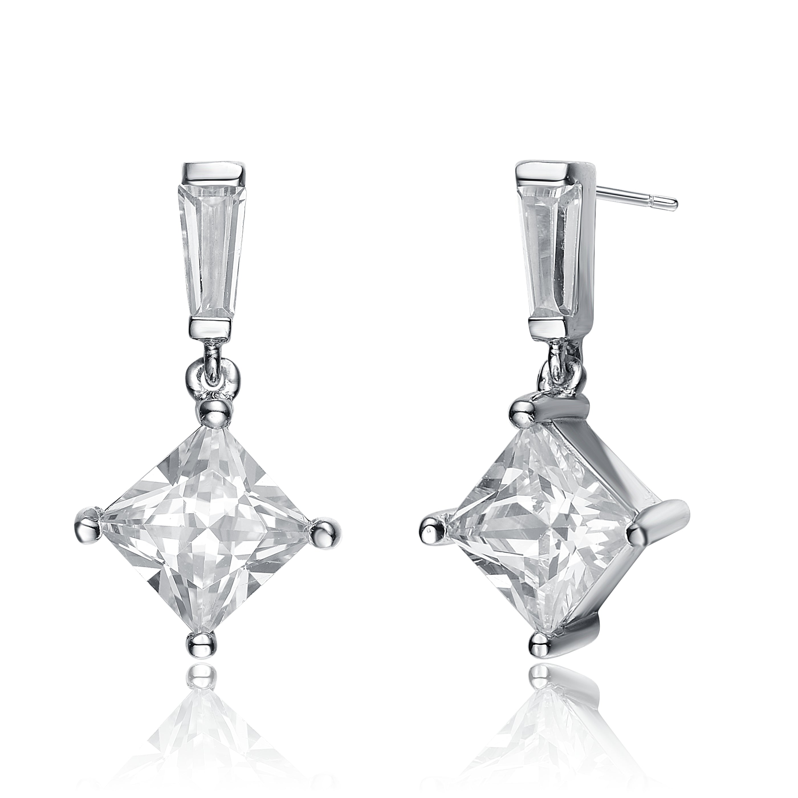 Sterling Silver Rhodium Plated Clear Princess Cubic Zirconia Drop Earrings