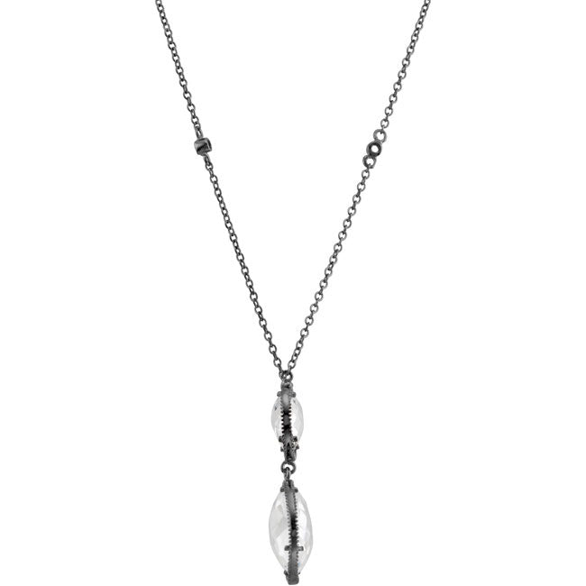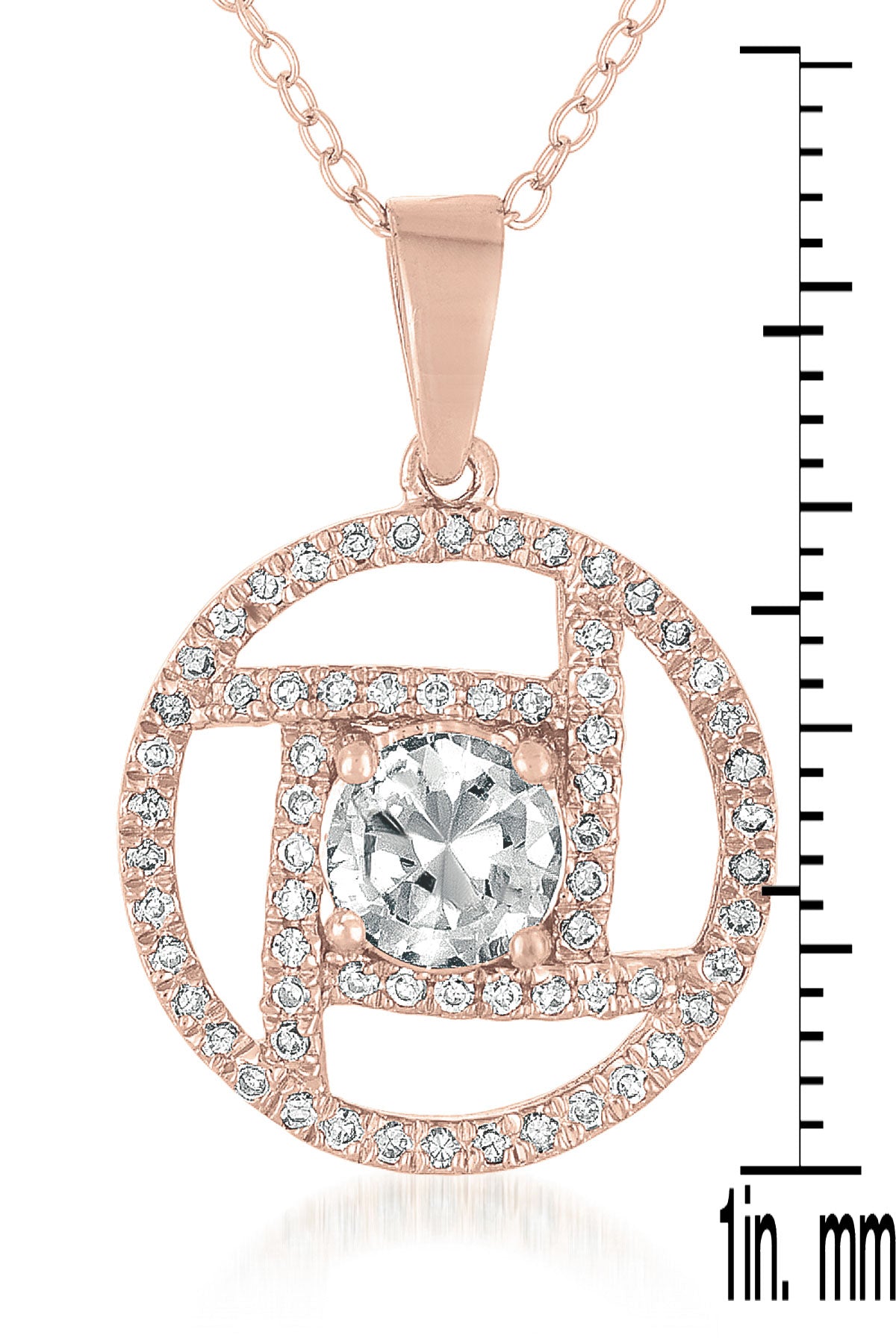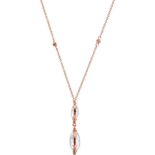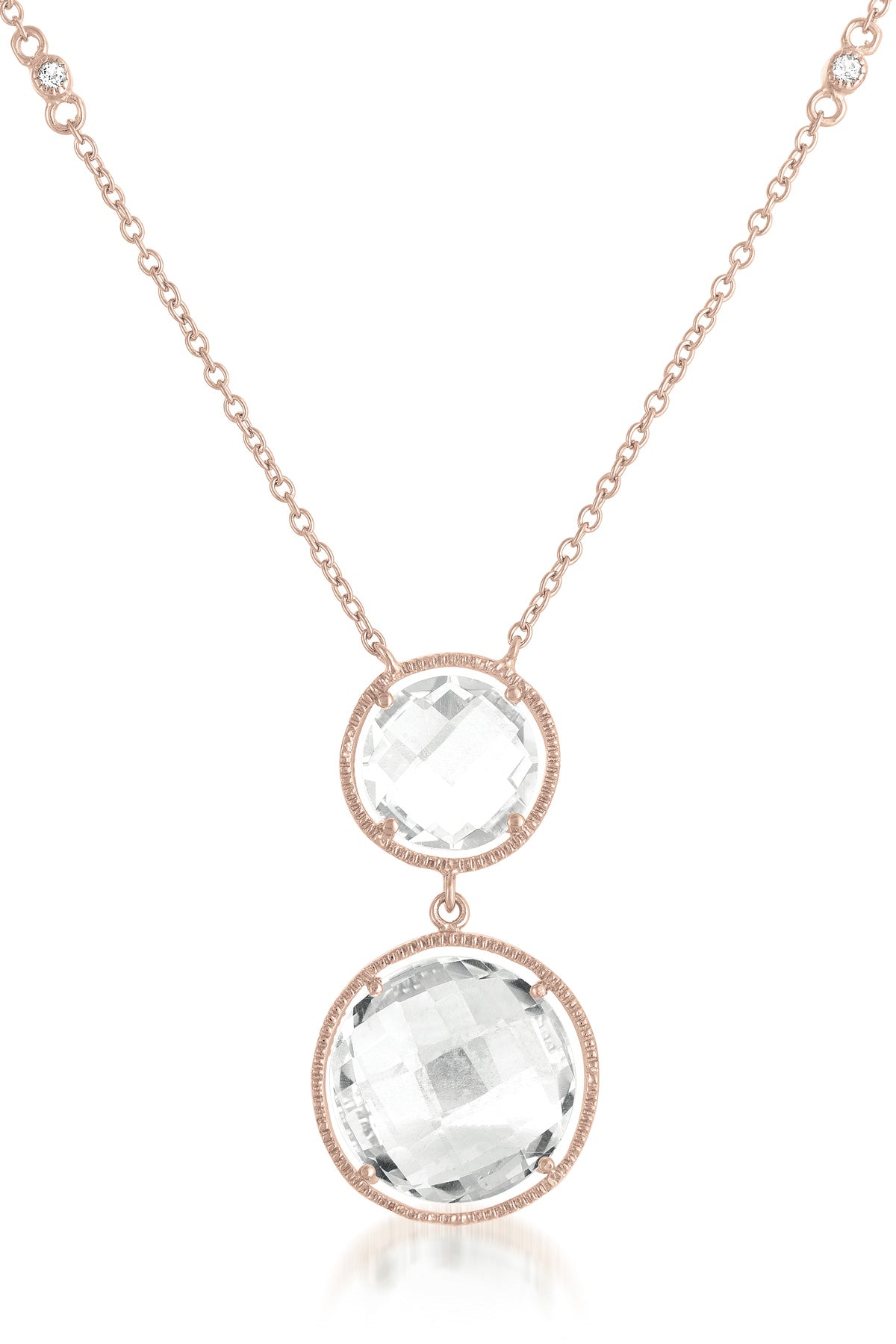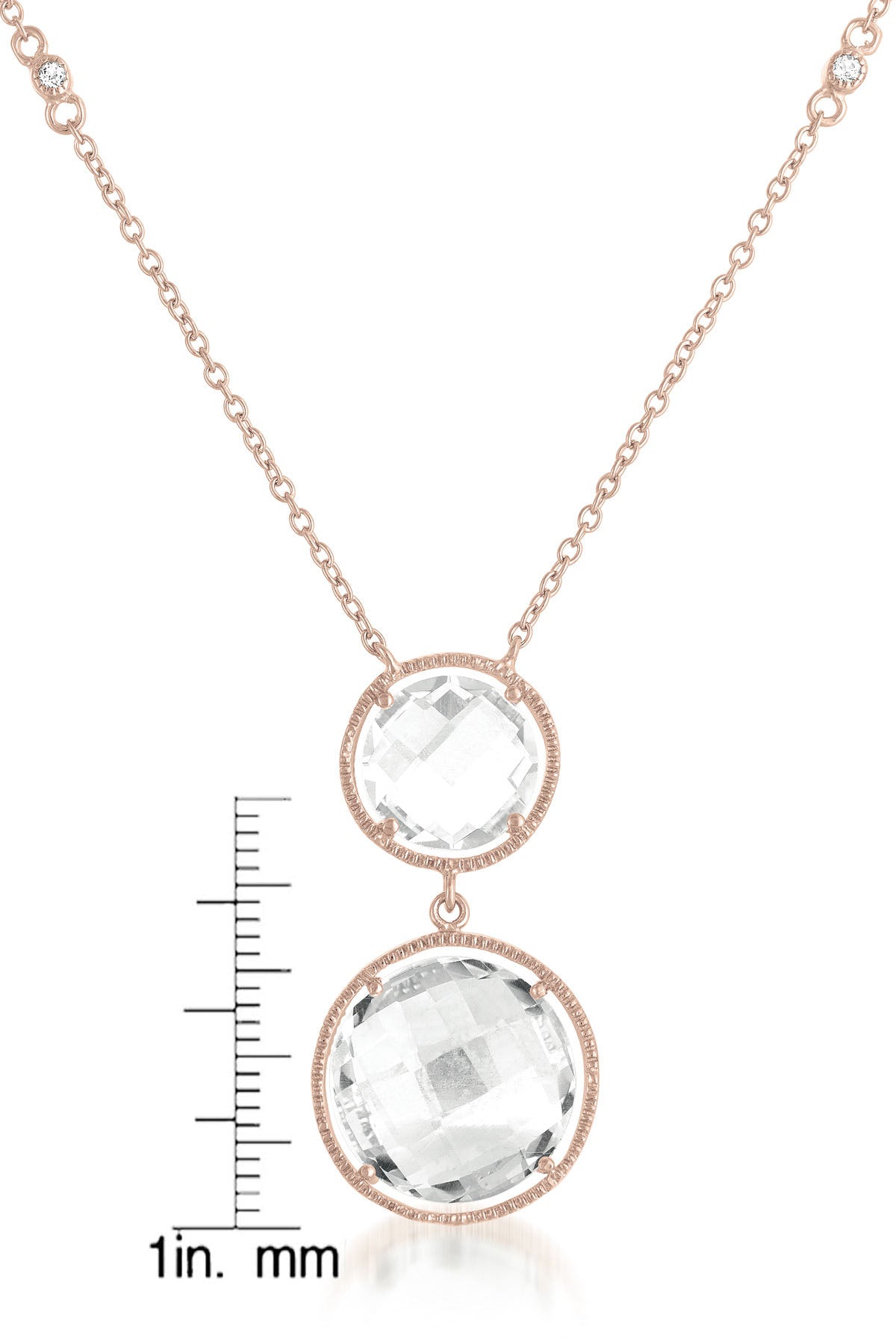 Sterling Silver Rose Plated Double Round Drop Clear Quartz Necklace