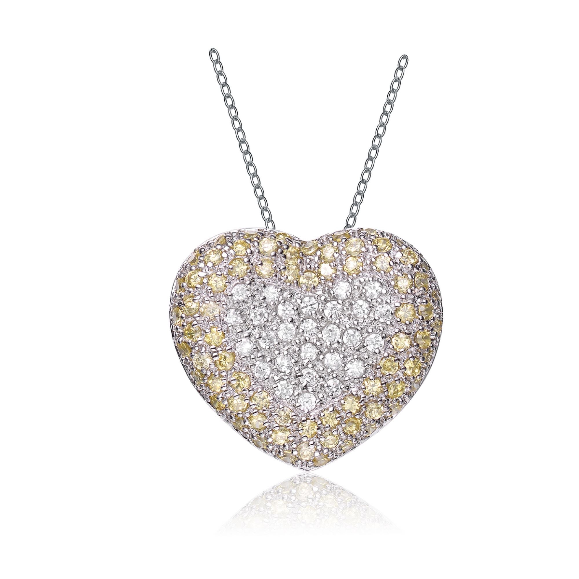 Sterling Silver White and Yellow Cubic Zirconia Gold Plating Clear Pendant