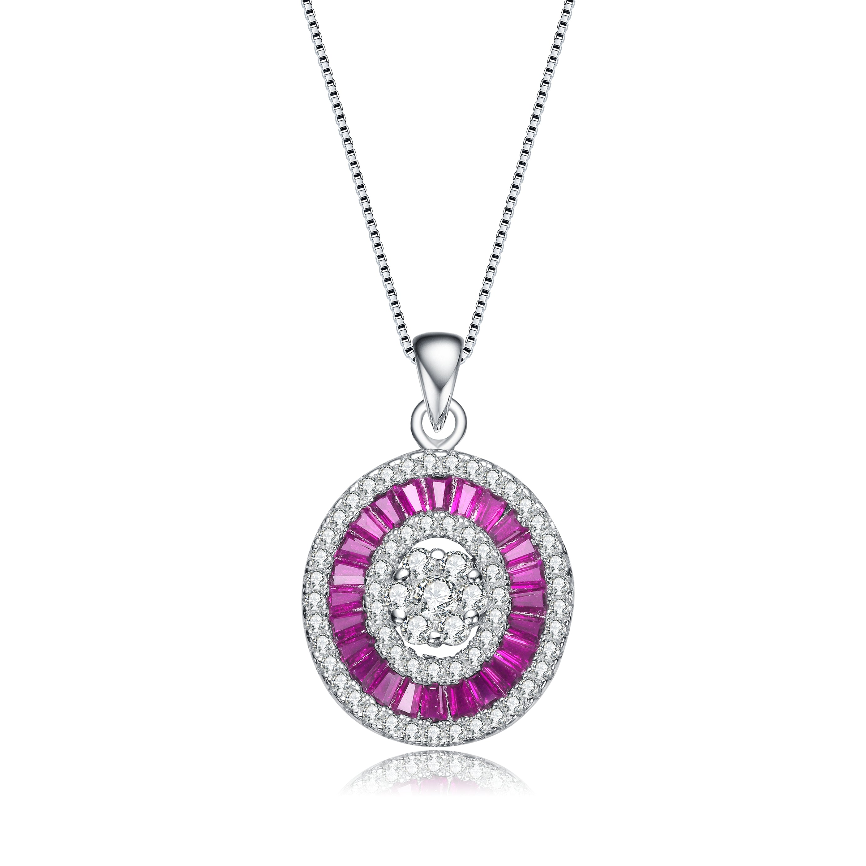 Sterling Silver Ruby Cubic Zirconia Rhodium Plated Pendant