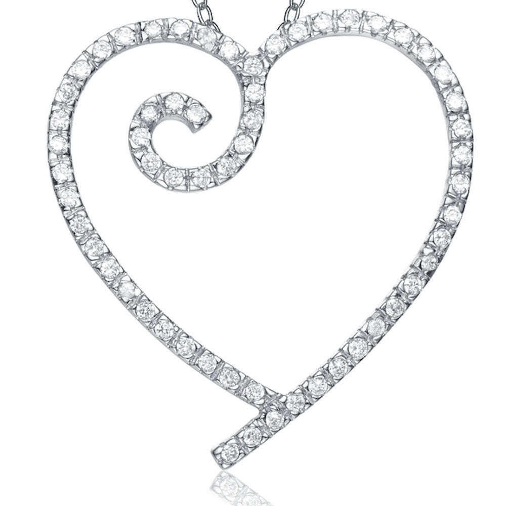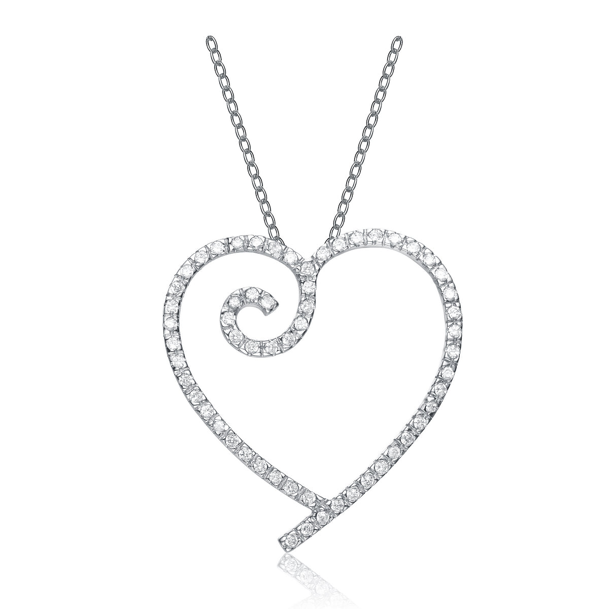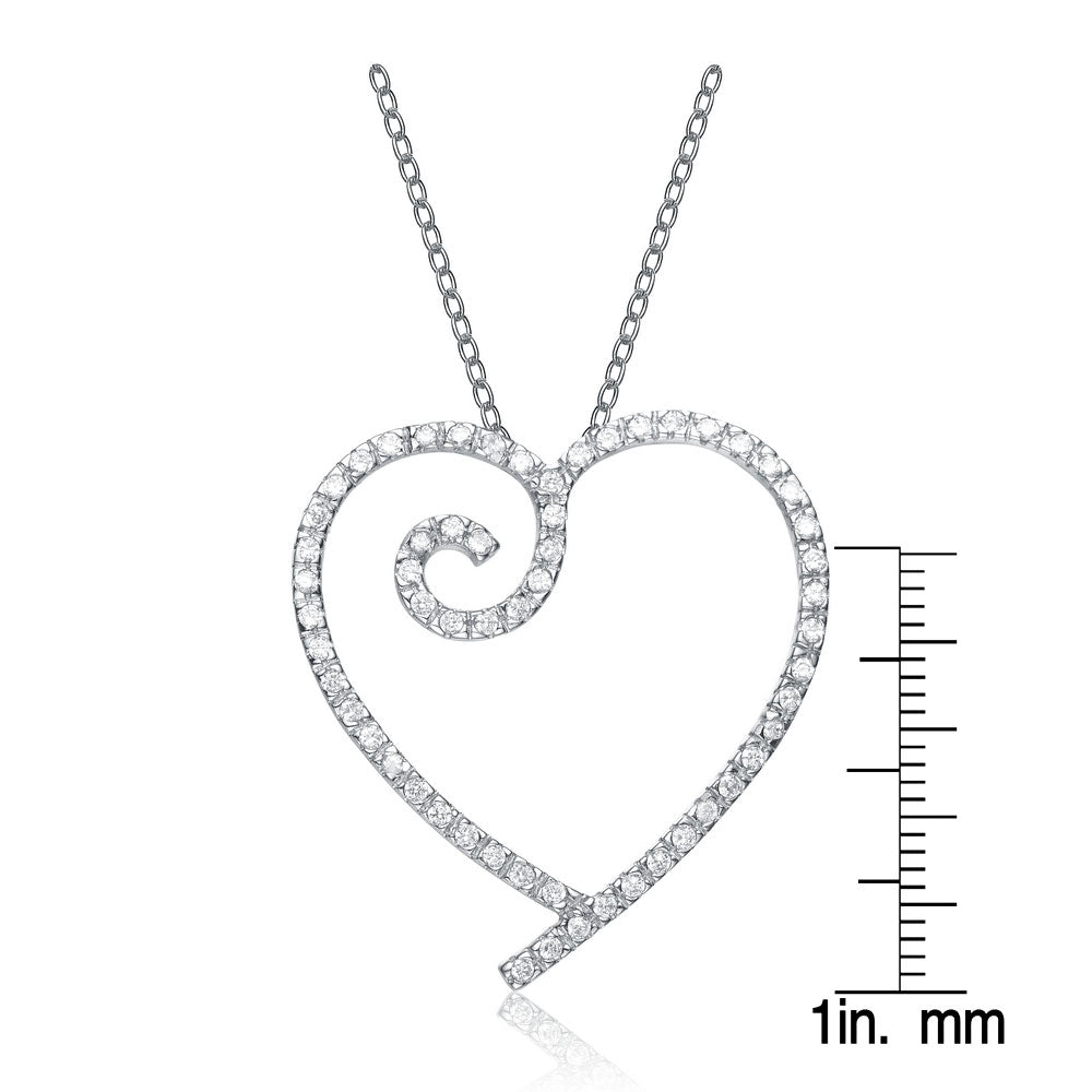 Sterling Silver White Cubic Zirconia Heart With Swirl Pendant