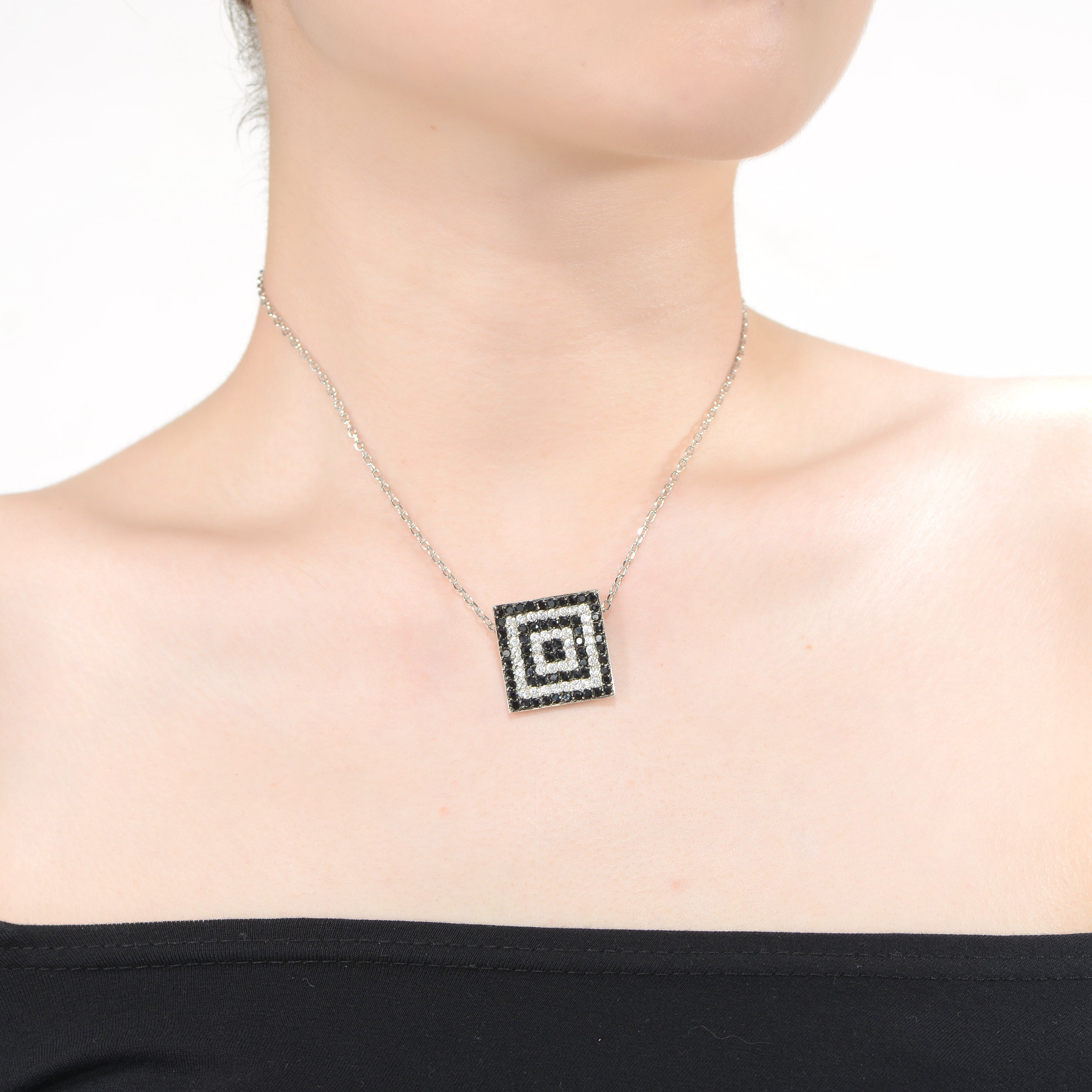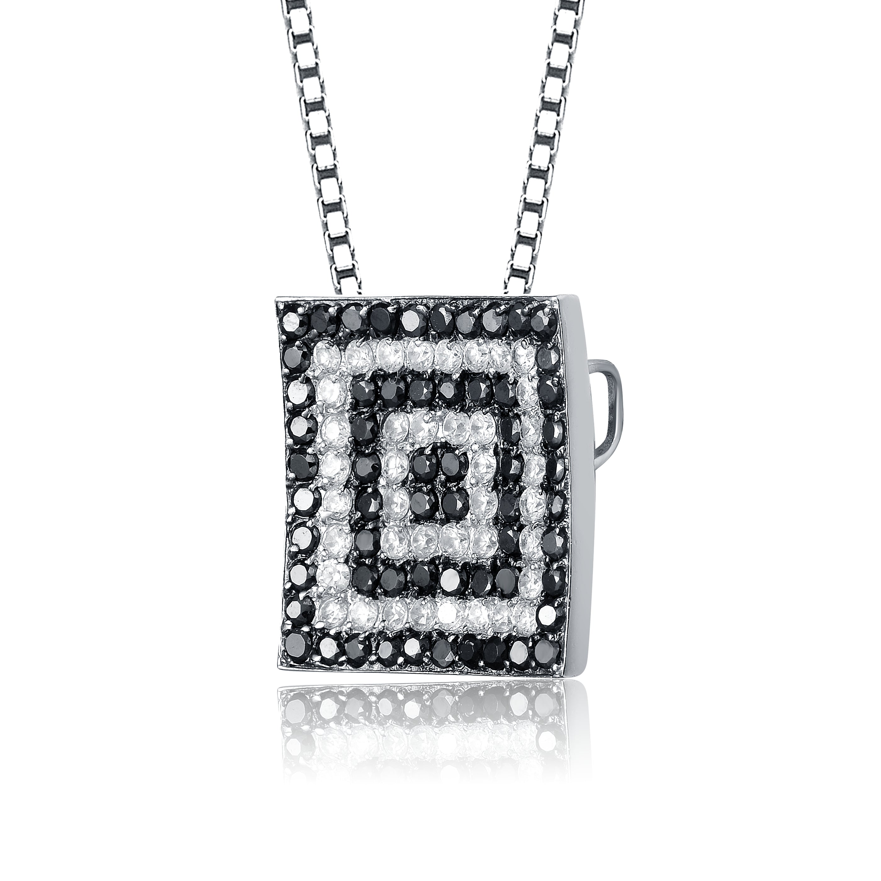 Sterling Silver Rhodium Cubic Zirconia Sqaure Shaped Pendant