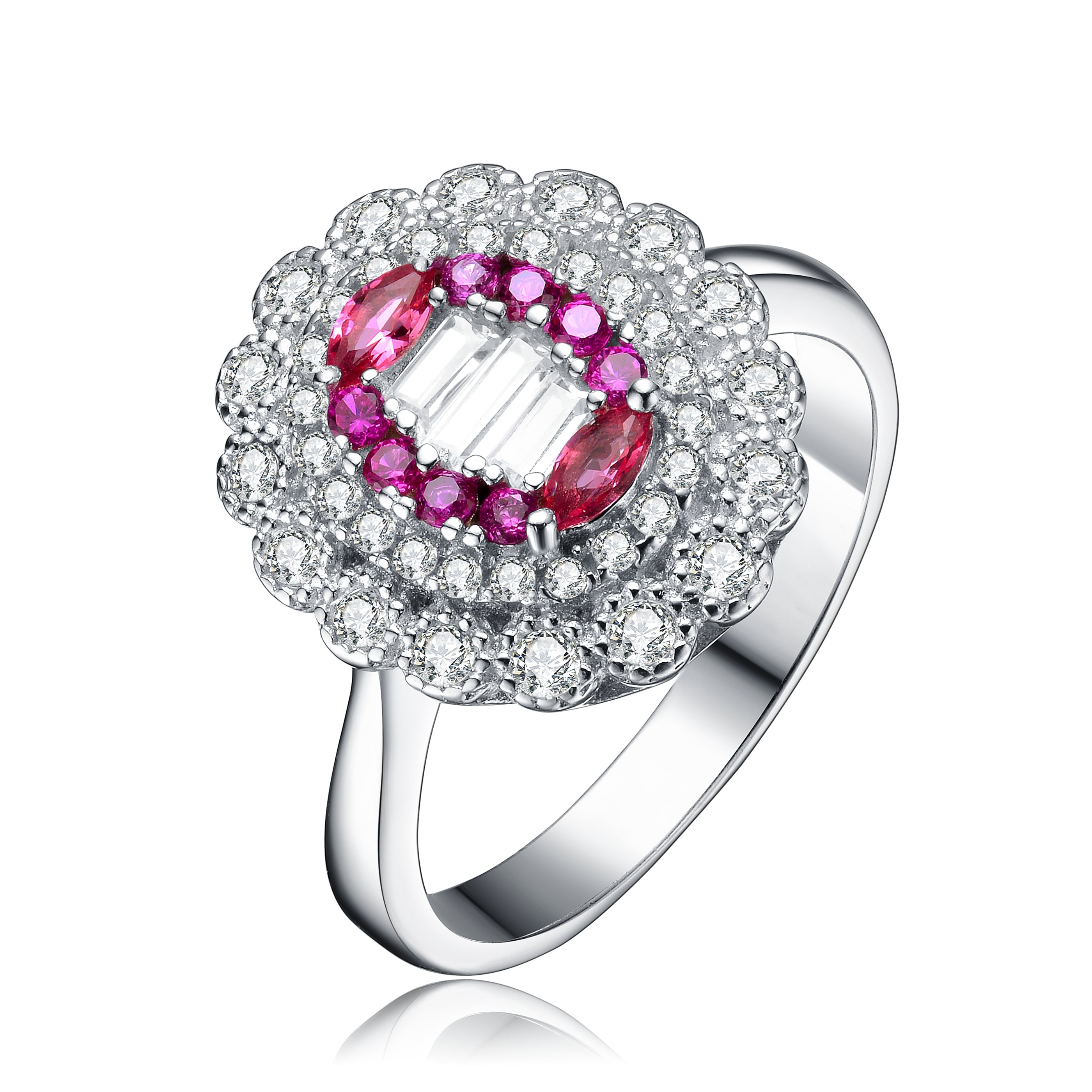 Sterling Silver Ruby and Clear Cubic Zirconia Ring