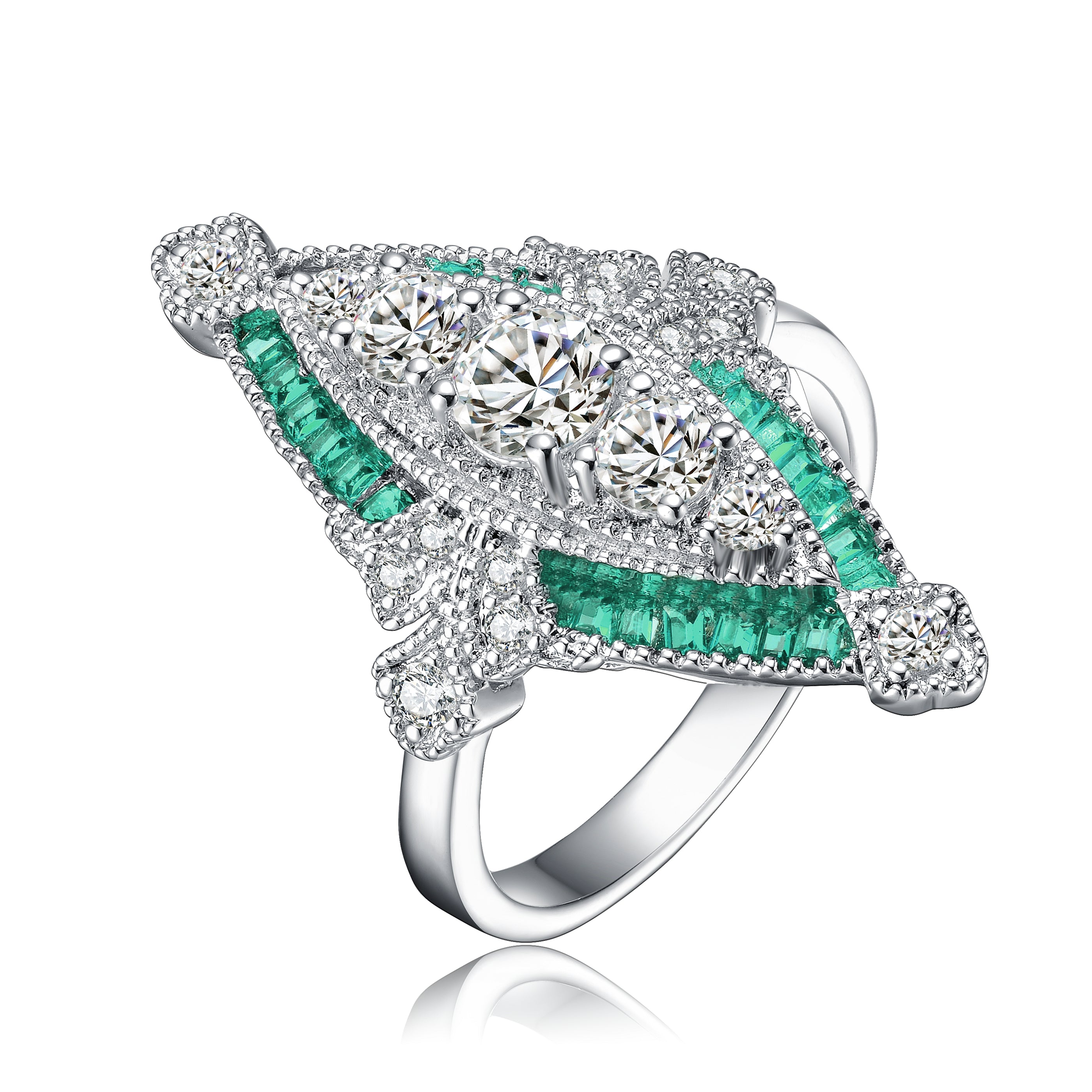 Sterling Silver Rhodium Plated Emerald Cubic Zirconia Band Ring