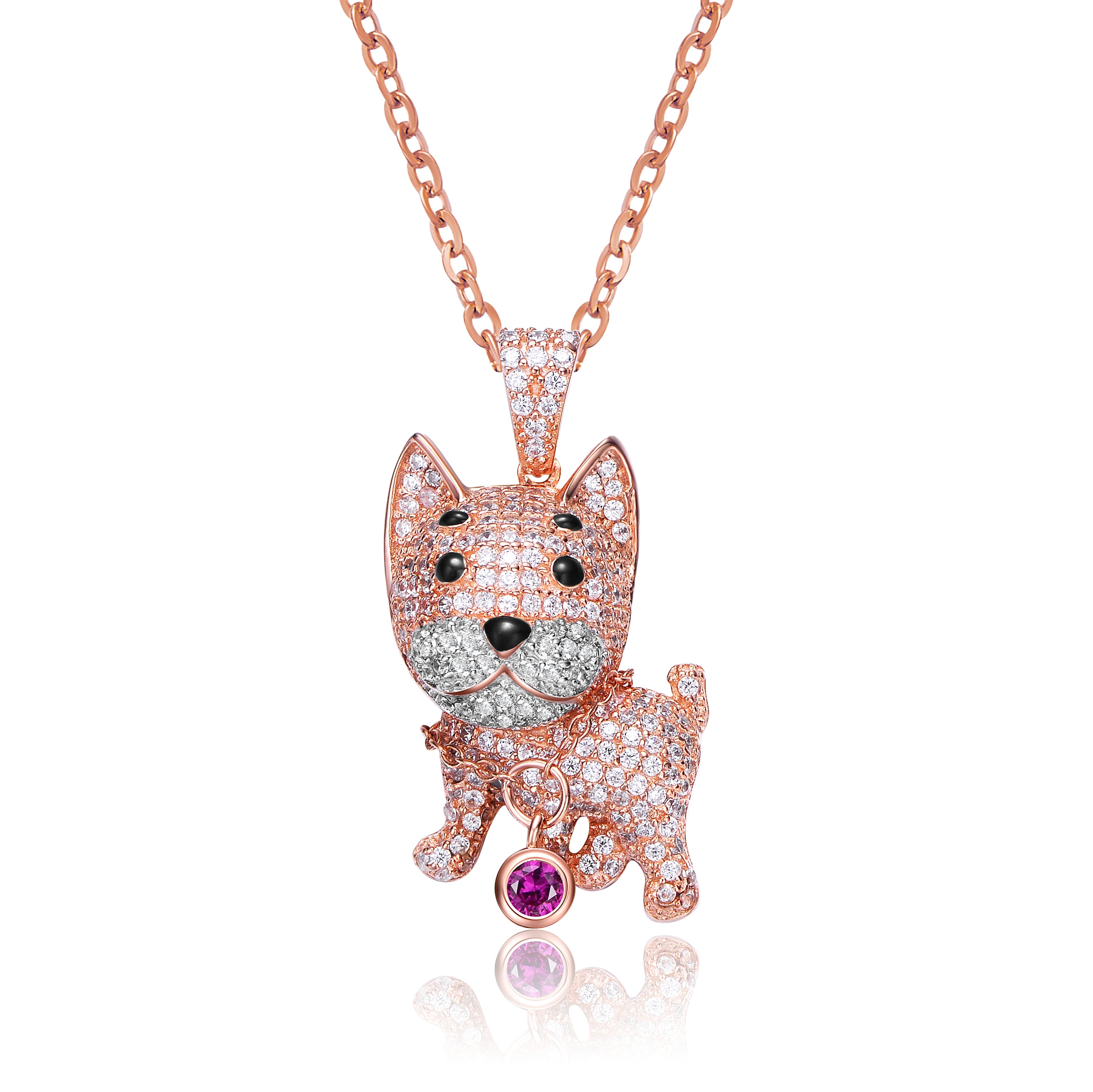 Sterling Silver Rhodium and 18K Gold Plated Enamel and Cubic Zirconia Cat Pendant