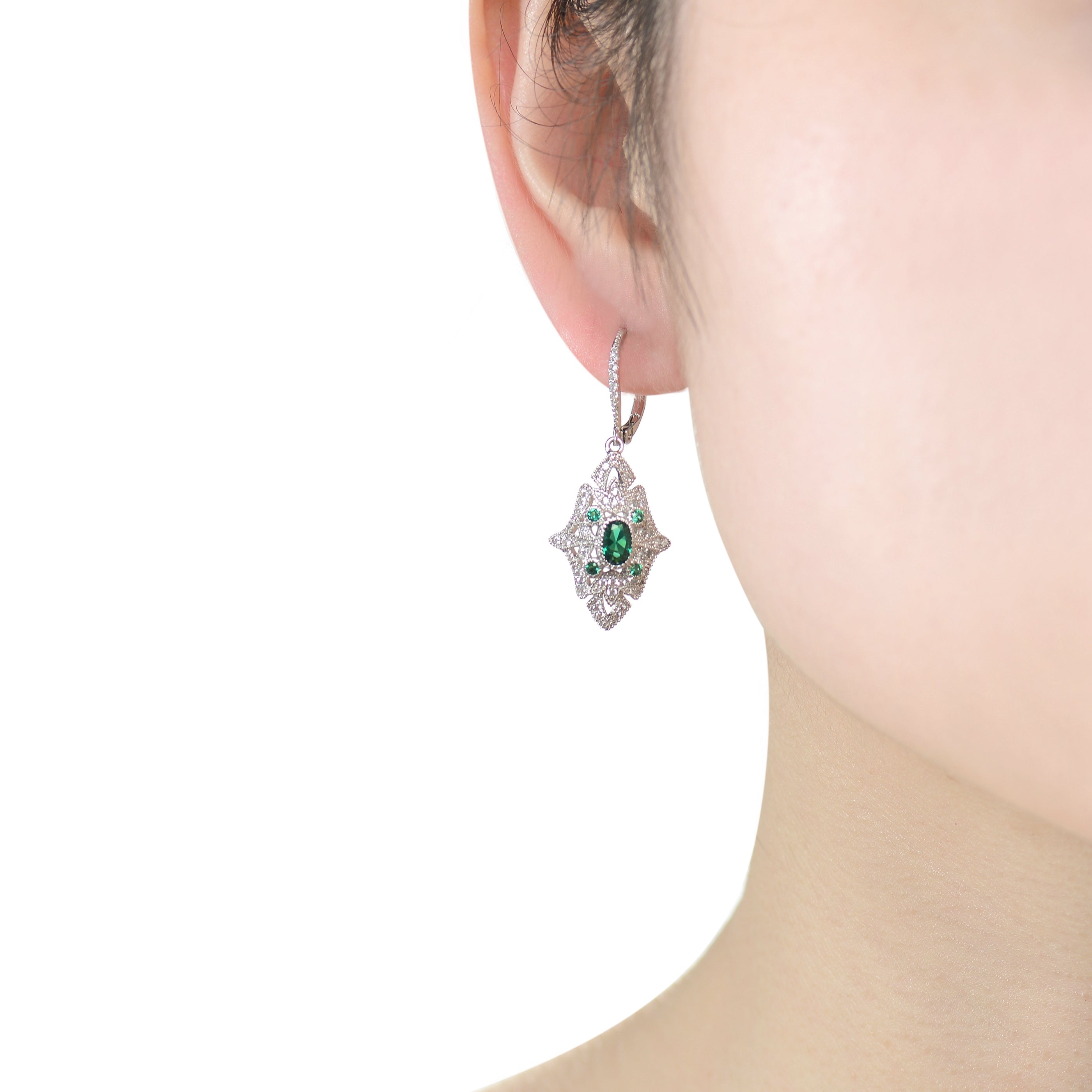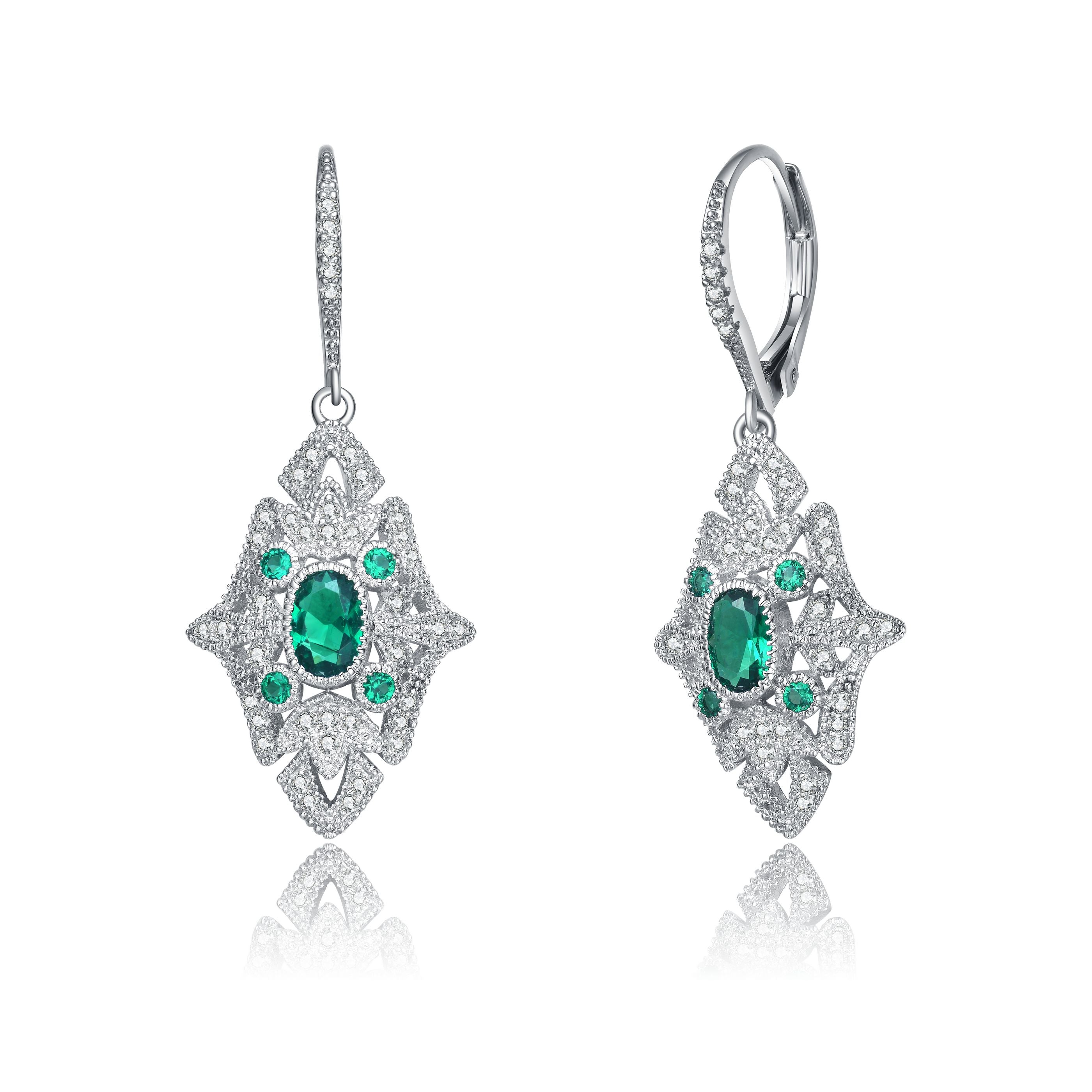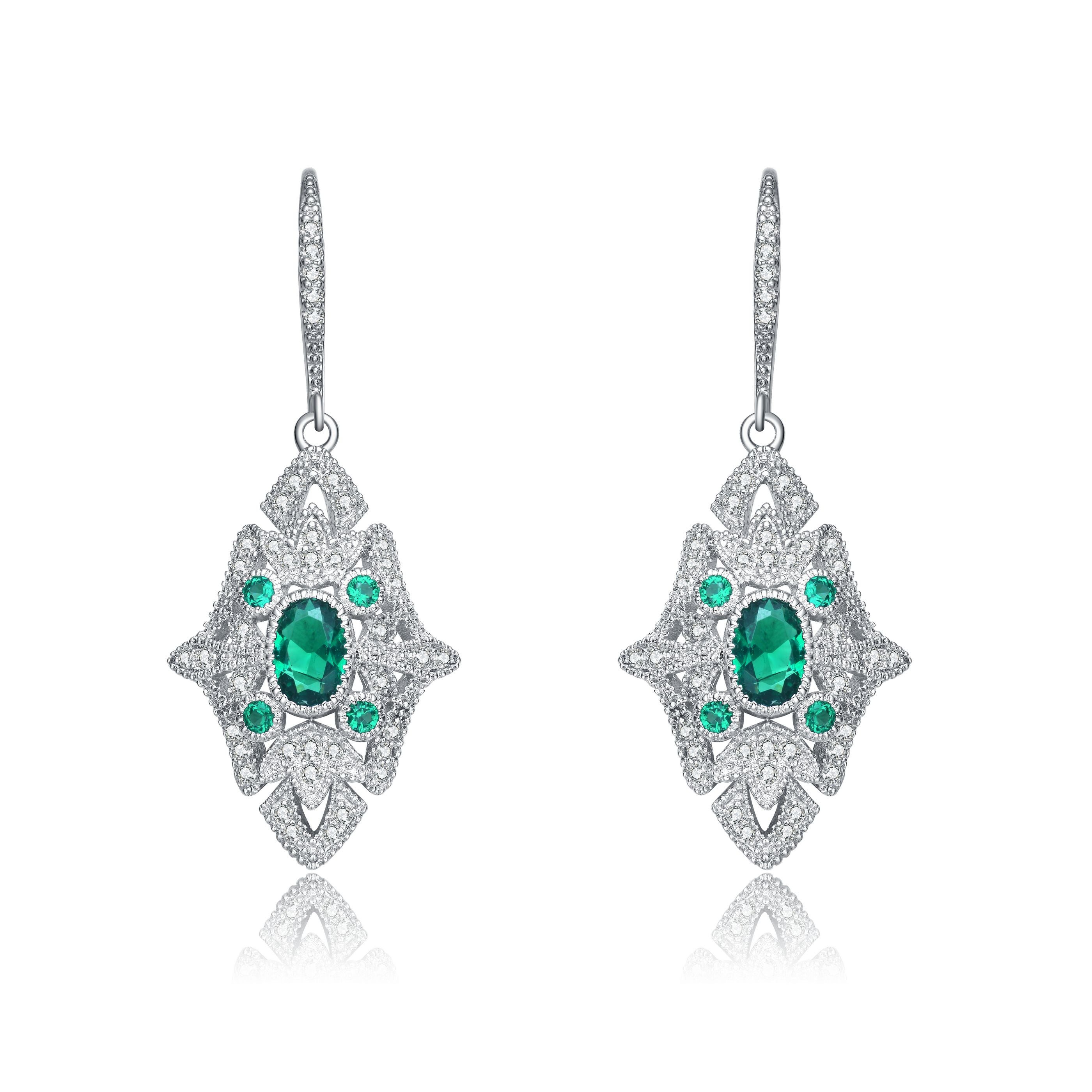 Sterling Silver with Emerald & Diamond Cubic Zirconia Hinged Open Cuff Bangle Bracelet