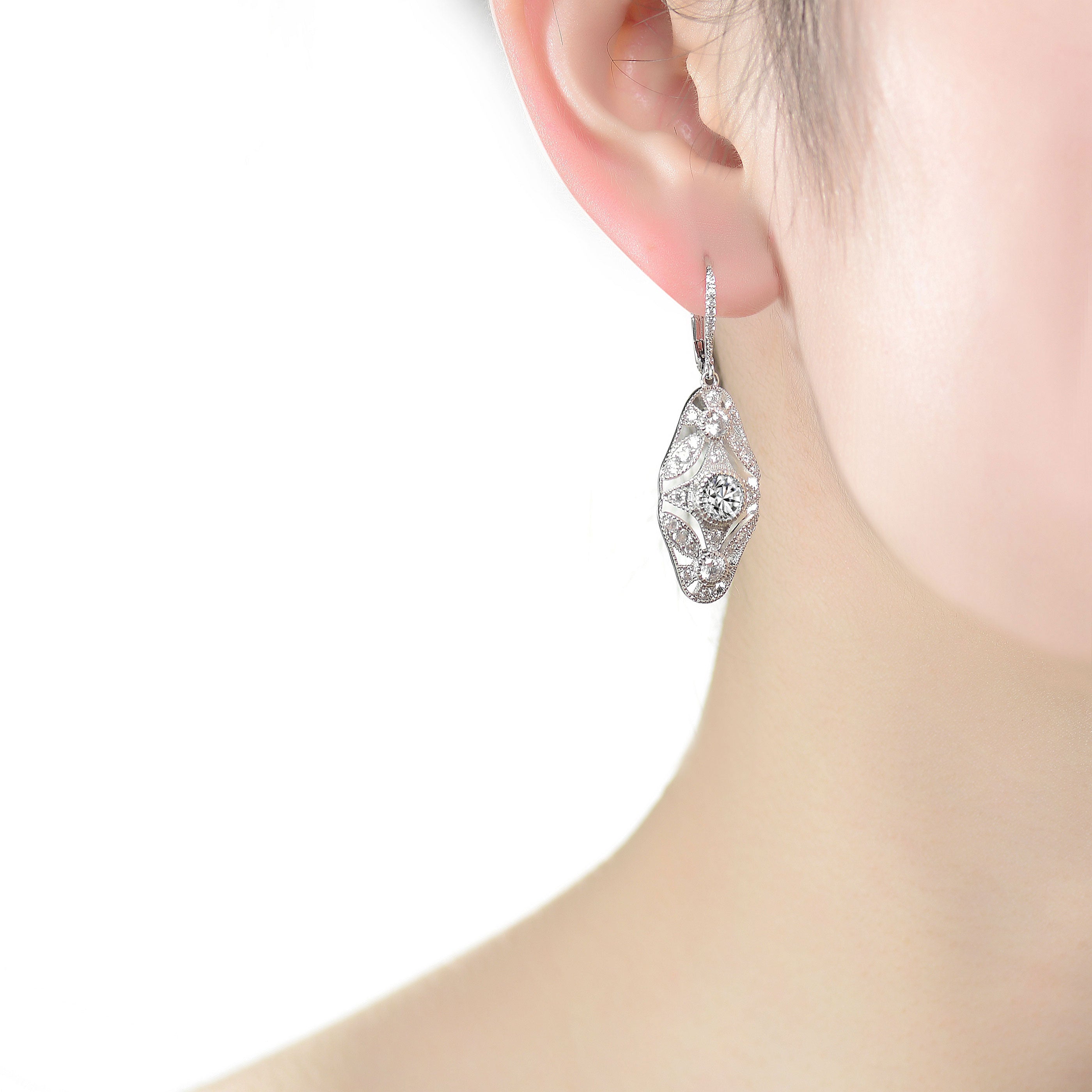Stylish Sterling Silver Two-Tone Diamond Dangling Earrings
