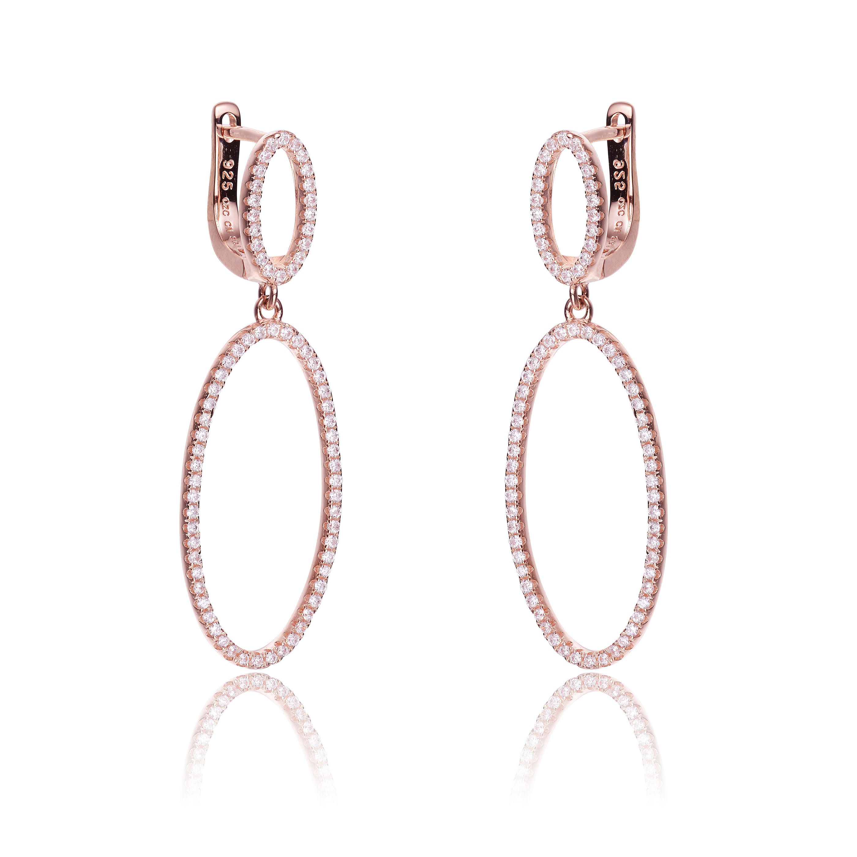 Sterling Silver with Clear Cubic Zirconia Double Outlined Teardrop Earrings