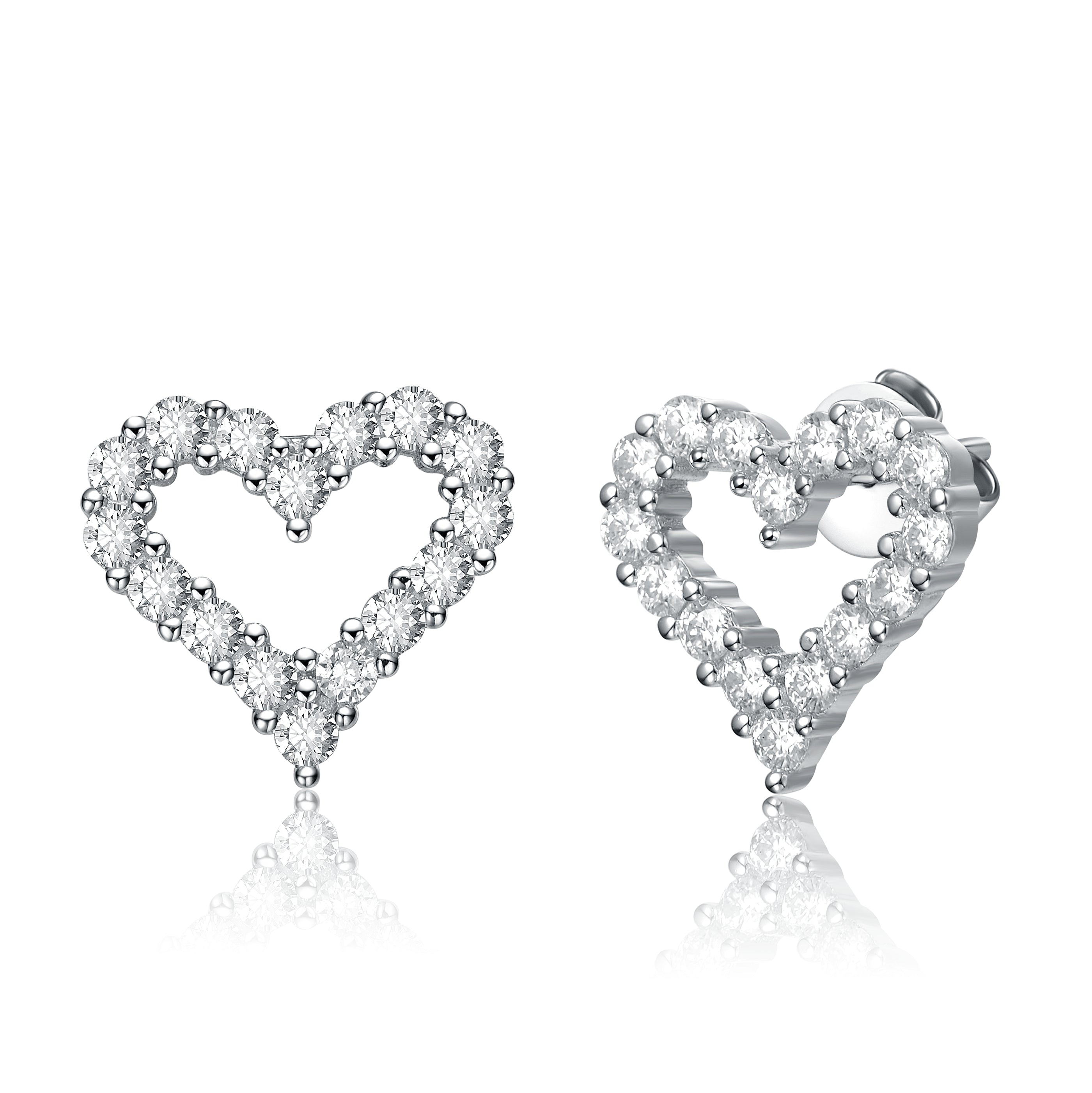 Sterling Silver with 1ctw Lab Created Moissanite French Pave Heart Halo Stud Earrings