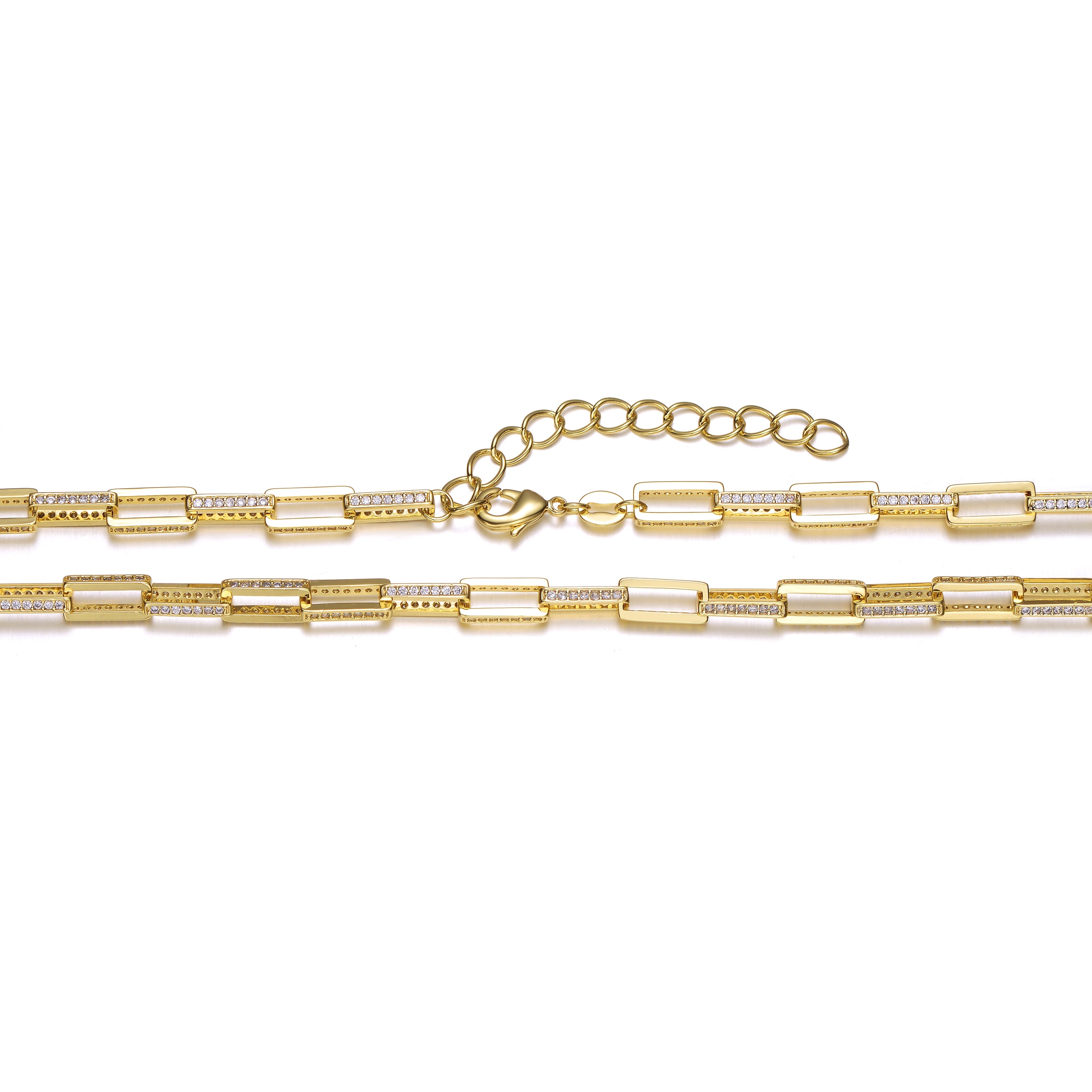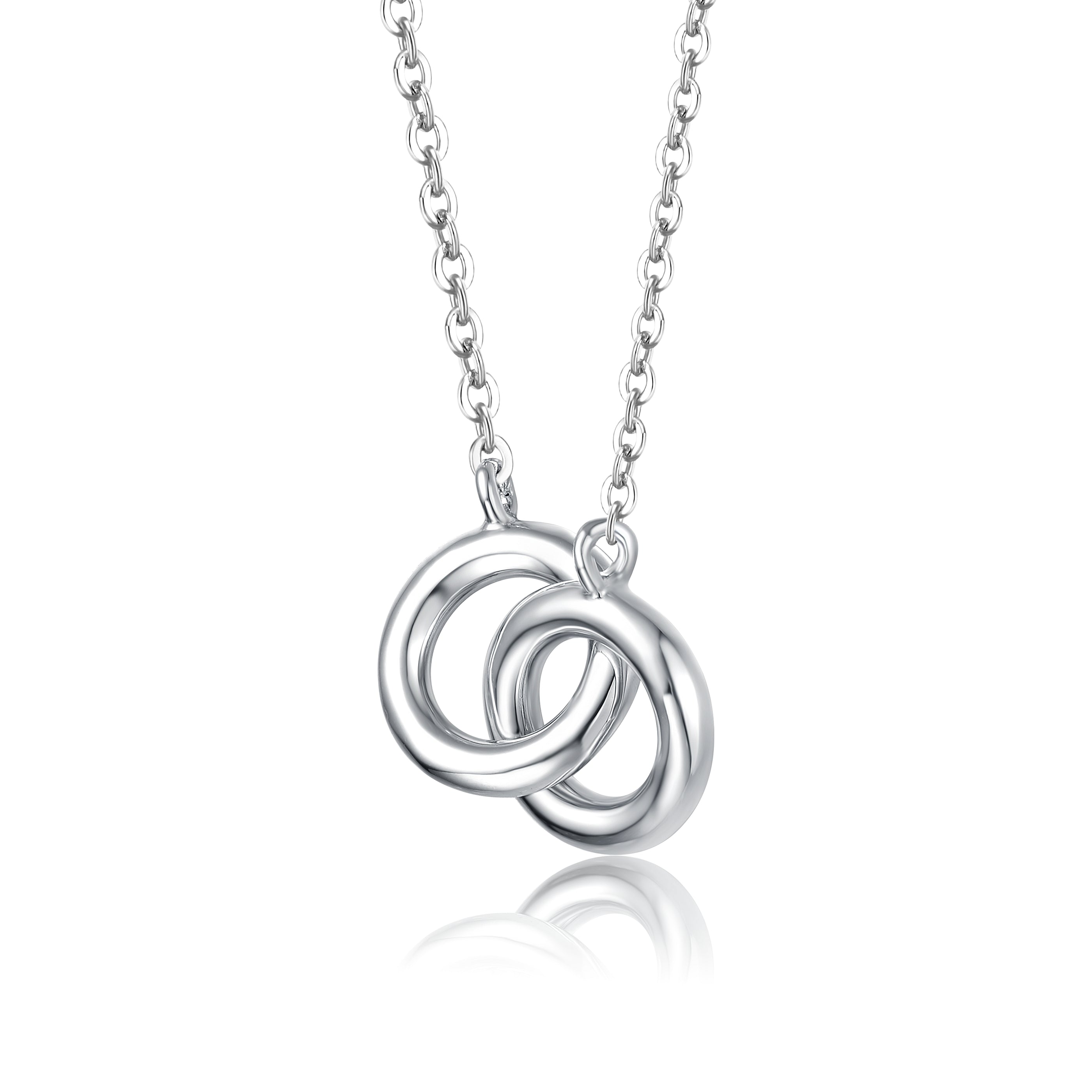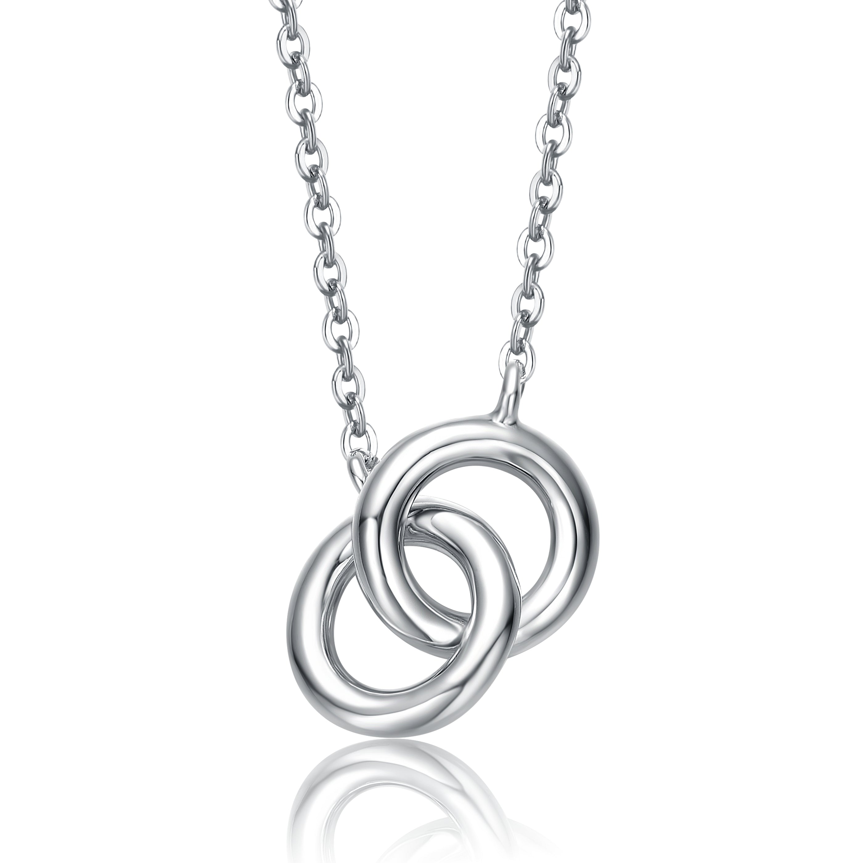 Sterling Silver White Gold Plated Cubic Zirconia Two Rings Necklace