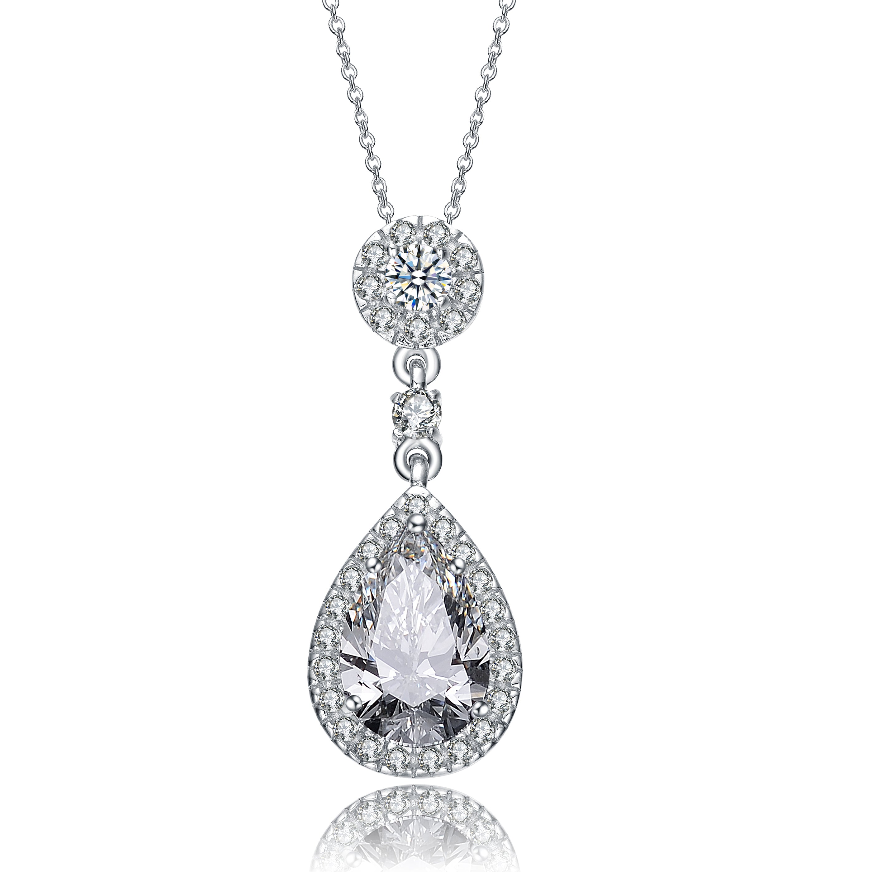 Sterling Silver with Cubic Zirconia Vintage Cluster Teardrop Pendant Necklace