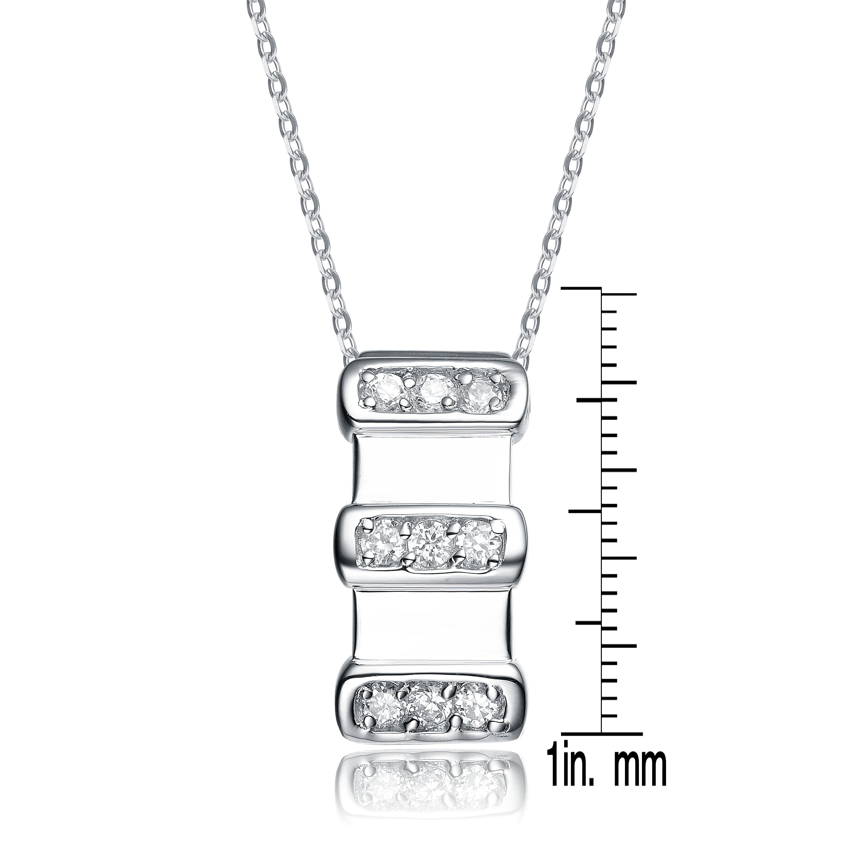 Sterling Silver with Rhodium Plated and Cubic Zirconia Round Pendant Necklace