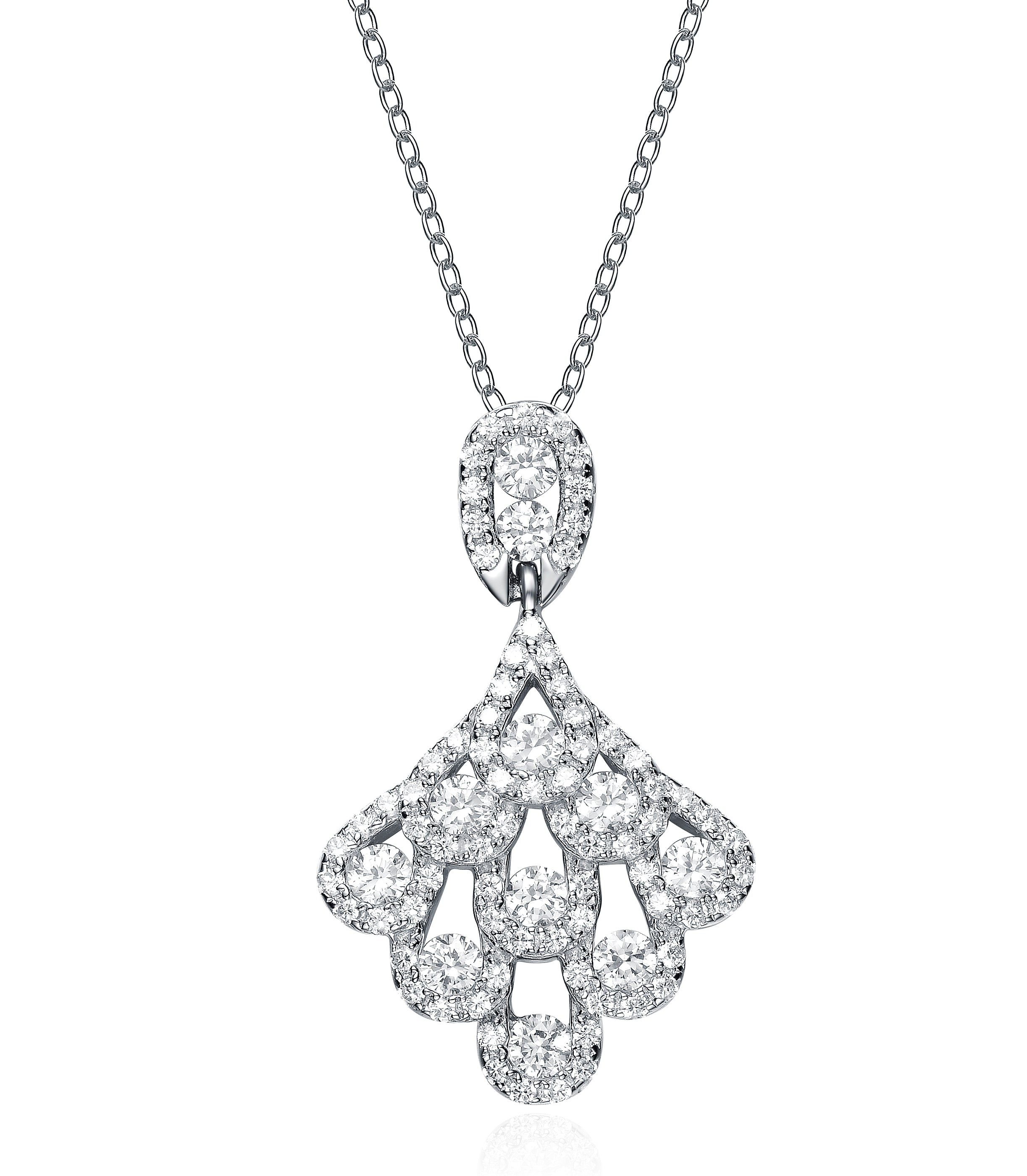 Sterling Silver White Gold Plated with Clear Cubic Zirconia Chandelier Like Pendant Necklace