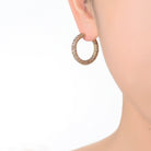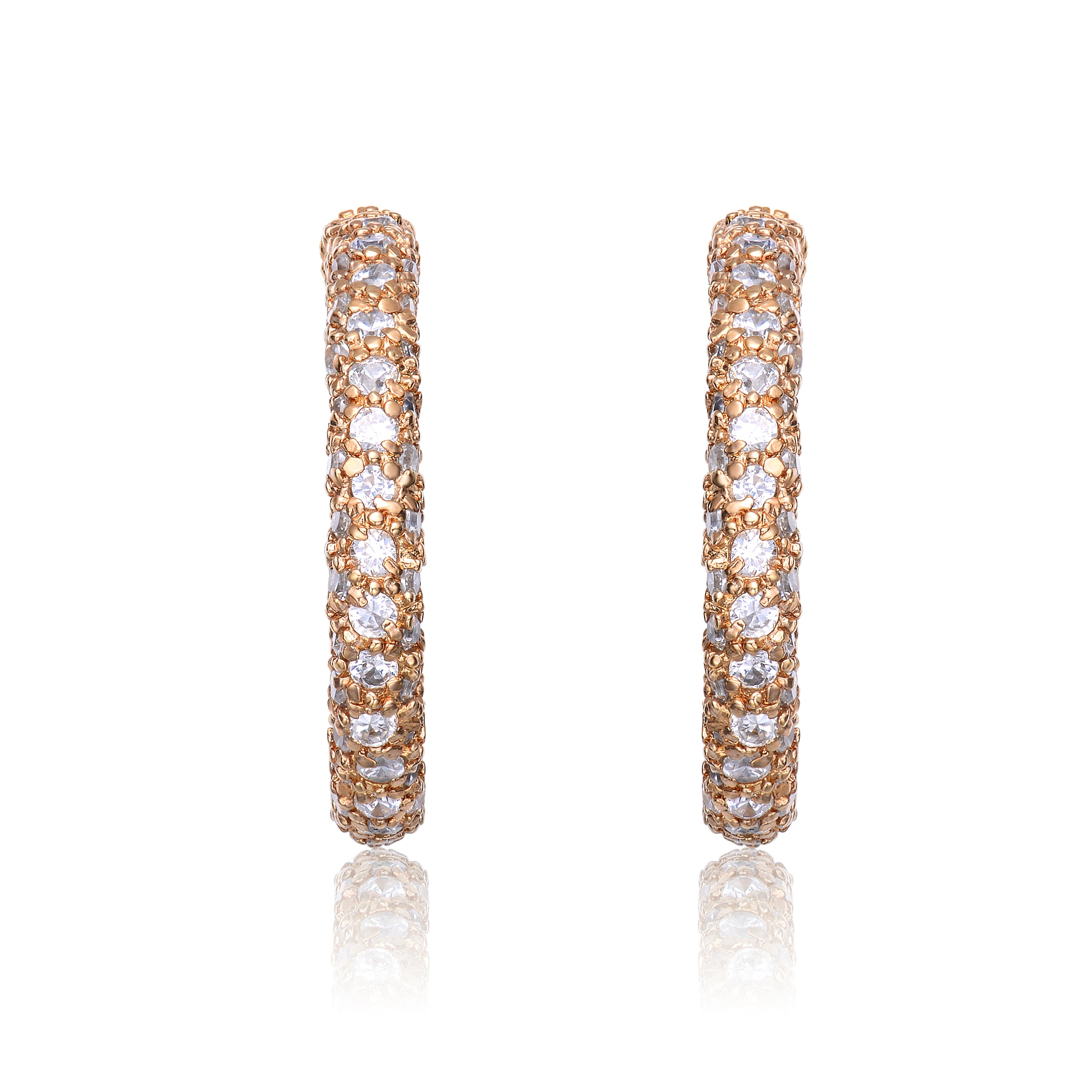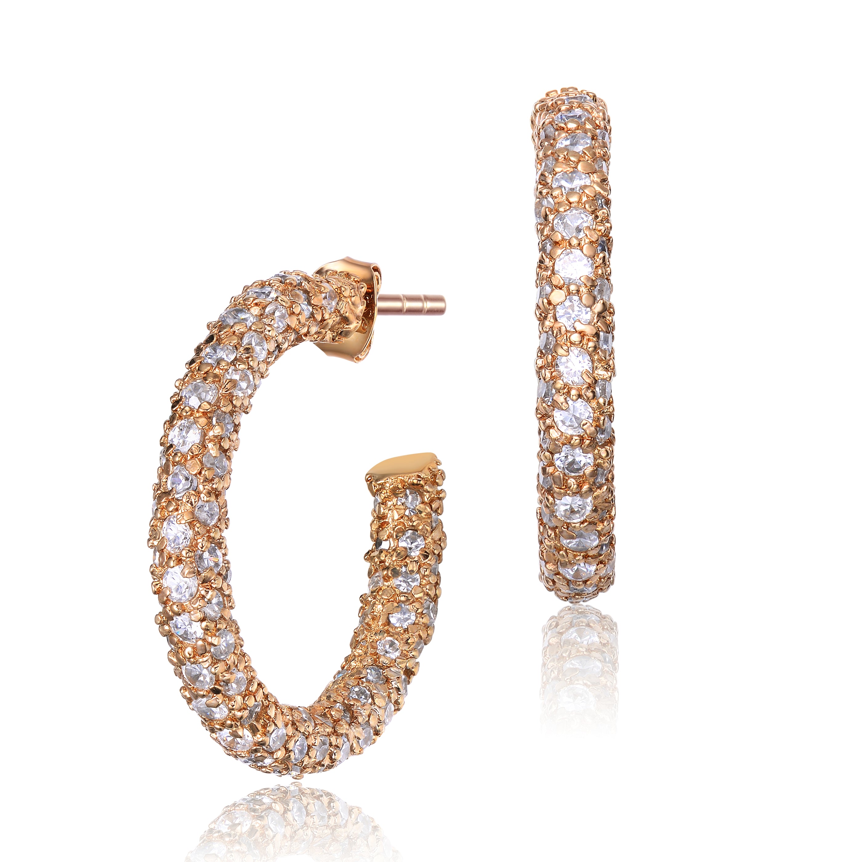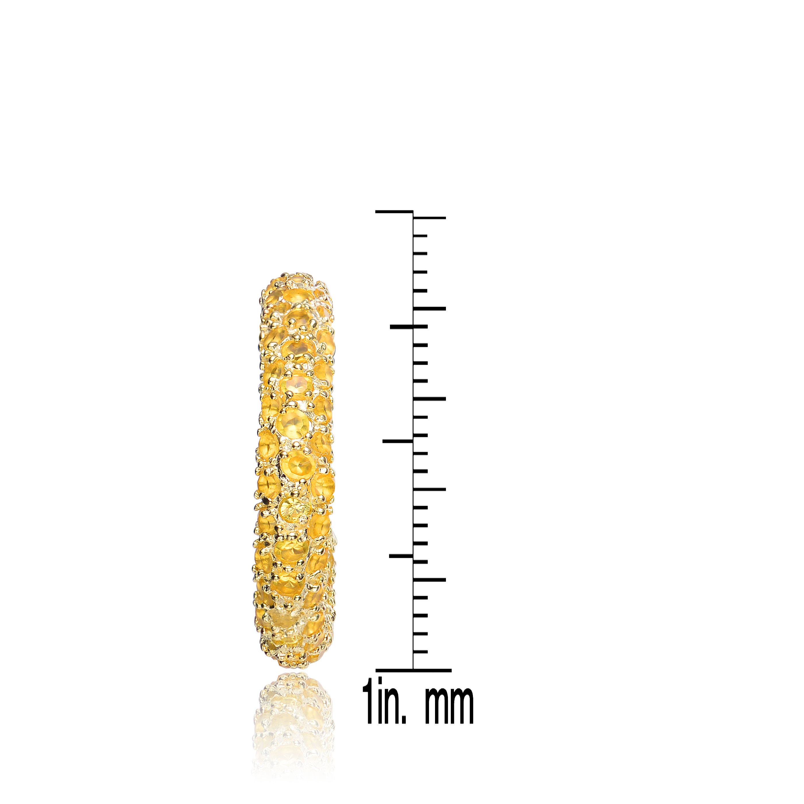 Stylish .925 Sterling silver gold plated yellow cubic zirconia pave hoop earrings. Encrusted with yellow cubic zirconia stones these classic hoop earrings offer a new spin. Crafted of .925 Sterling silver with gold plating and secure with butterfly closure. These earrings are appropriate for both day and night looks.