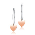 Stylish Sterling Silver with Heart Rose Gold plated Dangle Hoop Earrings. This piece boasts of heart Rose Gold plated dangles. Crafted of .925 Sterling Silver, the jewelry is secured with an omega clasp. This jewelry is perfect on a casual event. These also make a great present for an ocassion.