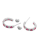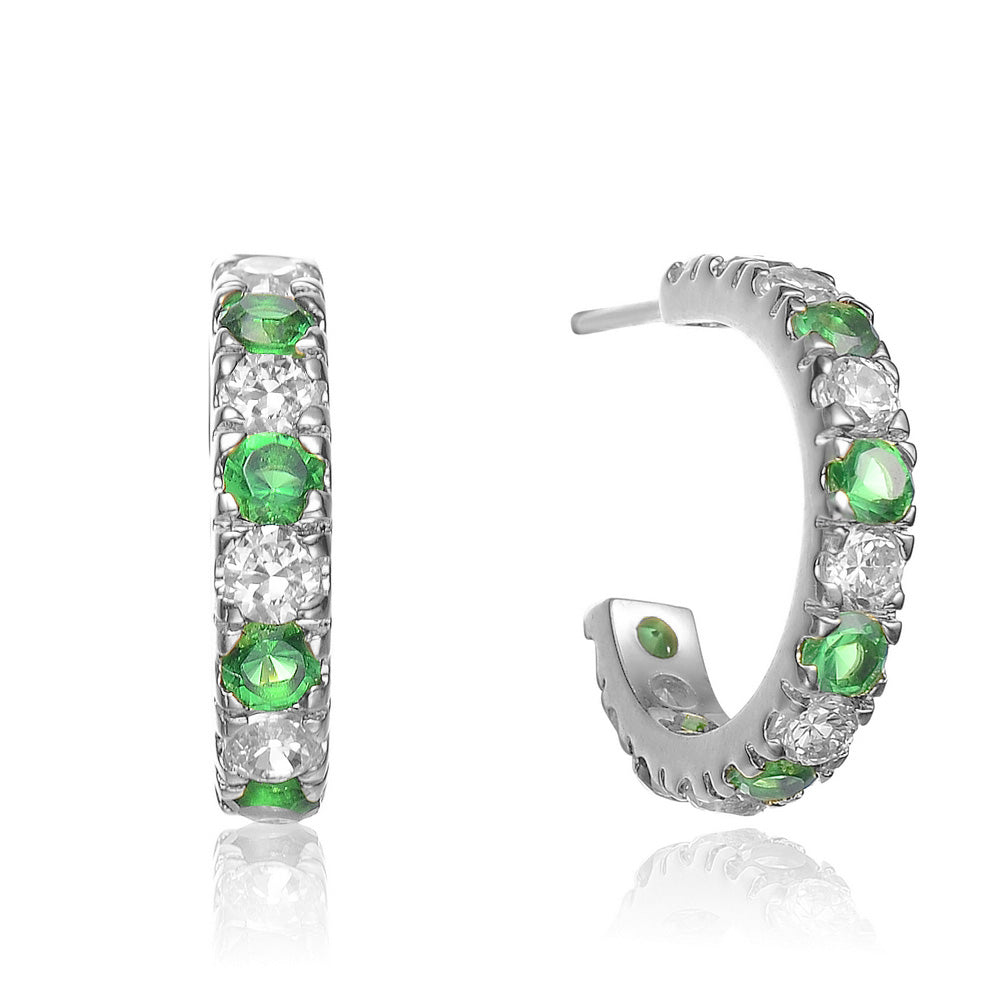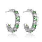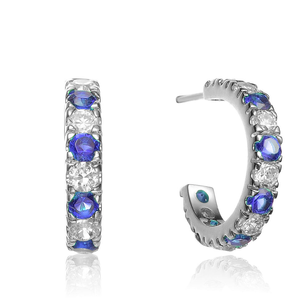 Sterling silver hoop earrings never looked so good. These ravishing hoops are encrusted with blue and green cubic zirconia stones and make a great addition to any collection.