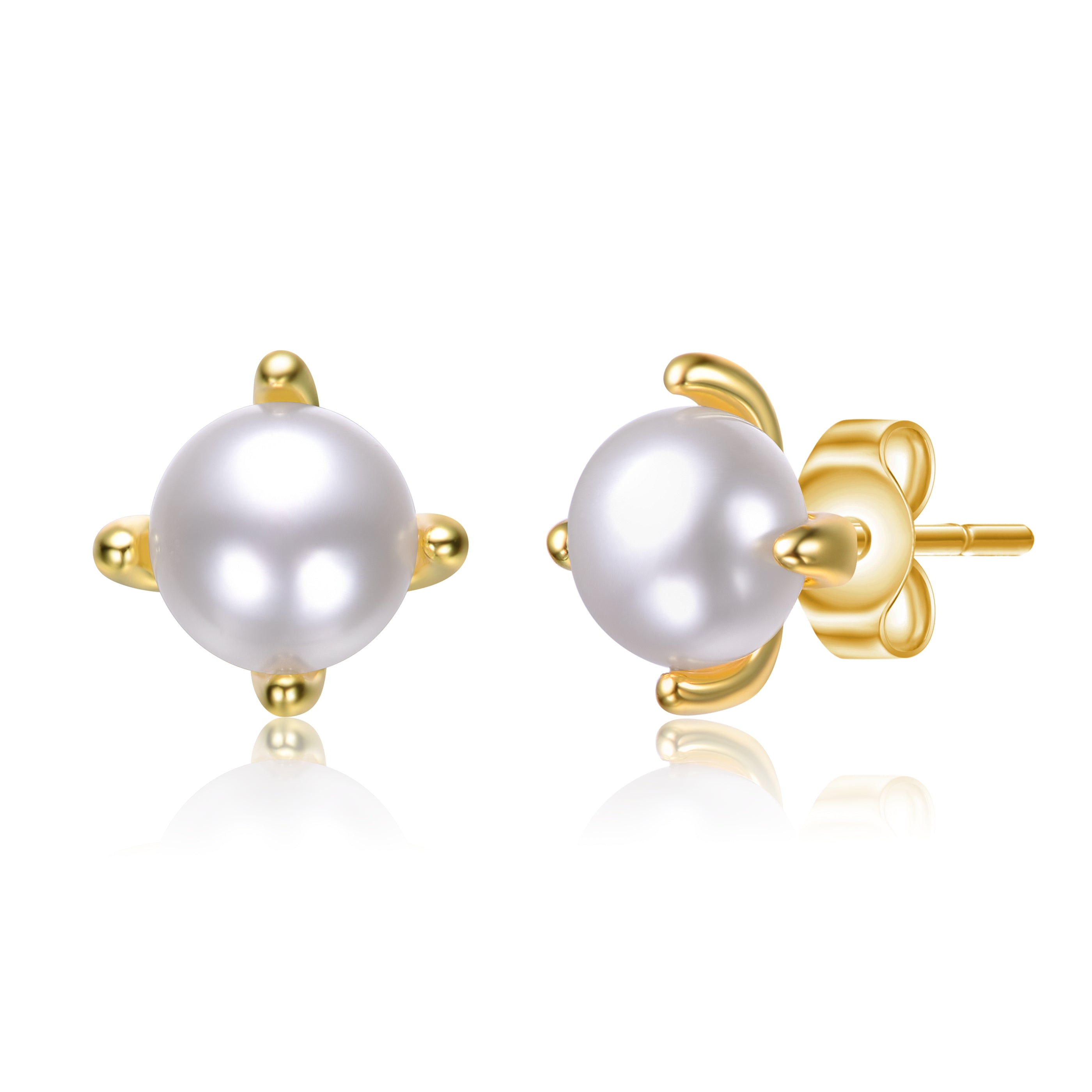 Sterling Silver 14K Gold Plated with White Mother Of Pearl Heart Lock Design Stud Earrings For Kids
