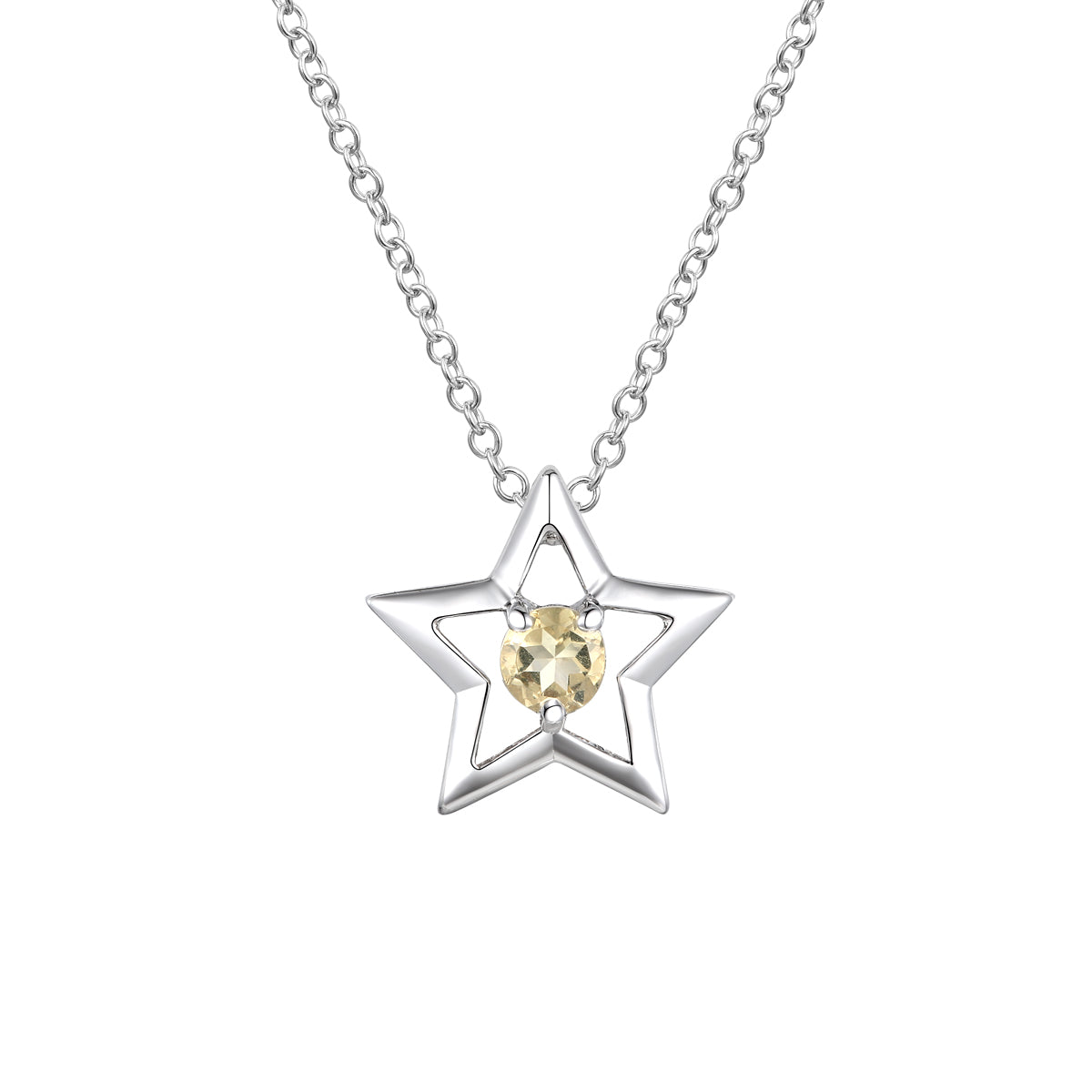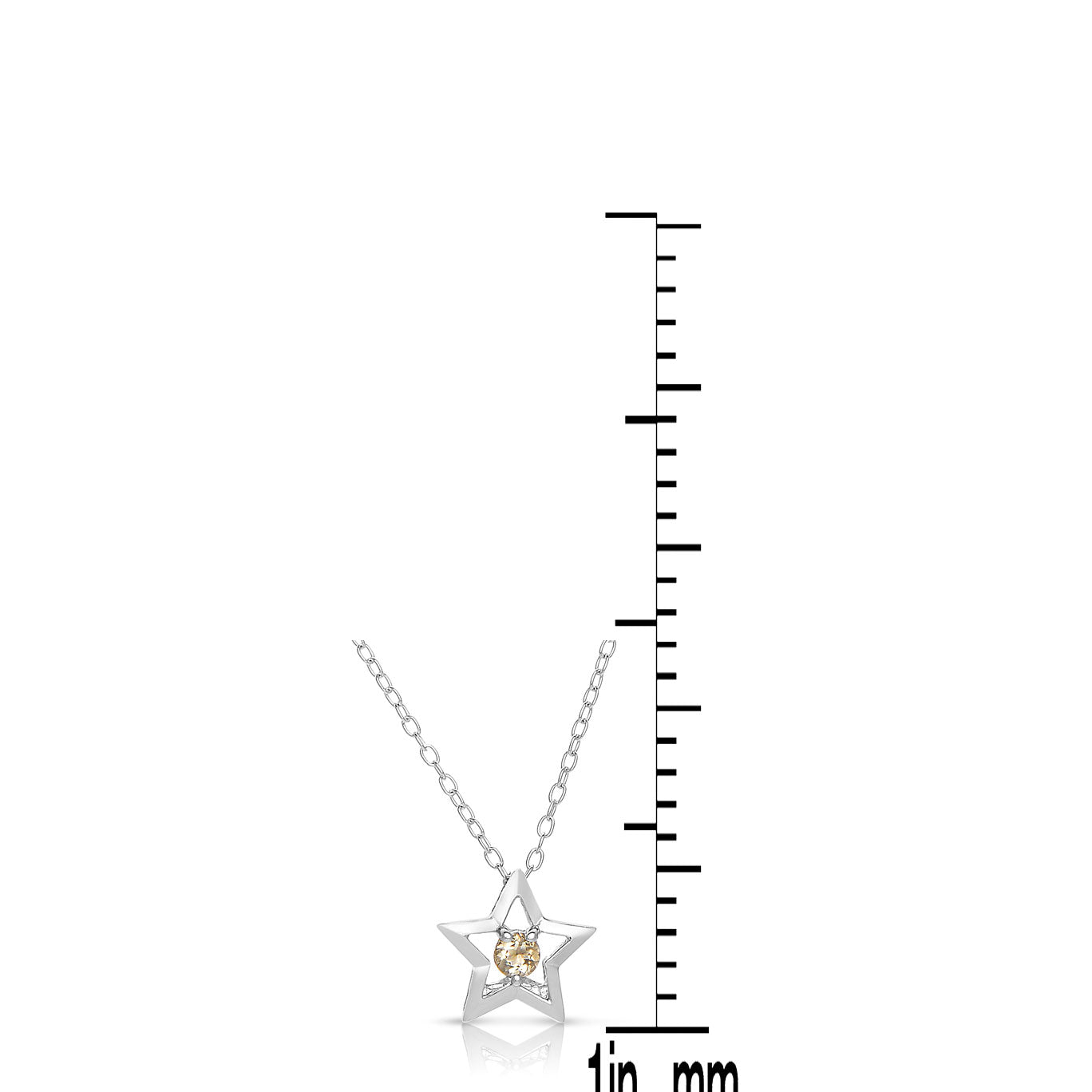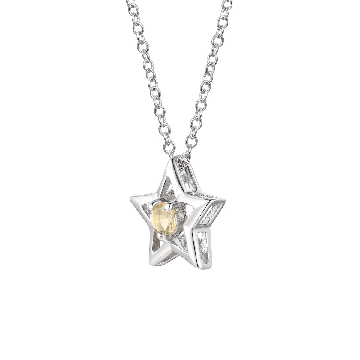 Sterling Silver White Gold Plated with Yellow Tourmaline Gemstone Star Pendant Necklace
