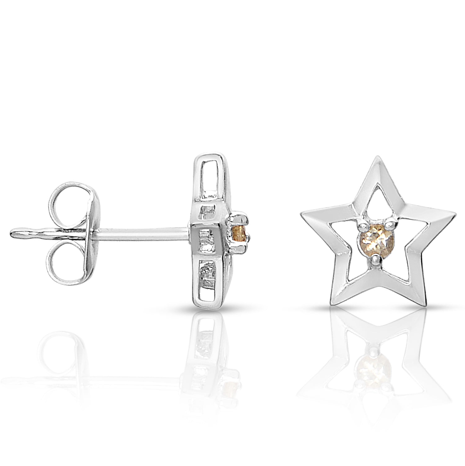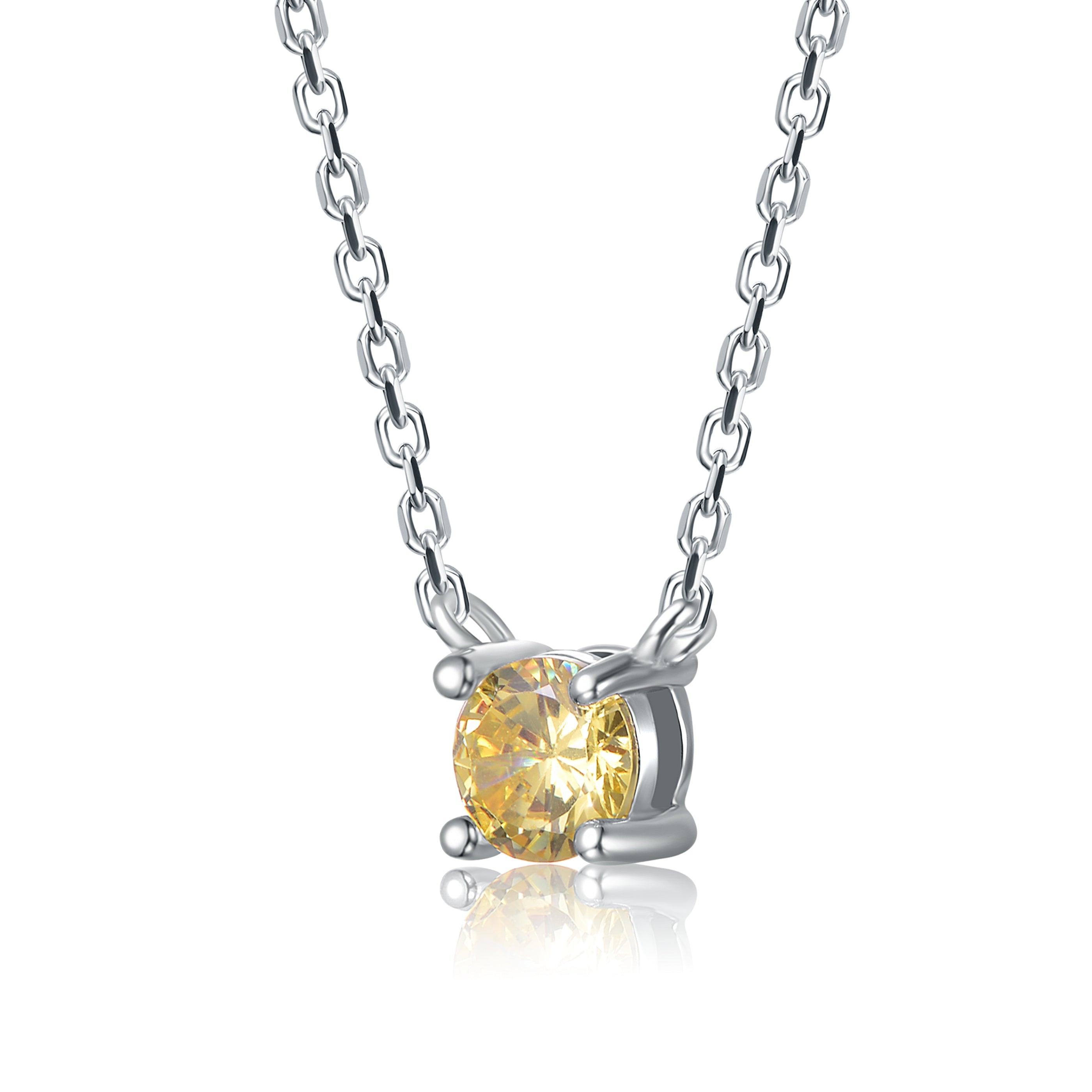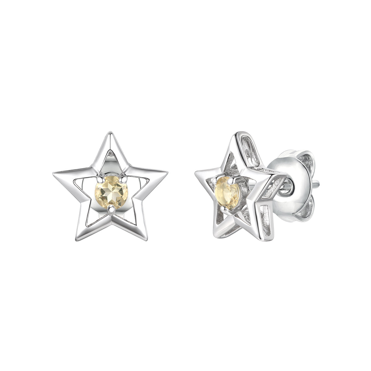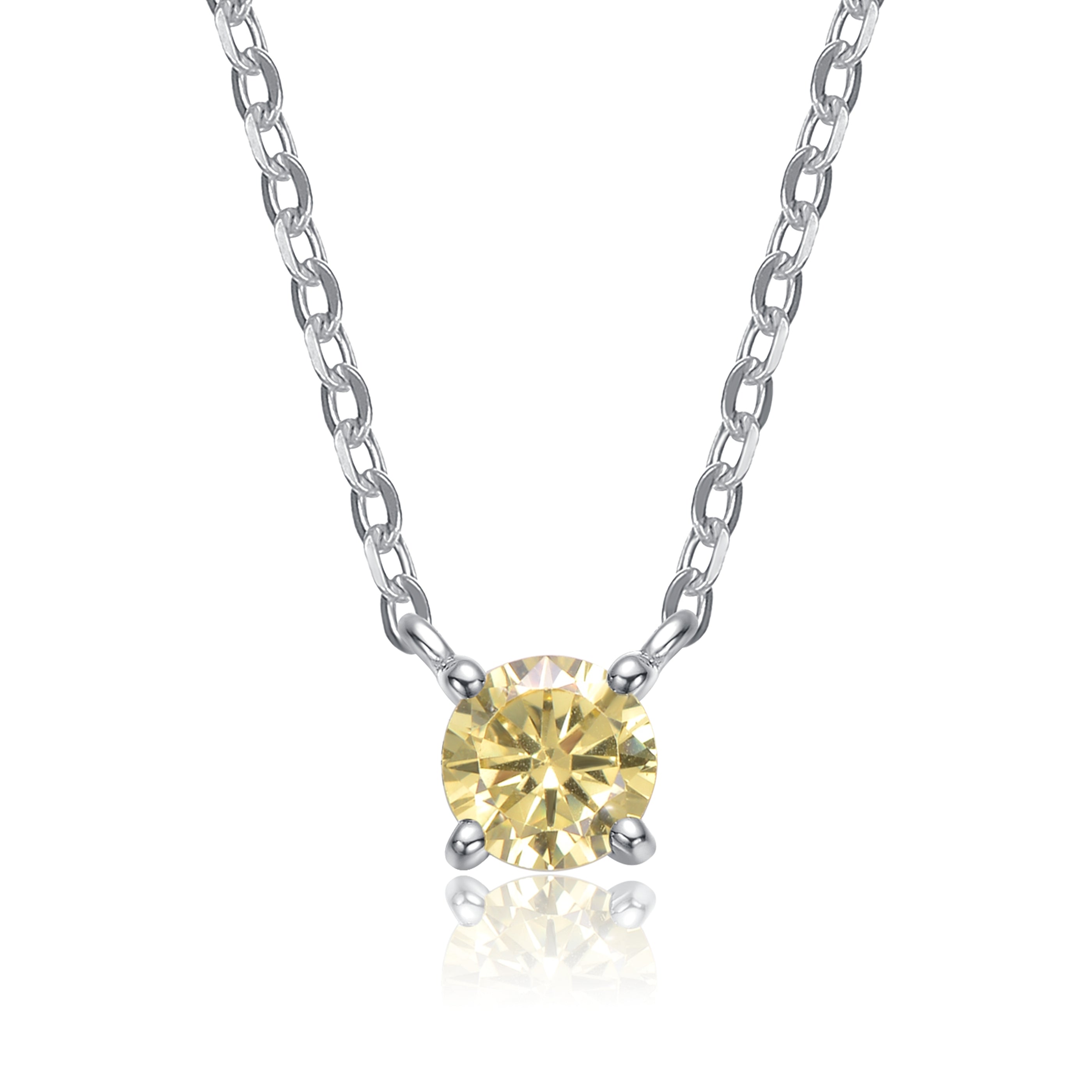 Sterling Silver White Gold Plated with Yellow Tourmaline Gemstone Star Pendant Necklace