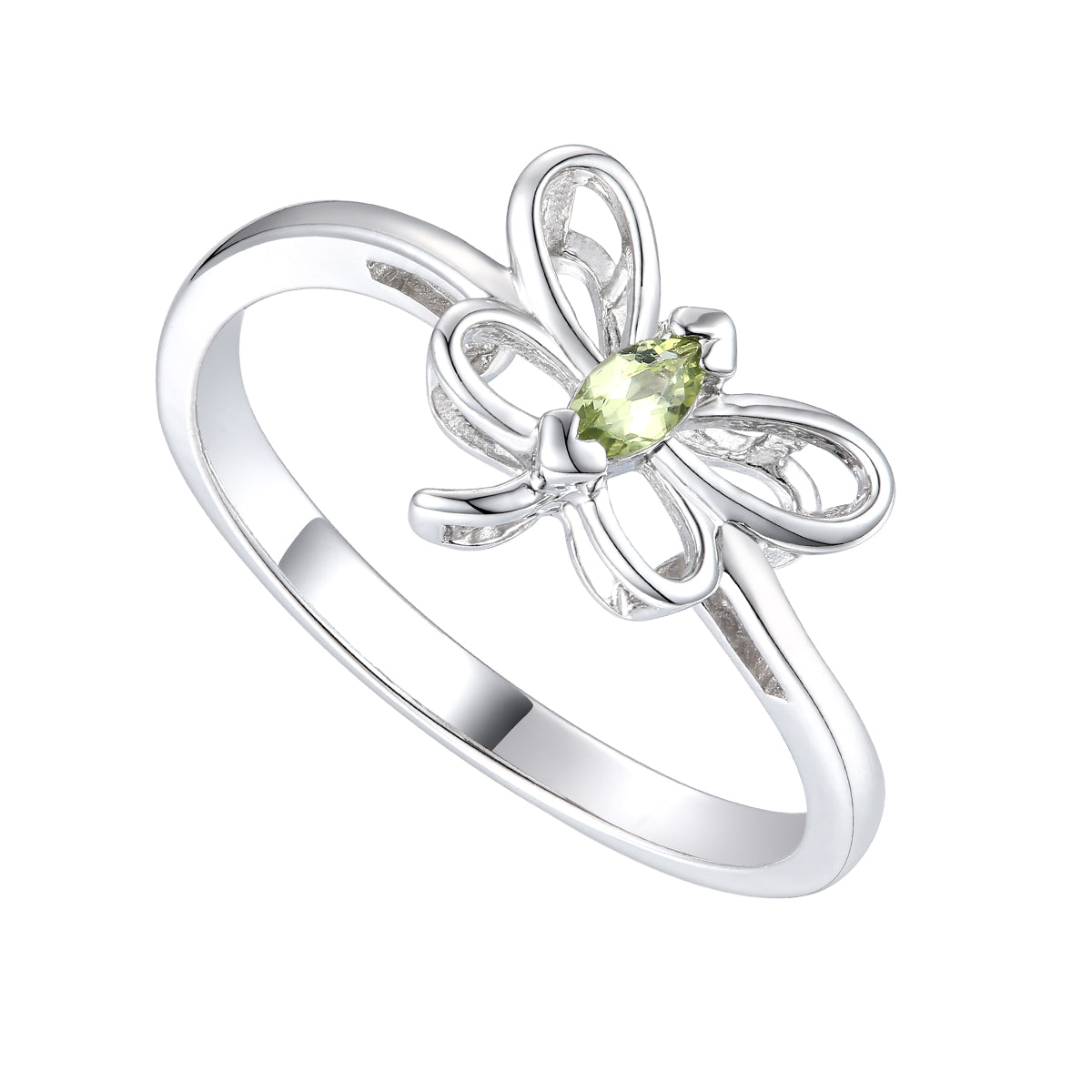Sterling Silver White Gold Plated with Peridot Tourmaline Gemstone Butterfly Ring for Kids/Teens