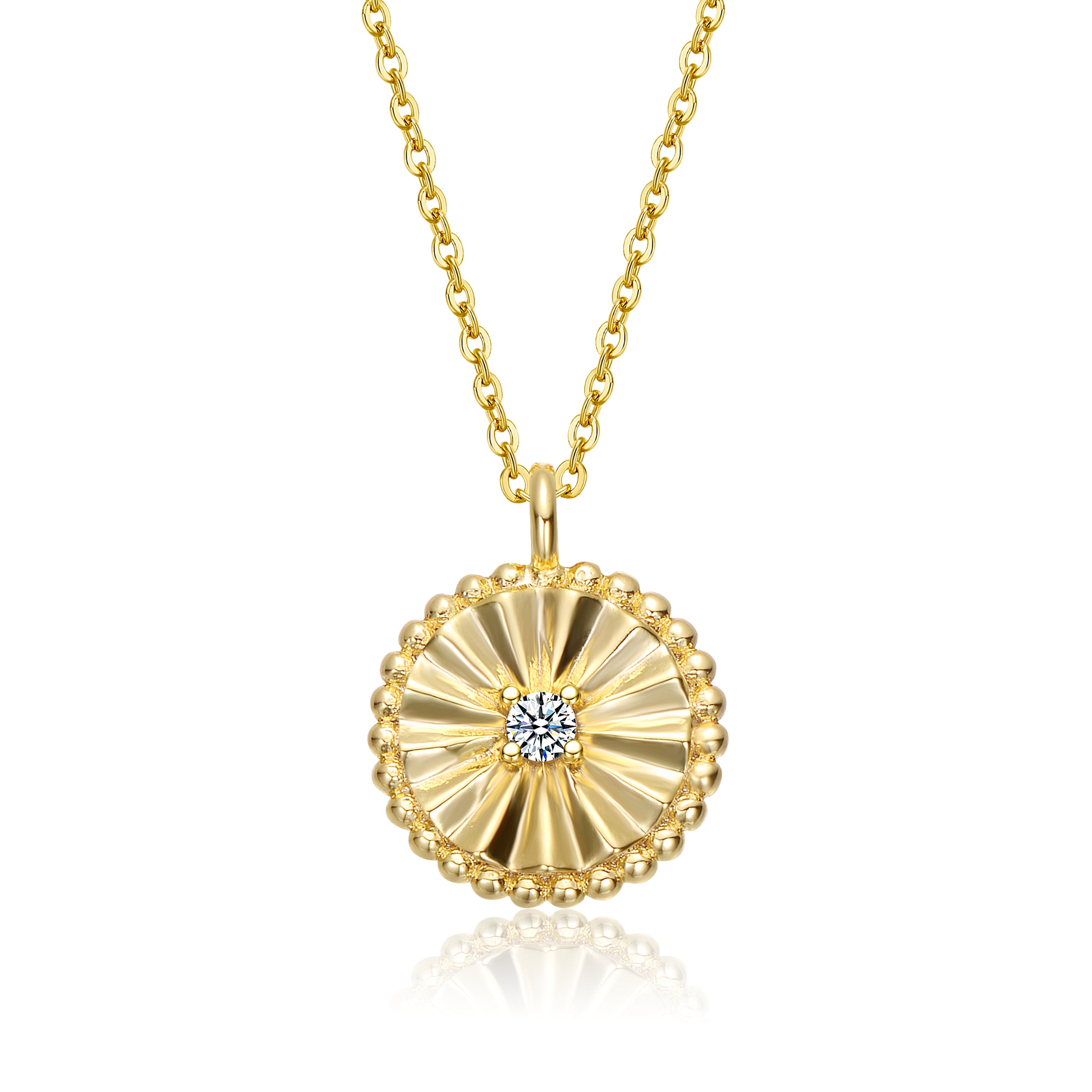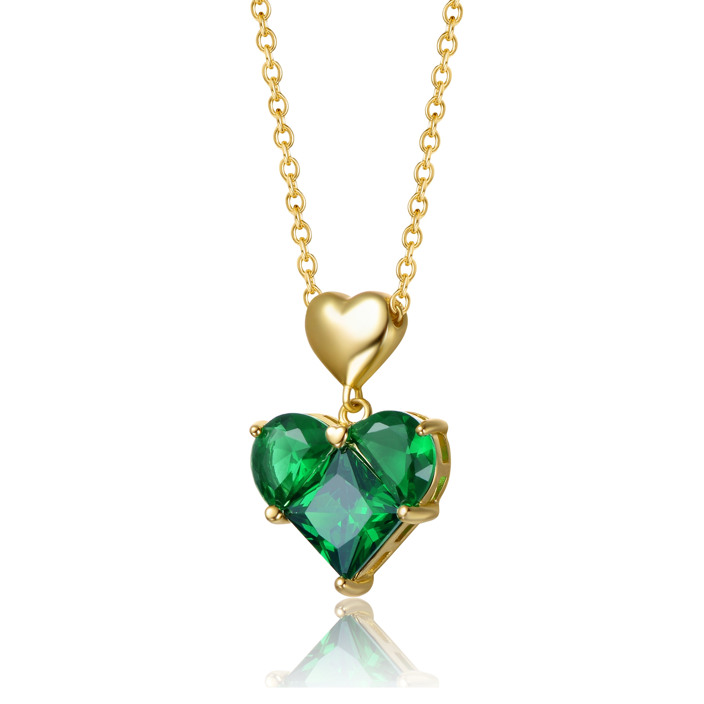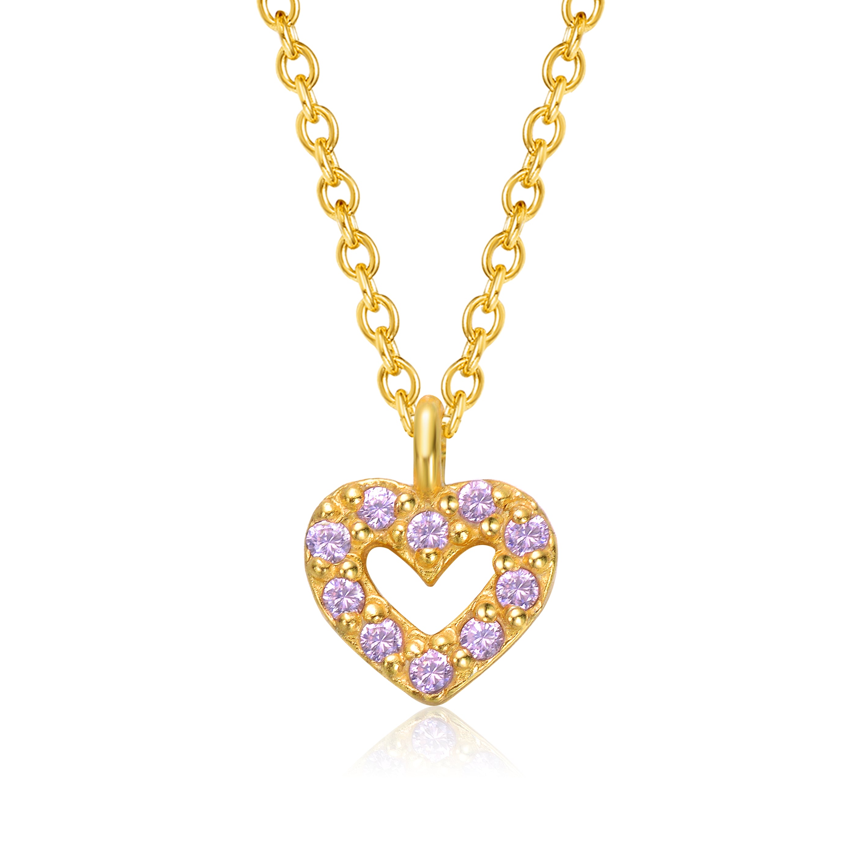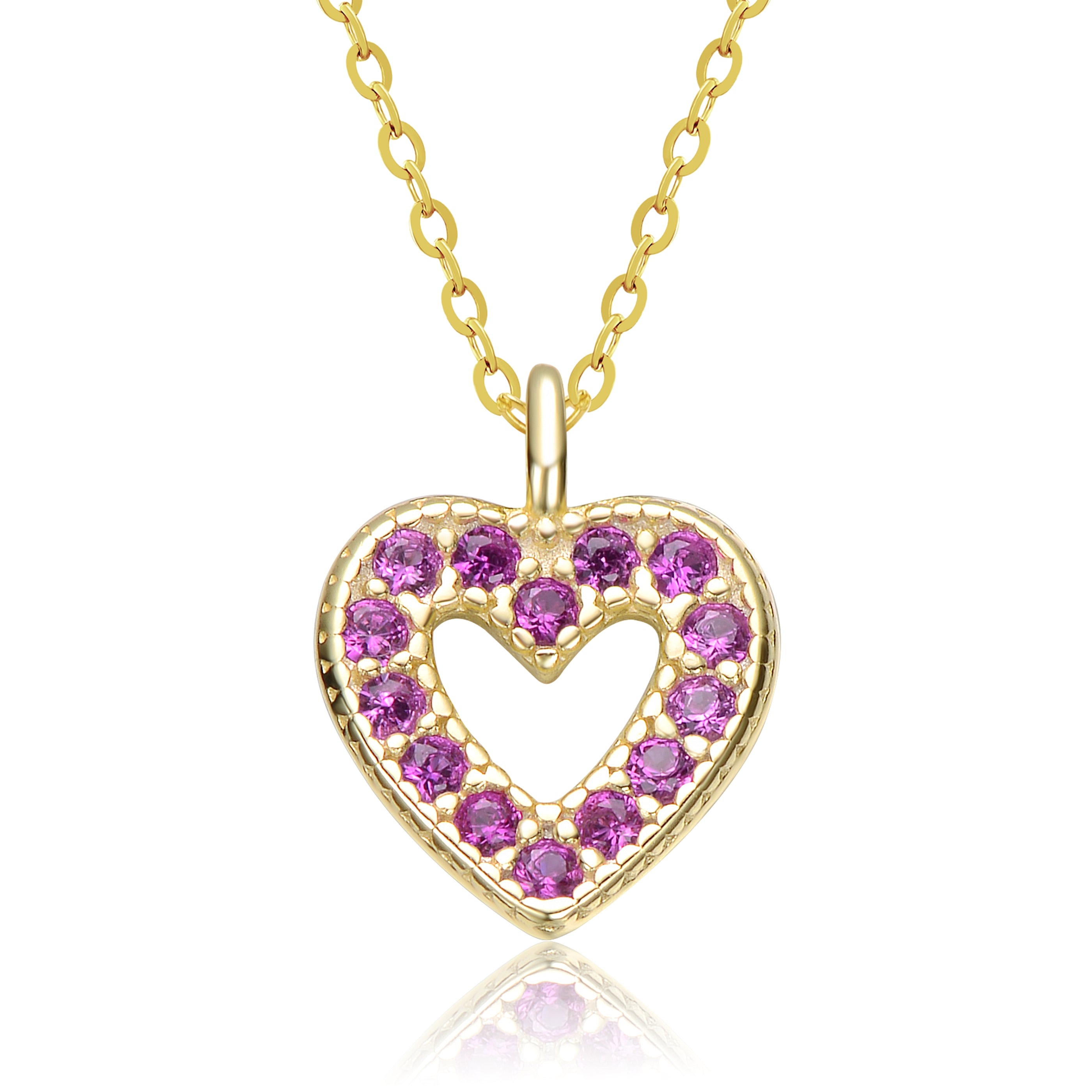 14k Gold Plated Pink Cubic Zirconia Heart Halo Charm Pendant Necklace
