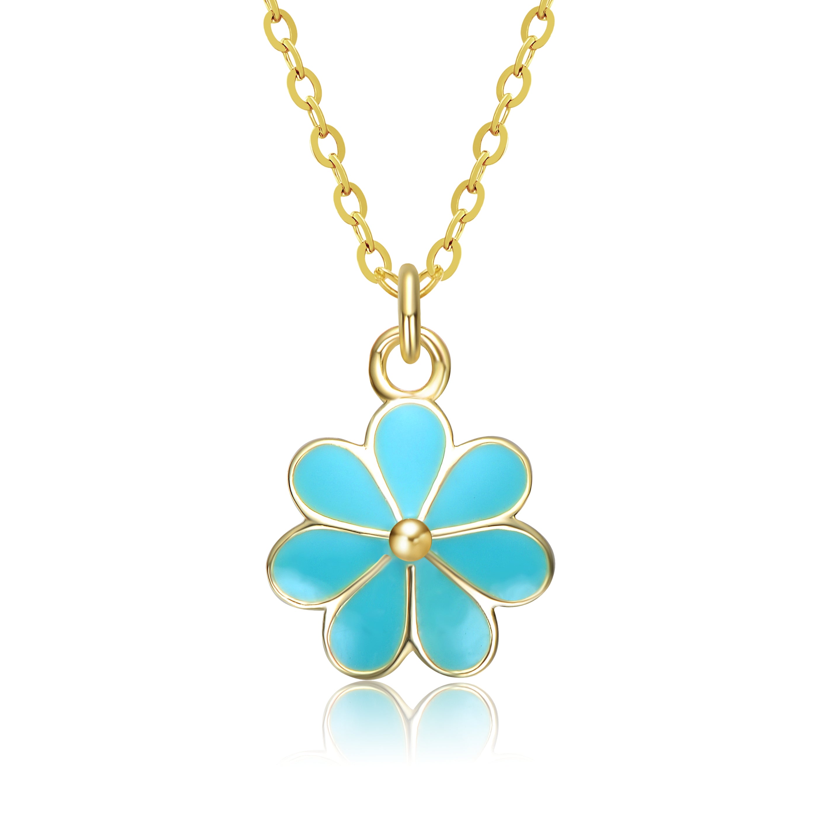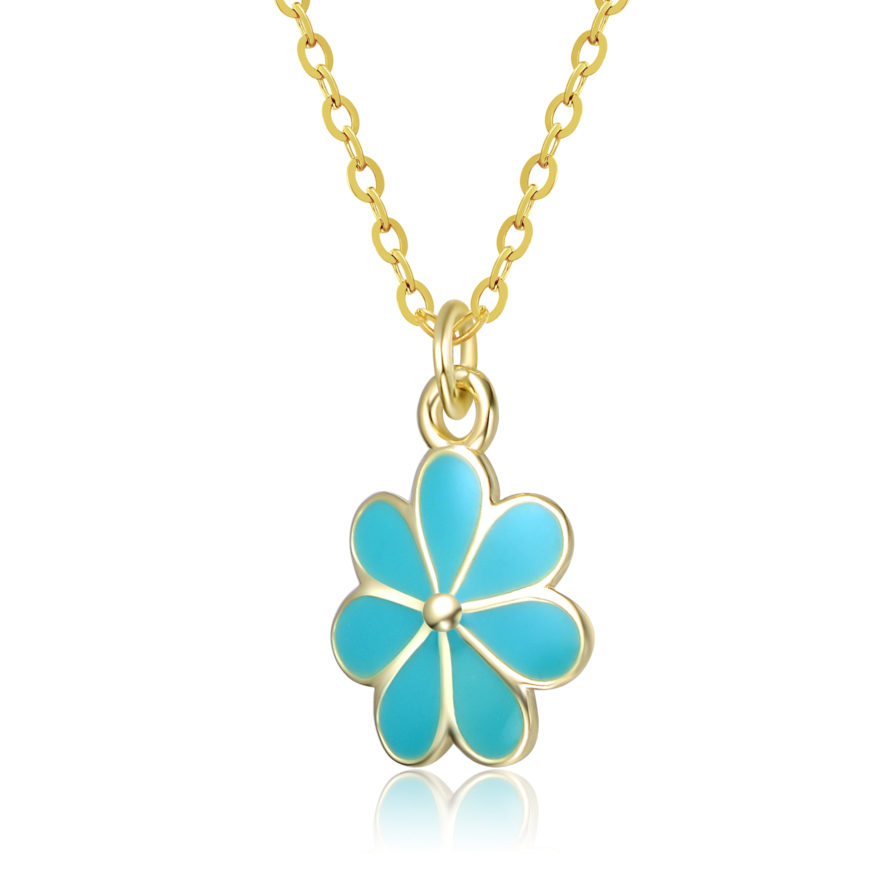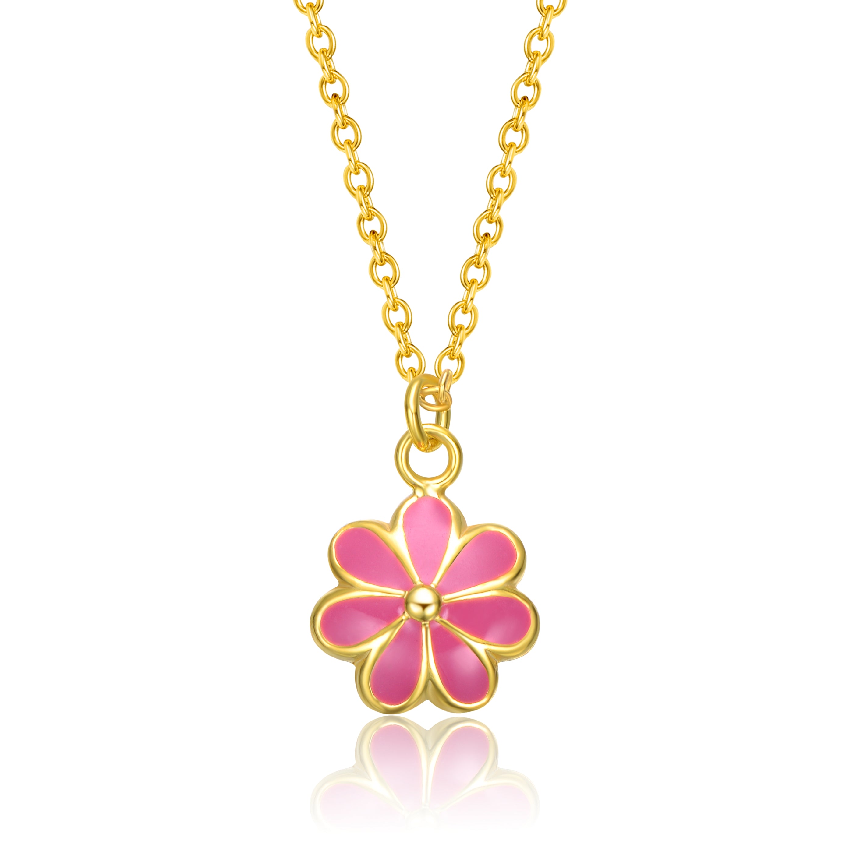 14k Gold Plated Fuchsia-Red Daisy Flower Drop Charm Necklace