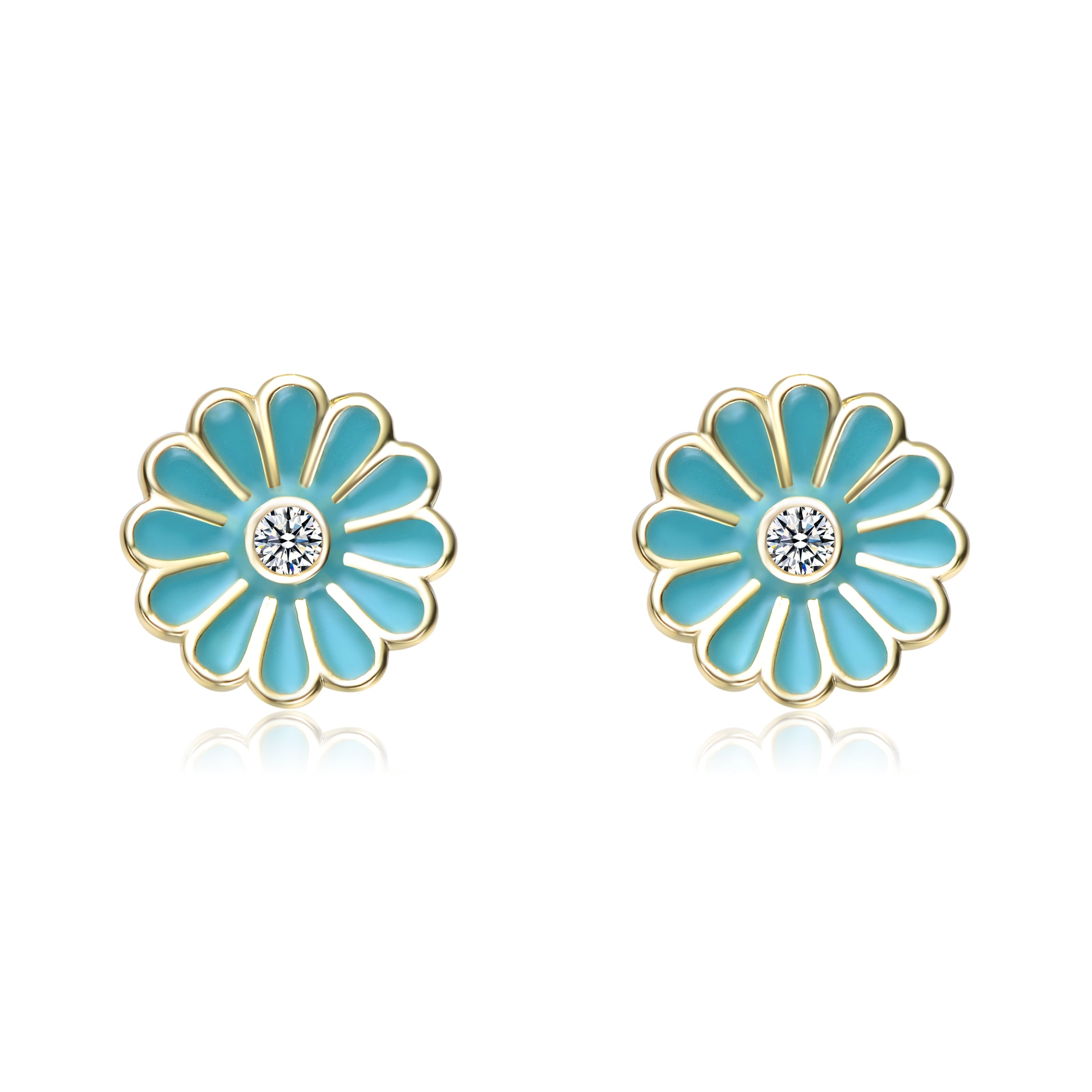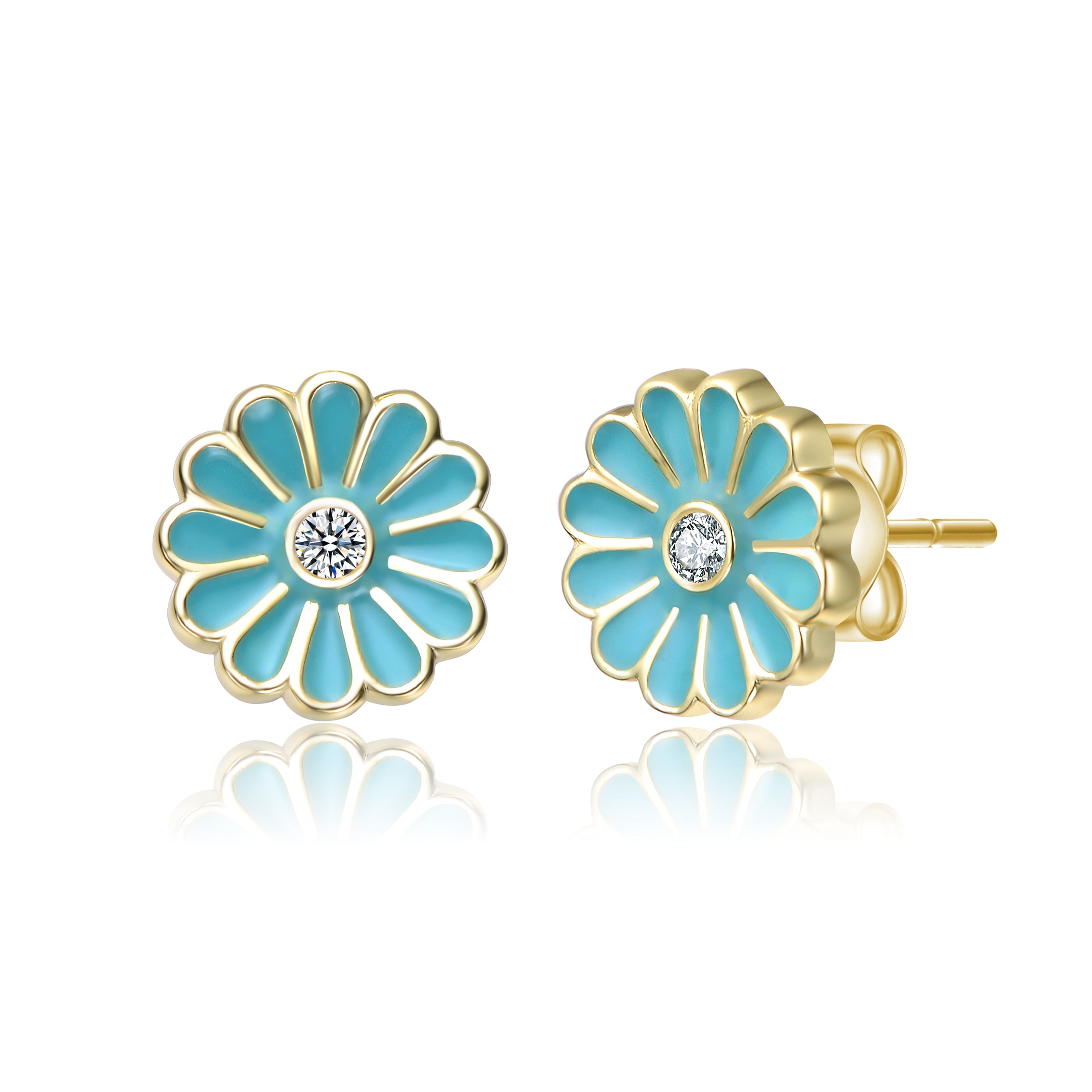 14k Gold Plated Cubic Zircinia & Red Enamel Flower Stud Earrings. Flowers bring joy, happiness, and love, making these romantic yet chic 14k gold plated flower studs the perfect gift to give. Sparkling round brilliant cut cubic zirconia adorn each center, glittering against the rich red enamel petals of the blooming flower. Butterfly backs keep these uplifting kids stud earrings securely in place, making them easy to place on and remove from the ear. Available in Red enamel and Tiffany Blue.