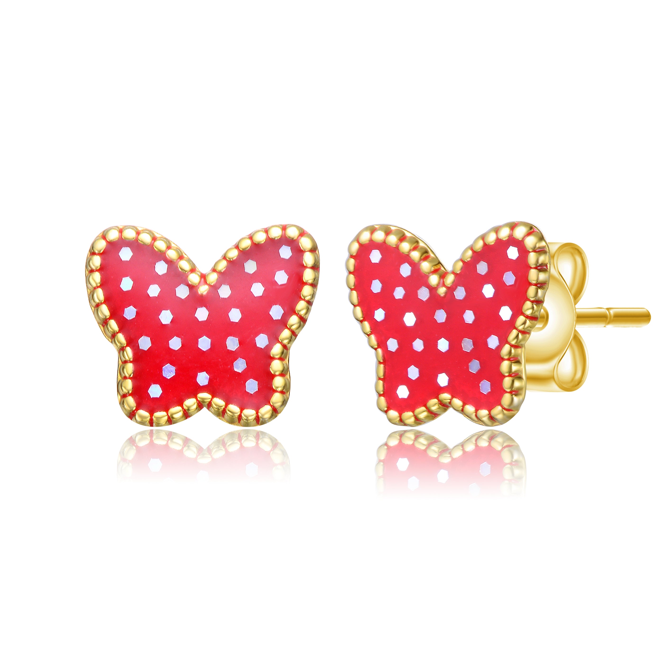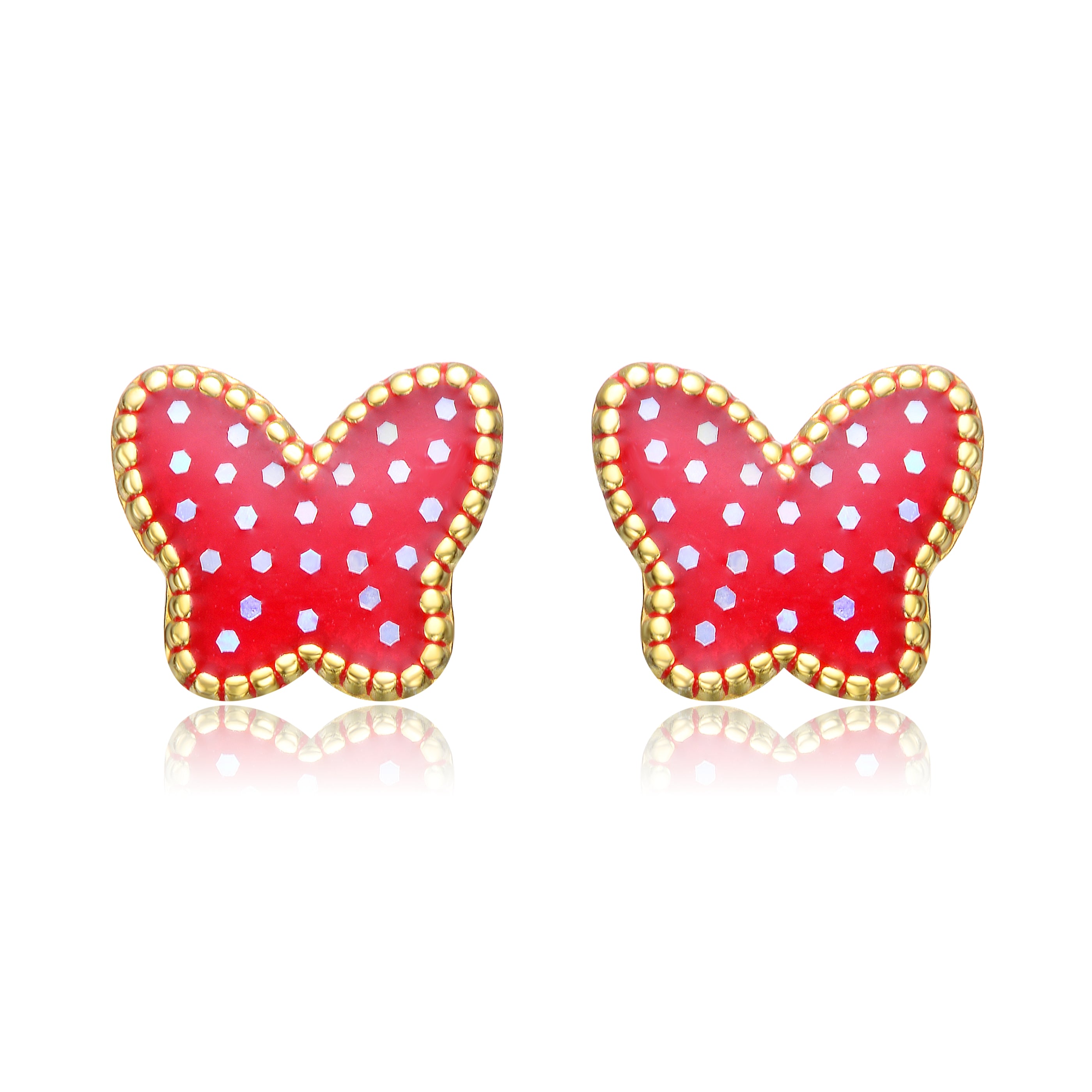 14k Gold Plated Red Enamel Starry Sky Butterfly Stud Earrings