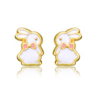 14k Gold Plated White Enamel & Pink Bow Tie Bunny Rabbit Stud Earrings