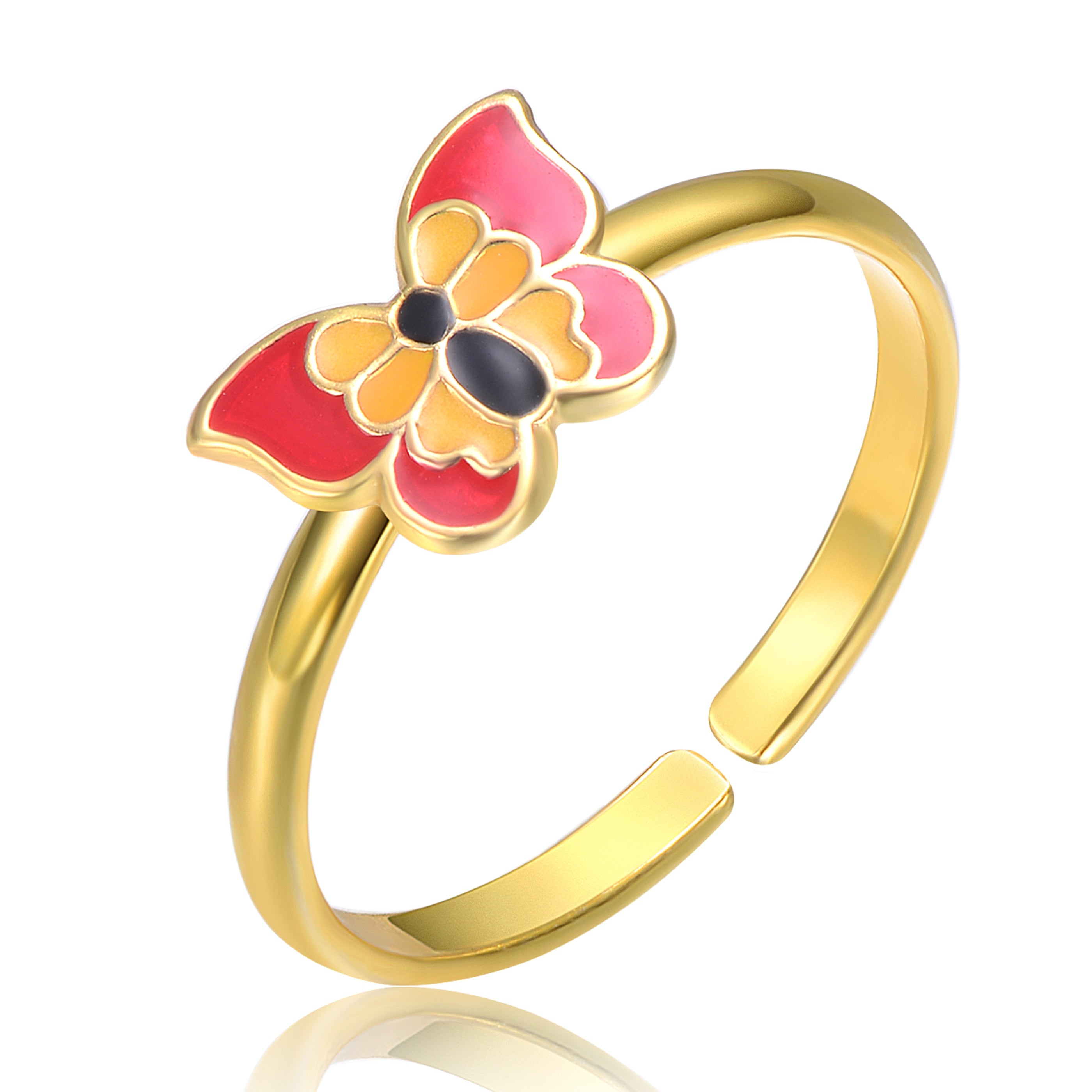 Children's 14k Gold Plated Red, Yellow & Black Enamel Butterfly Adjustable Ring