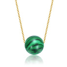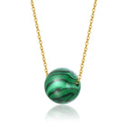 This exquisite piece features a polished malachite sphere with distinctive dark and light green banding, suspended from a delicate gold-plated chain. The natural patterns of the malachite make each pendant unique, while the gold plating adds a touch of luxury. Perfect for adding an elegant statement to any outfit, this pendant necklace is both captivating and stylish.