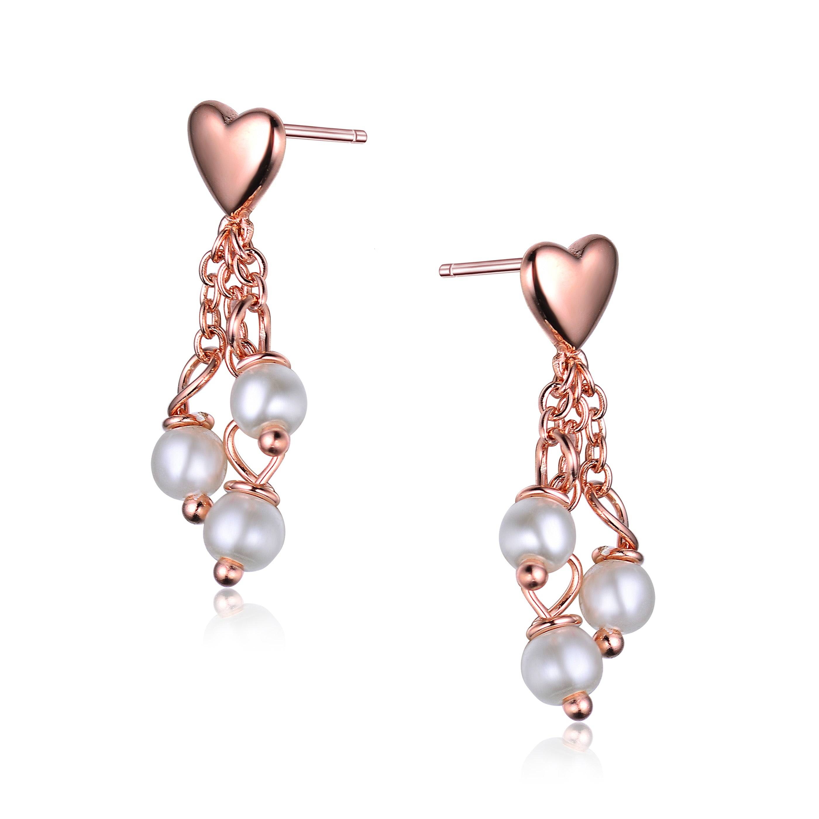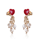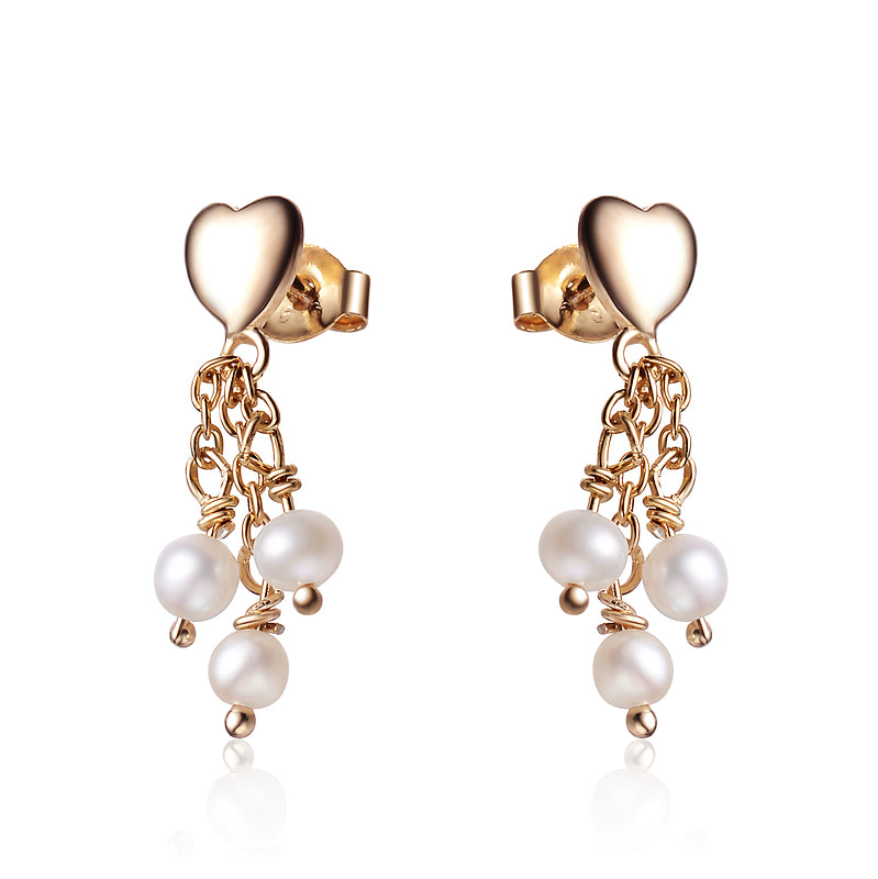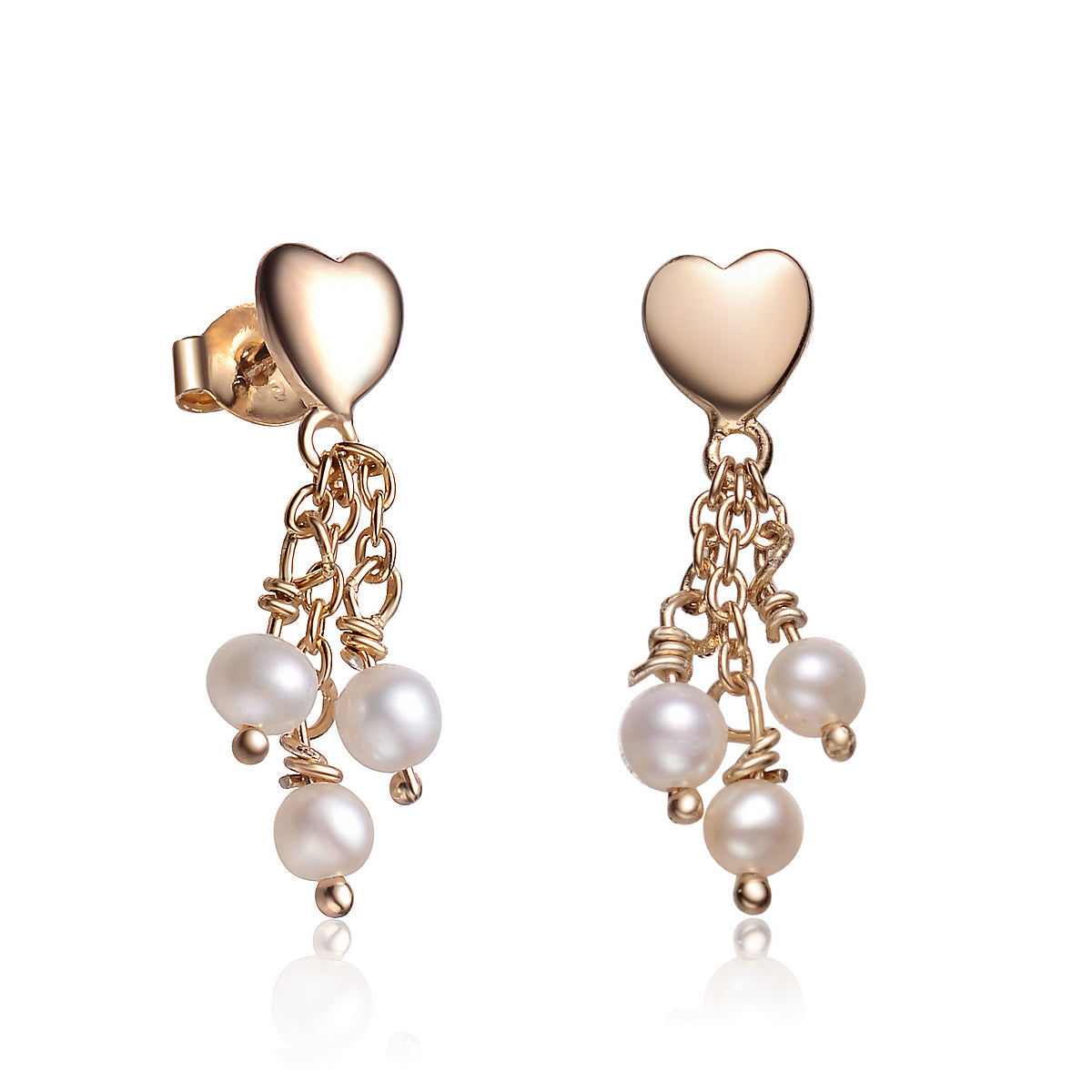 Sterling Silver Gold Plated Heart Shape Pearl Drop Earrings