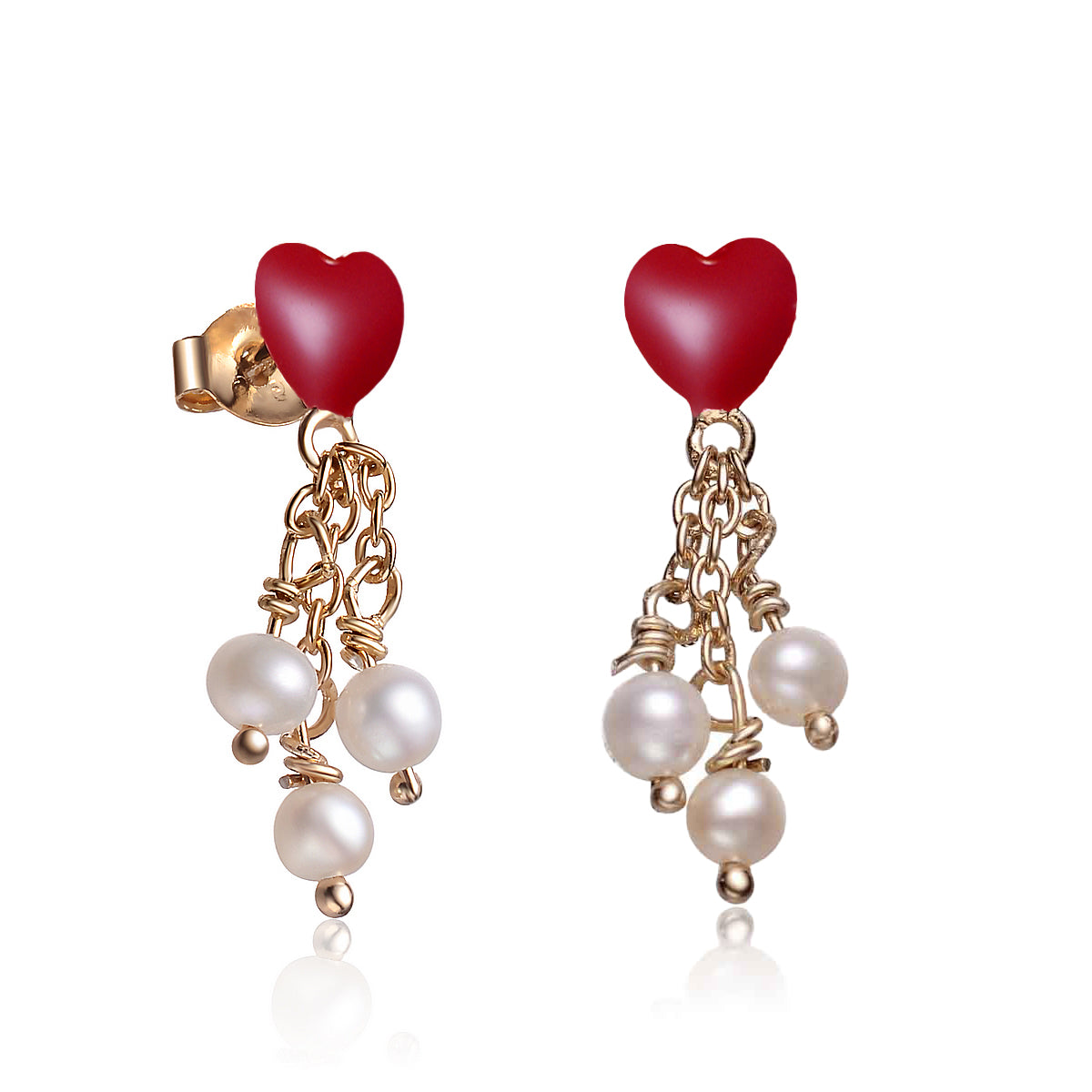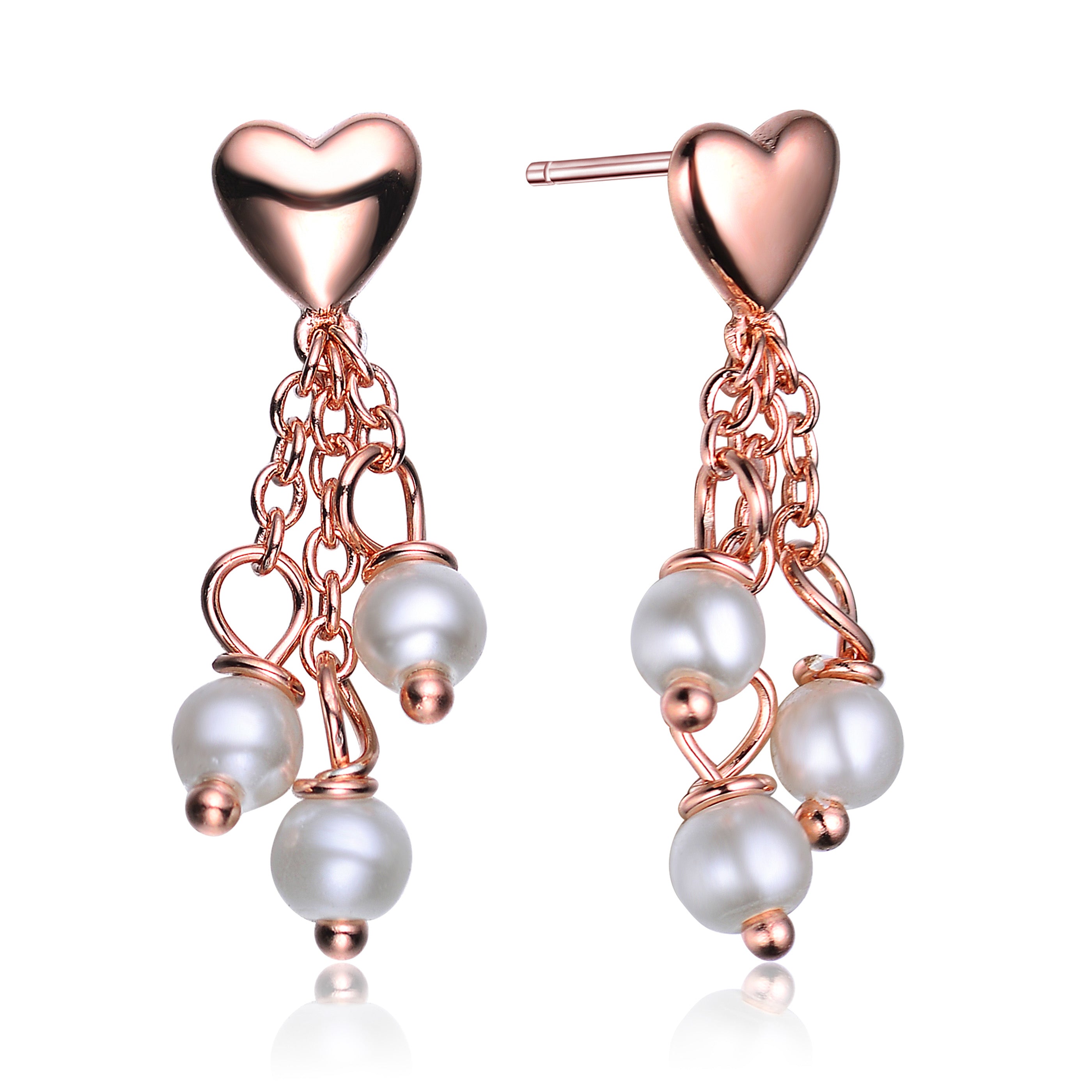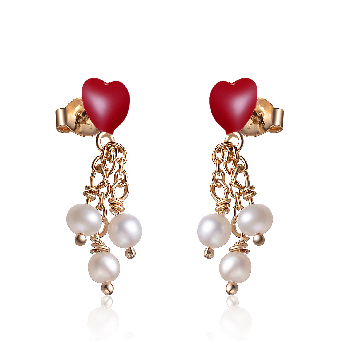 Sterling Silver Gold Plated Heart Shape Pearl Drop Earrings