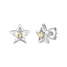 Enhance your kids/teen's elegance with these exquisite stud earrings. Crafted from sterling silver with lustrous white gold plating, each earring features a delicate star design adorned with a brilliant yellow tourmaline gemstone at its center, securely held in place by a prong setting. The butterfly clasp ensures a comfortable and secure fit, making these earrings the perfect addition to your collection. Elevate your style with a touch of celestial charm.