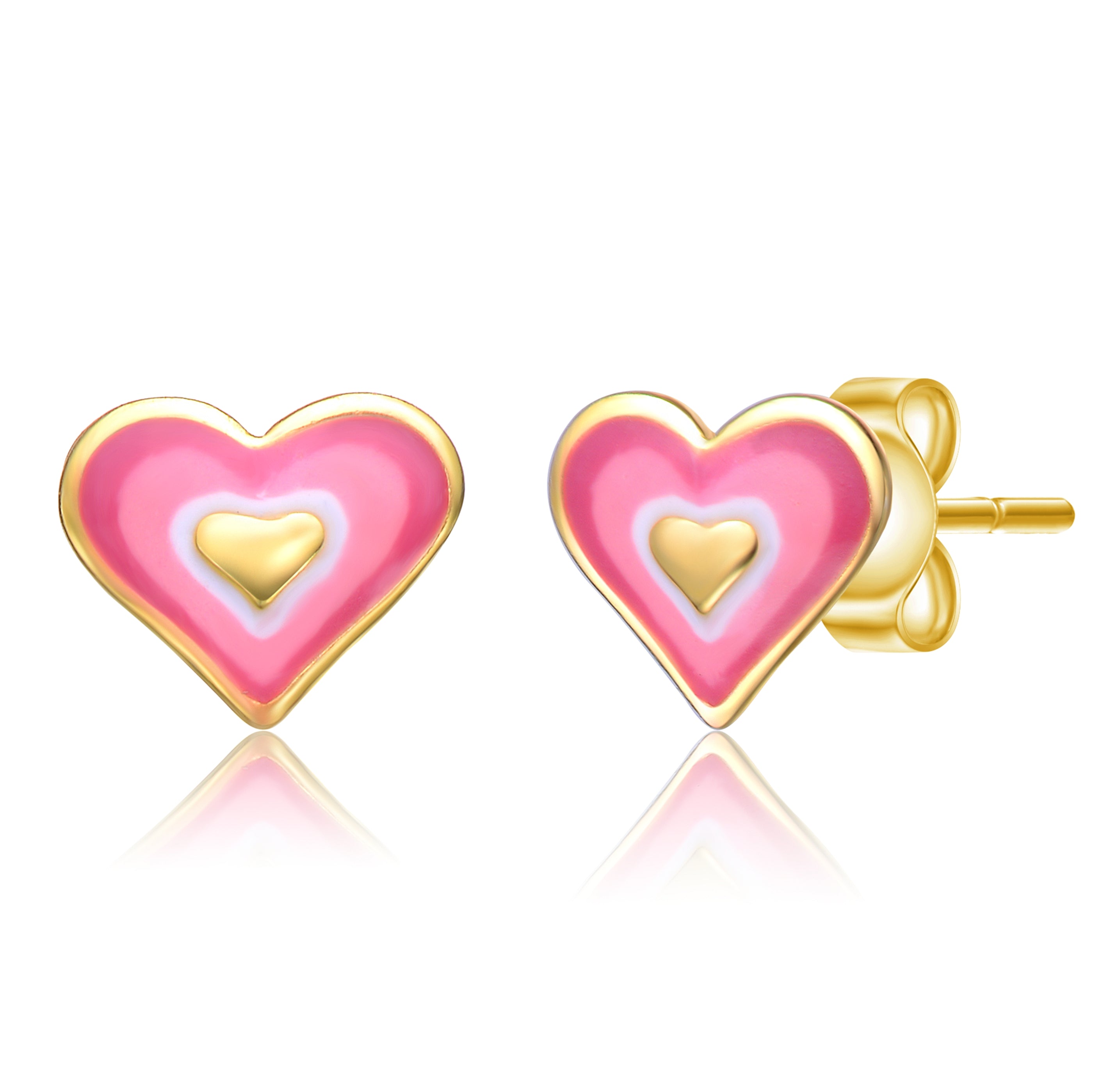 Toddler/Kids 14K Gold Plated Pink & White Enamel Heart Stud Earrings