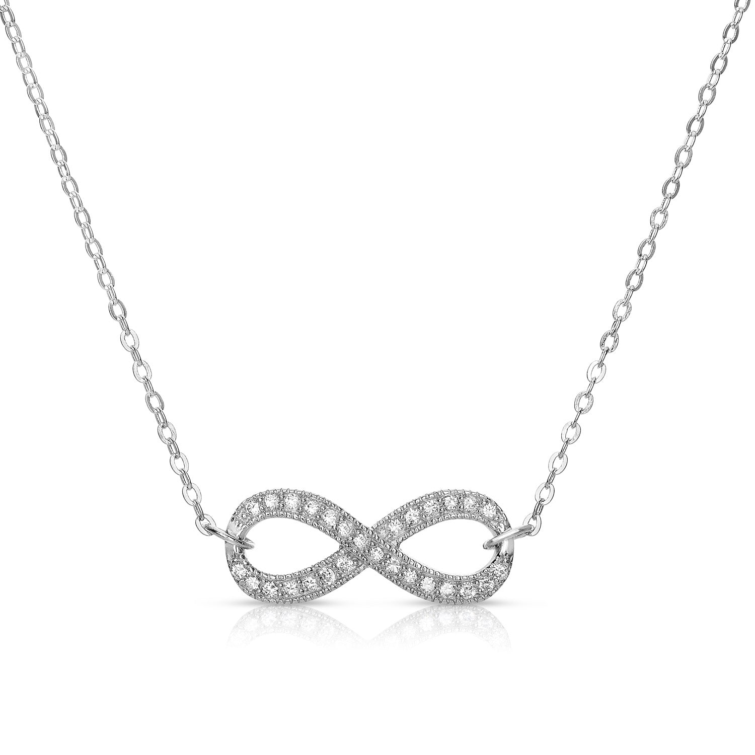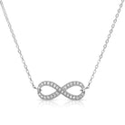 Knowing its forever is an indelible message when spoken with jewelry. A classic Collete Z piece embodying this is this rolo linked chain and the lemniscate infinity symbol it carries with great care. A glimmering cubic pellets fleck the entirety of this sterling silver ornament's symbol.